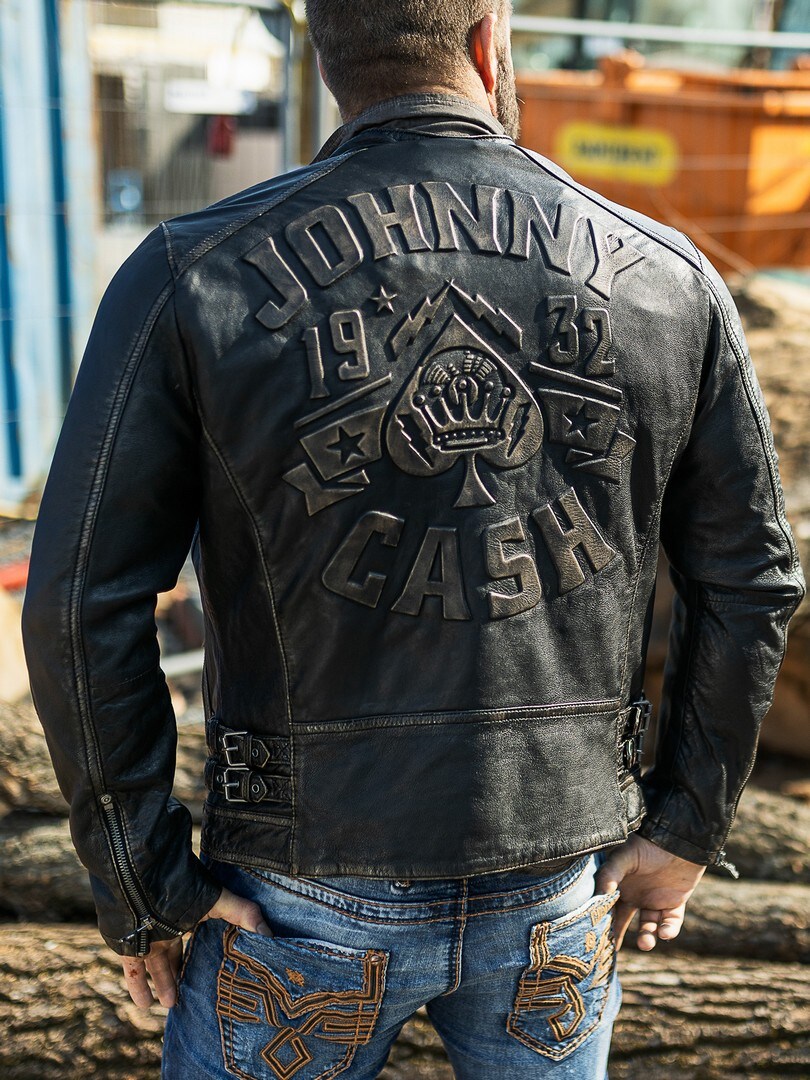 Gypsy-merkkinen uniikki nahkatakki, jossa on legendaarisen Johnny Cashin kuva!
