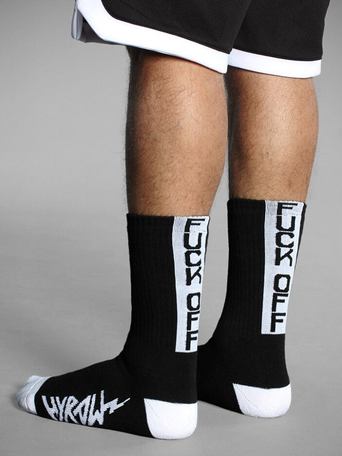 Tämä 2 kpl pakkaus sisältää kaksi paria mustia sukkia, joissa on rohkea teksti ”FUCK OFF” varressa ja punavalkoinen HYRAW-logo jalkapohjassa. Täydelliset niille, jotka haluavat pistää jalalla koreasti – kirjaimellisesti.