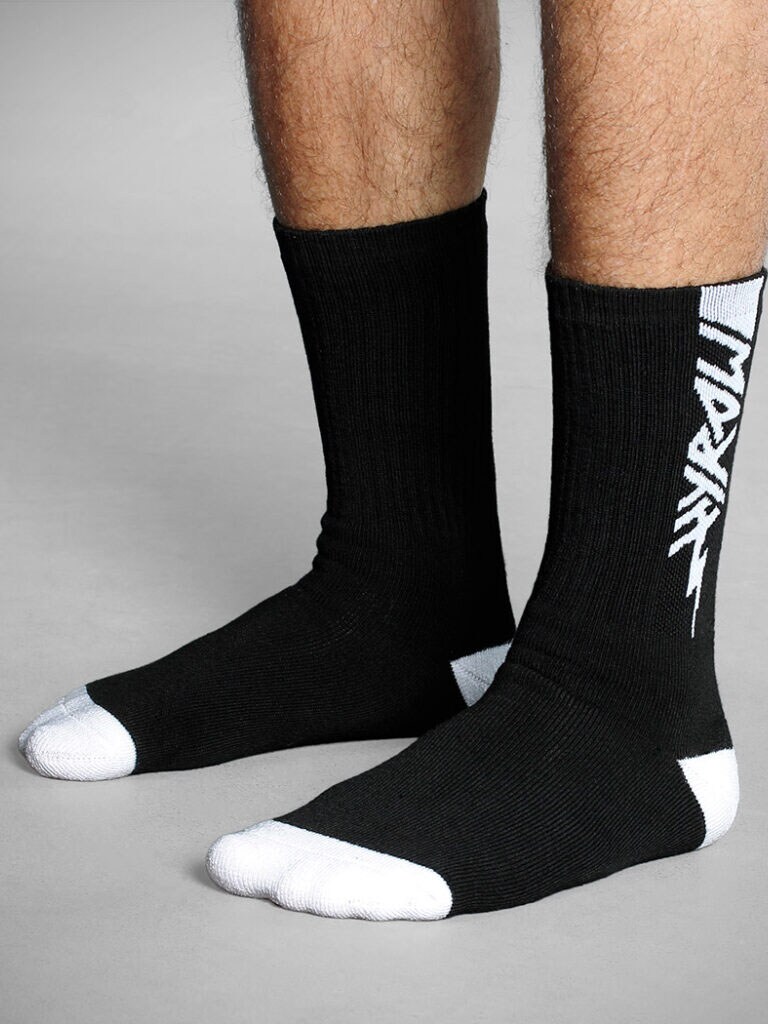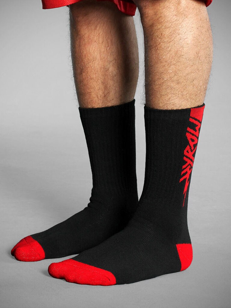 Tämä 2 kpl pakkaus sisältää kaksi paria mustia sukkia, joissa on punavalkoinen HYRAW-logo varressa. Toimii yhtä hyvin saappaissa kuin lenkkareissa.