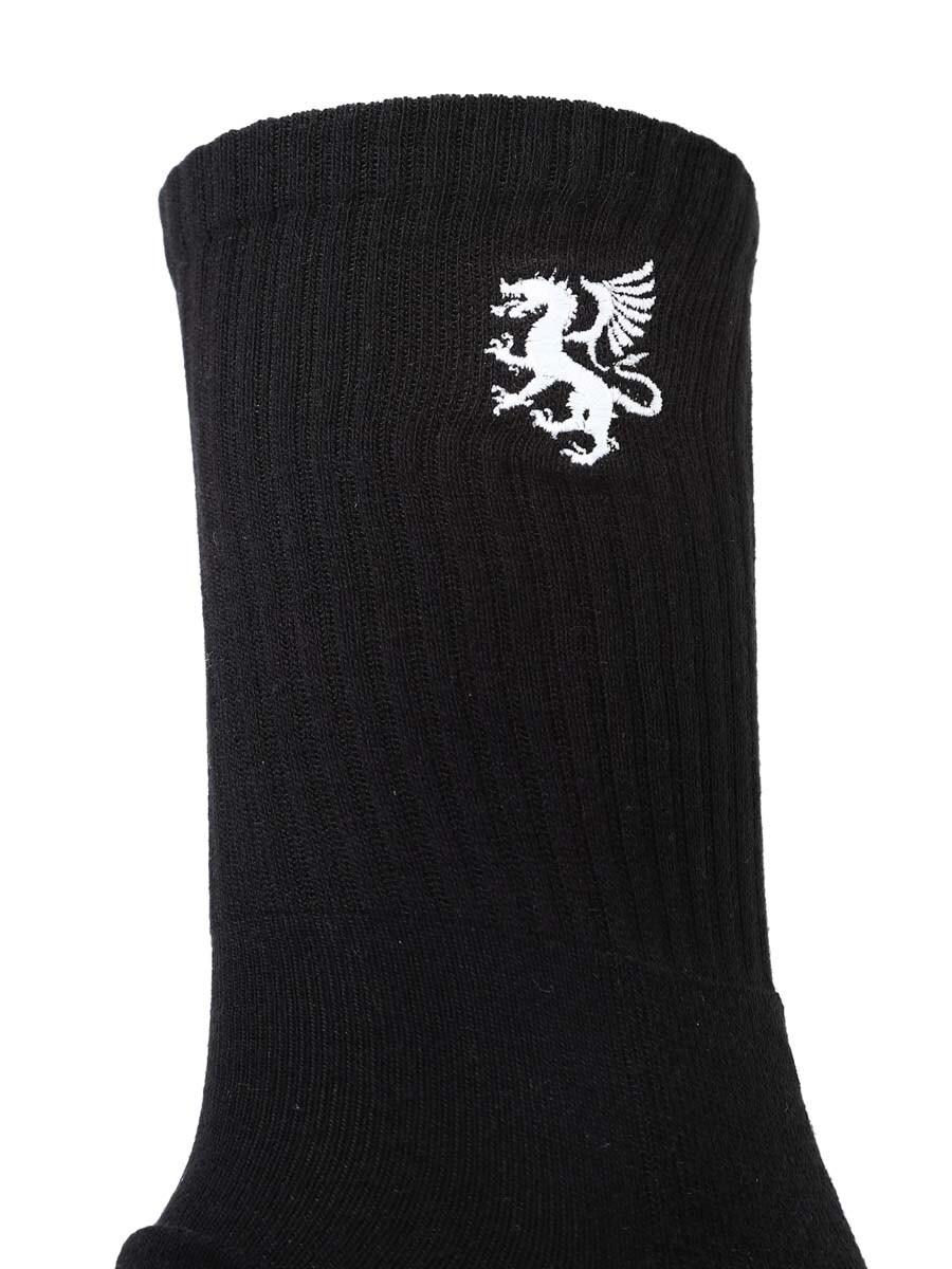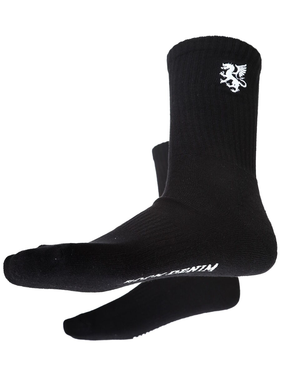 Svarta strumpor för med skräddat tryck i vitt. Passar perfekt för användning till vardags eller till träning. Ribbstickat skaft som ger bra passform och en sportig look. "Rockdenim” i små vita bokstäver under foten.