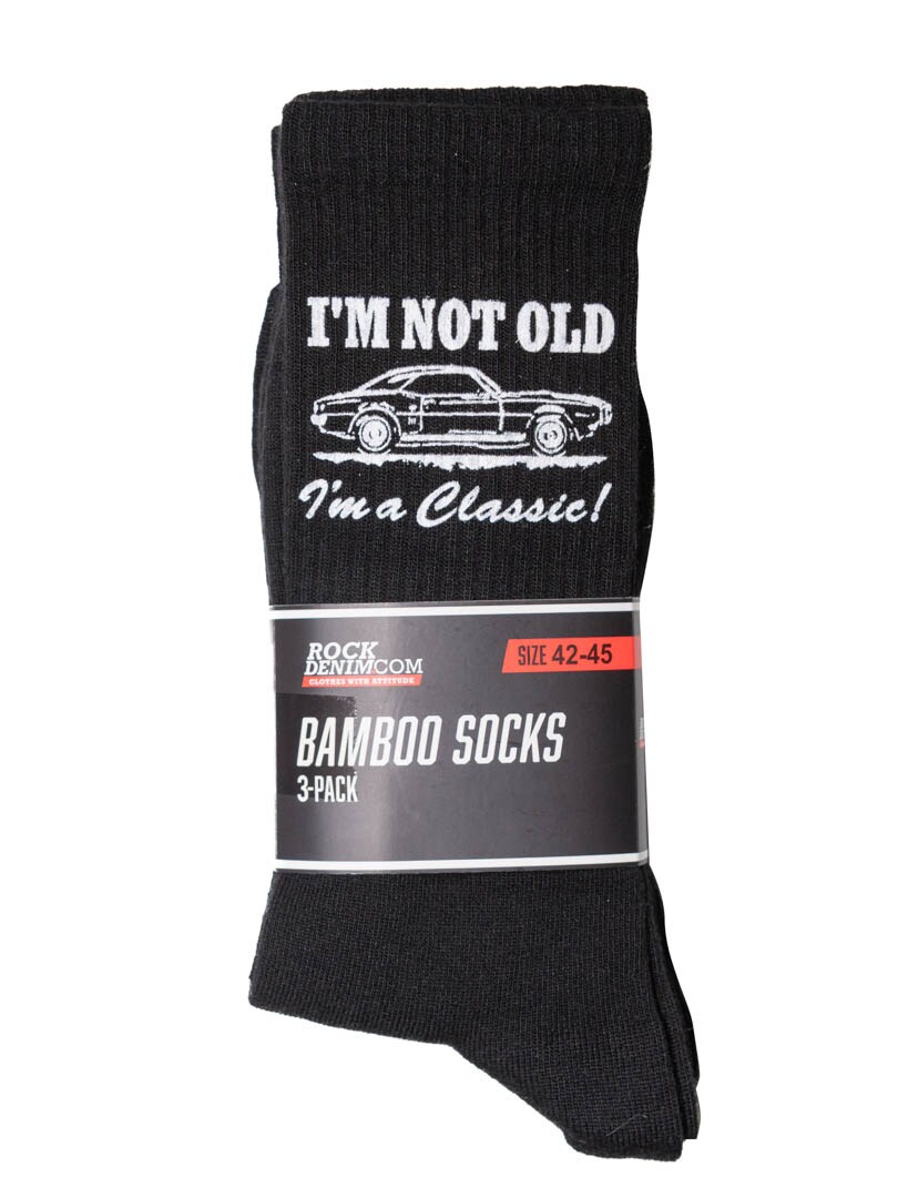 3 kpl pakkaus huippulaatuisia bambusukkia tekstillä "I'm not old! I'm a classic!"