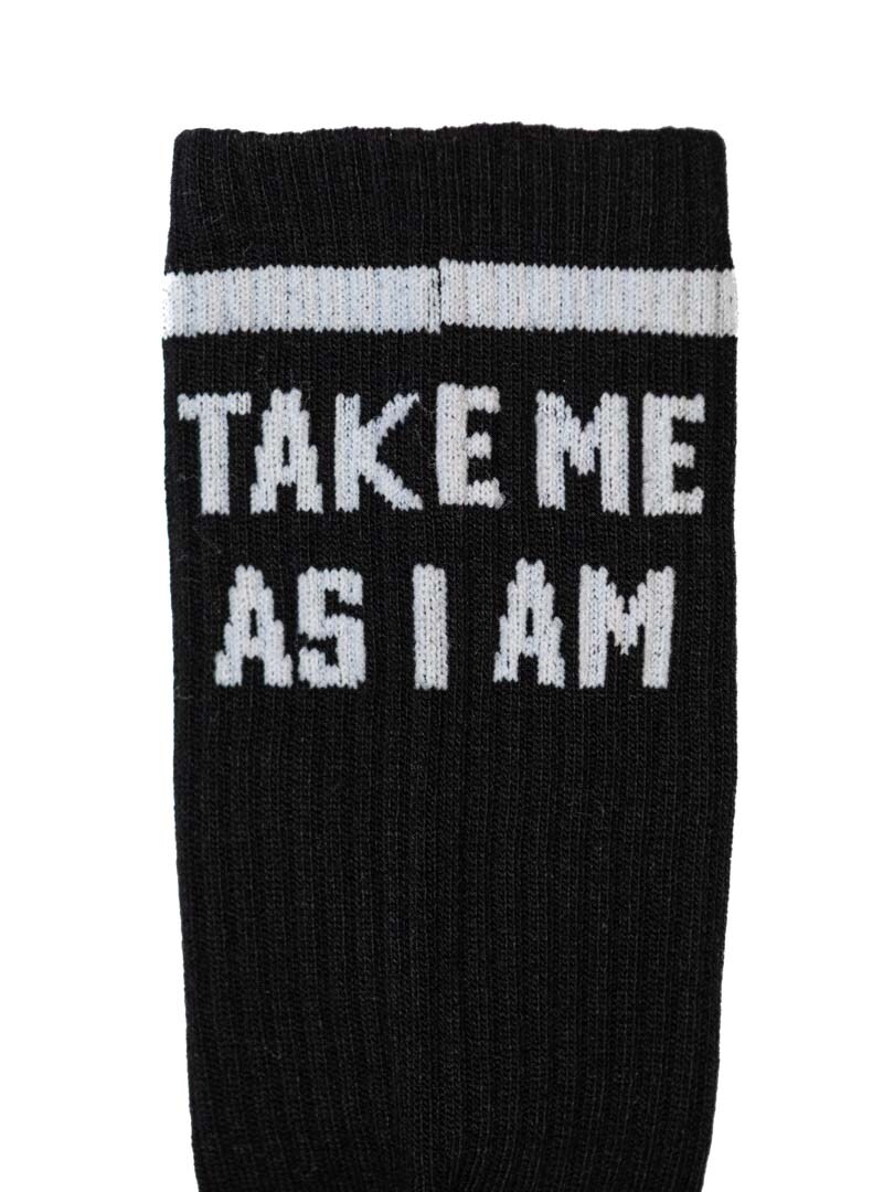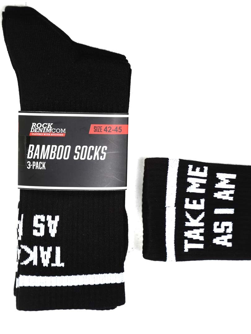 3 kpl pakkaus huippulaatuisia bambusukkia tekstillä "Take me as I am or watch me leave"