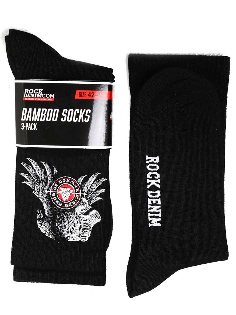 Sukat on valmistettu ihanasta bambulaadusta, jolla on erinomaisia ominaisuuksia, kuten lämmönsäätely, ylimääräinen hengittävyys ja hien siirtäminen. Bambu tuntuu pehmeämmältä kuin esimerkiksi puuvilla. "Rockdenim" pienillä valkoisilla kirjaimilla jalan alla. Bambukasvi tarjoaa luonnollisen suojan bakteereja vastaan, joten se kasvaa ilman myrkyllisiä torjunta-aineita. Se on kestävää, ja olemme ylpeitä siitä, että se löytyy valikoimastamme!