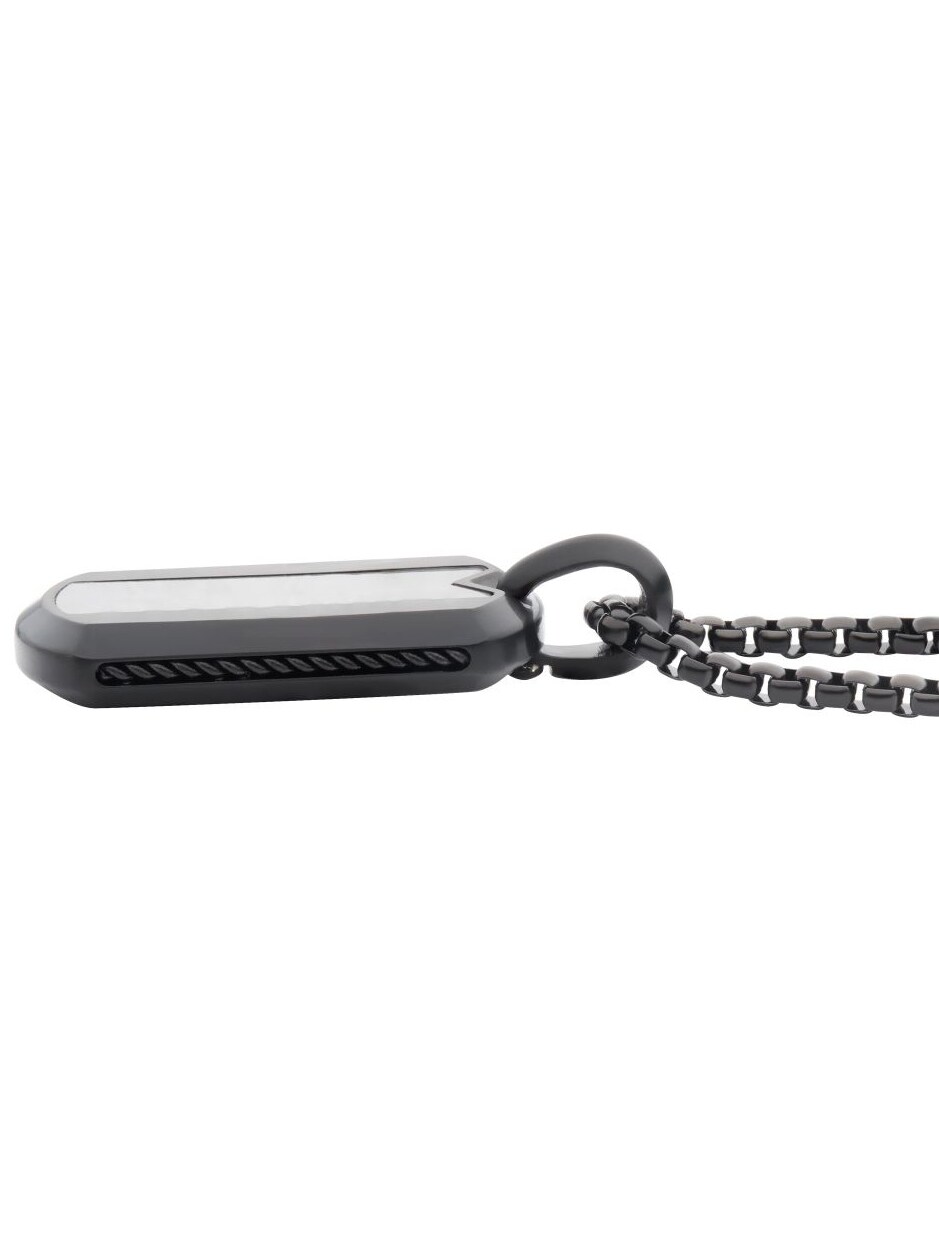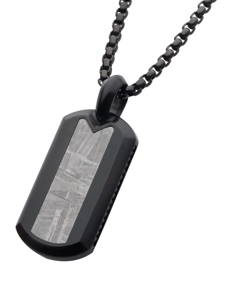 Kaulakoru, jossa musta IP-pinnoite ja meteoriittikoristeinen riipus. Valmistettu ruostumattomasta teräksestä.