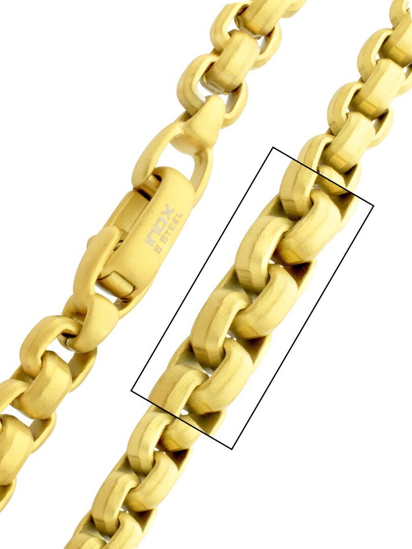 Inoxin mattapintainen ja 18 karaatin pinnoitettu laatikkoketju. Tämä ketju on sinulle, joka haluat maskuliinista voimaa ja tyyliä, joka on tehty kestämään arkea ja tekemään vaikutuksen. Valmistettu ruostumattomasta teräksestä.