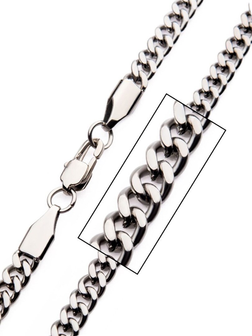Ruostumattomasta teräksestä valmistettu Curb-ketju timanttikoristelulla, joka antaa sille ylimääräistä kiiltoa. Kestävä ja lujatekoinen, täydellinen päivittäiseen käyttöön tai erityistilaisuuksiin.