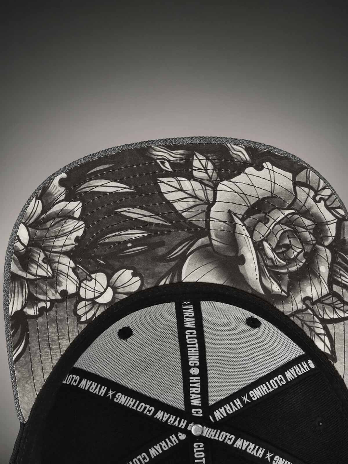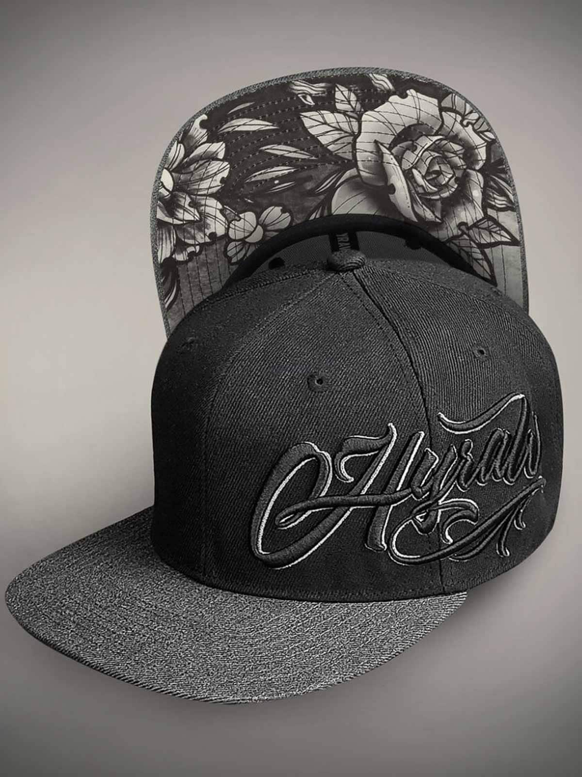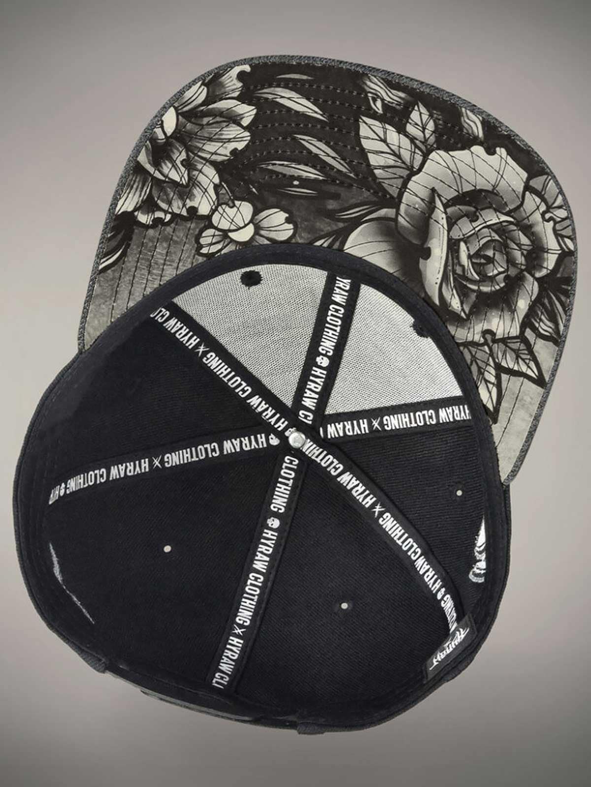 Musta lippis harmaalla suoralla lipalla. Suunniteltu brodeeratulla logolla sekä säädettävällä snapback-kiinnityksellä täydellistä istuvuutta varten. Lipan alapuoli on koristeltu tyylikkäällä ruusukuviolla, joka antaa lippikselle ainutlaatuisen ja näyttävän yksityiskohdan.