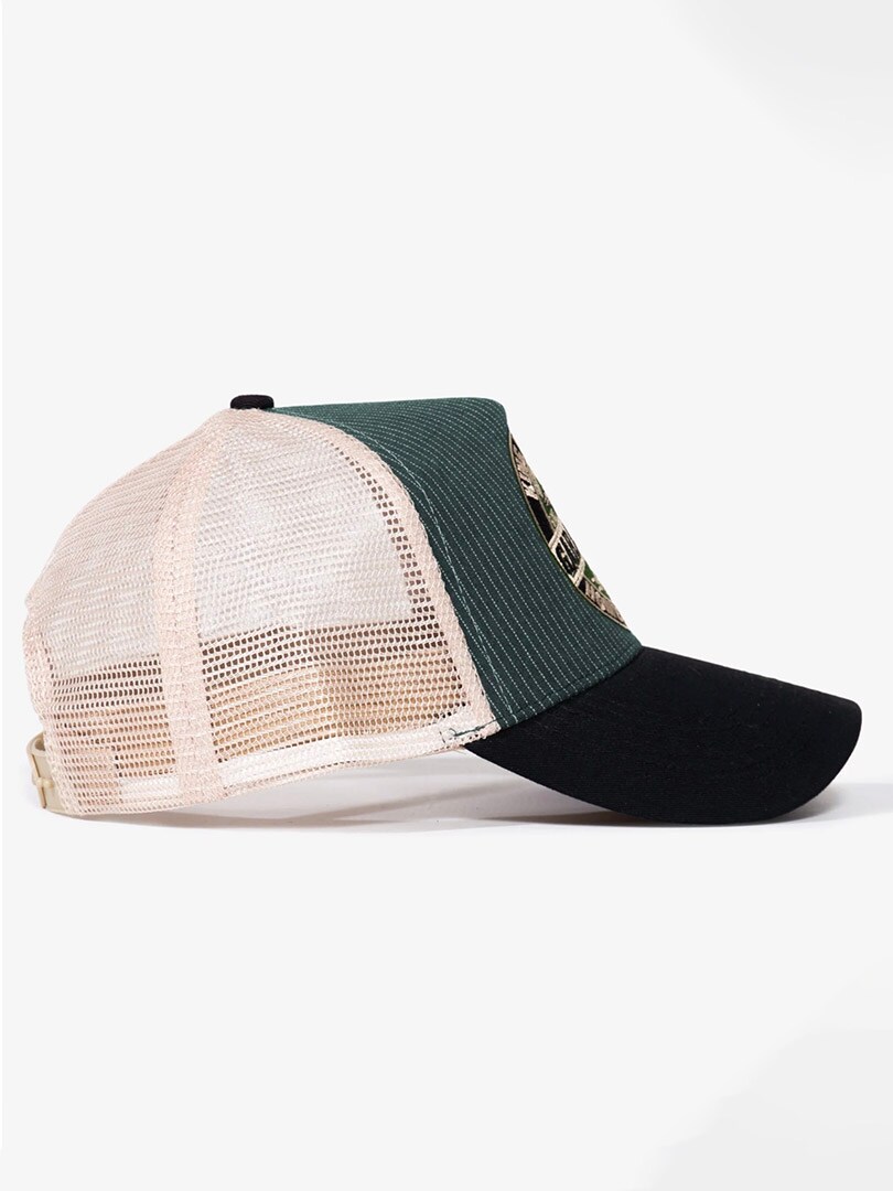 Trucker-lippalakki, jossa on näyttävä etupuolen brodeeraus trendikkäässä vintage-tyylissä. Takana oleva mesh-osa takaa hyvän ilmanvaihdon ja näin ollen erinomaisen käyttömukavuuden. Lakissa on kaareva lippa ja snapback-säätö.