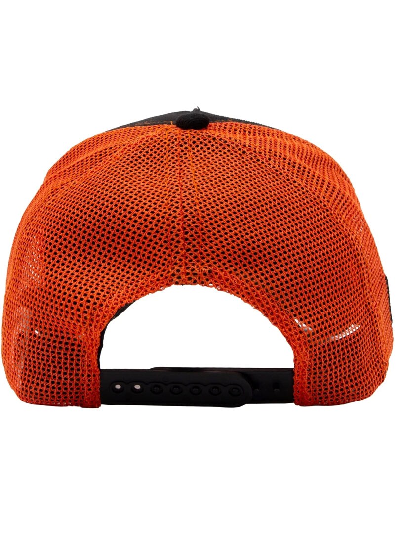Rohkea musta-oranssi lippalakki voimakkaalla kontrastilla, joka herättää huomiota, sekä ilmeikkäällä designilla, joka tekee vaikutuksen heti. Takana oleva mesh-paneeli tarjoaa miellyttävän ilmanvaihdon, ja korostetut kontrastiompeleet sekä säädettävä snapback takaavat mukavan istuvuuden koko päiväksi.