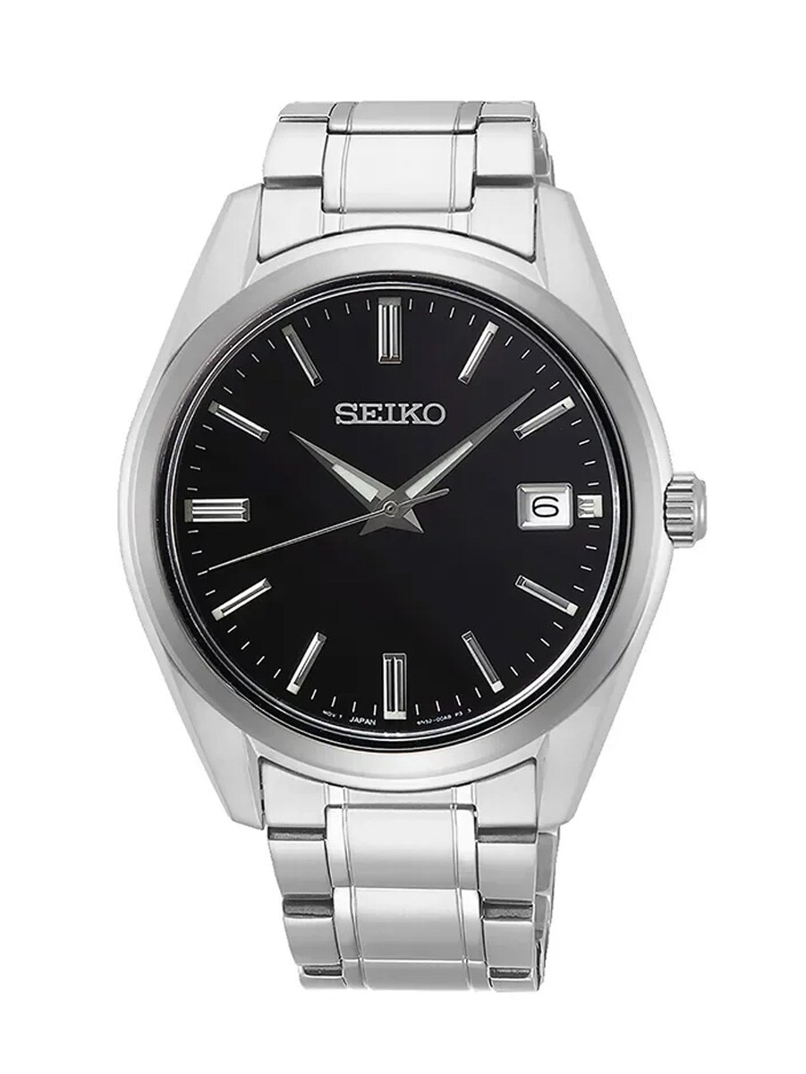Seiko SUR311P1 on tyylikäs miesten rannekello, joka yhdistää klassisen muotoilun ja modernin kestävyyden ruostumattomasta teräksestä. Tyylikäs musta kellotaulu on koristeltu hopeanvärisillä indekseillä ja suojattu korkealaatuisella, naarmuuntumattomalla safiirilasilla. Kello saa virtansa tarkasta kvartsikoneistosta ja siinä on käytännöllinen päivämääränäyttö kello kolmessa. 100 metrin vesitiiviyden ansiosta tämä malli sopii sekä jokapäiväiseen käyttöön että uimiseen. Se on täydellinen valinta miehelle, joka etsii luotettavaa ja ajatonta asustetta.