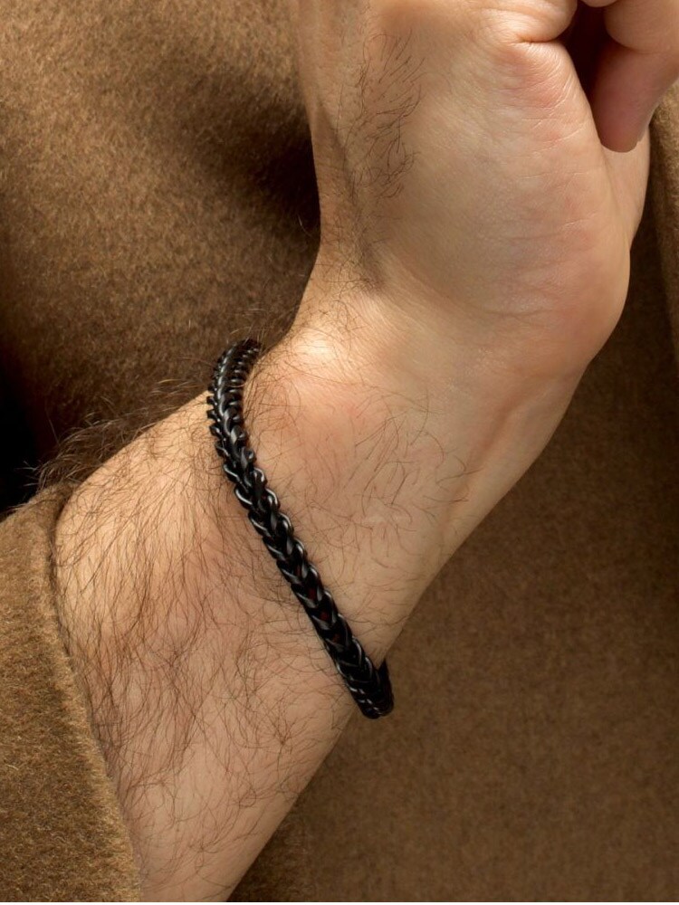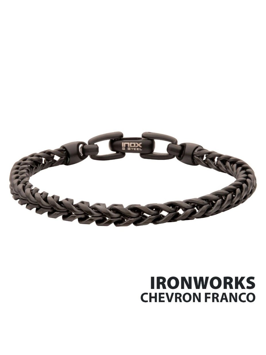 Inox-rannekoru, jossa on hiekkapuhallettu viimeistely ja musta IP-pinnoite. Valmistettu ruostumattomasta teräksestä, sulkeutuu hummerilukolla. Täydellinen rannekoru sinulle, joka haluat korostaa tyyliäsi!