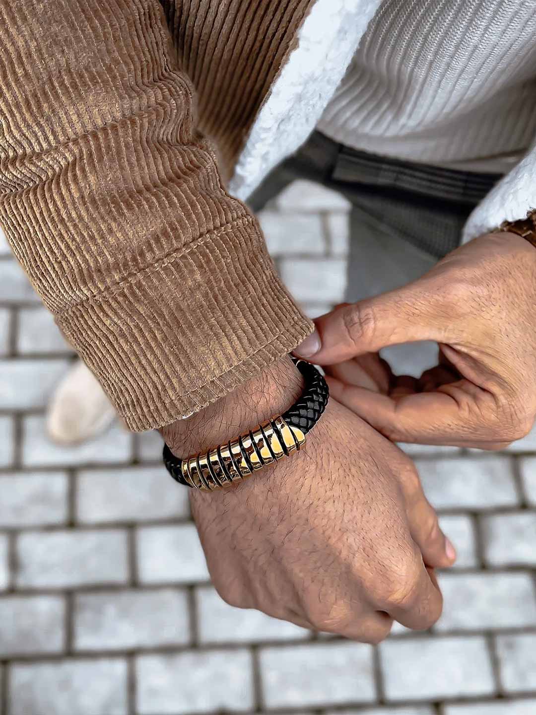 Punottu ranneke aidosta nahasta, jossa on tyylikkäät yksityiskohdat ruostumattomasta teräksestä. Ranneke toimitetaan lisälenkin kanssa pituuden säätöä varten – täydellinen valinta, jos haluat hieman lisää tilaa tai et ole varma koosta. Tyylikäs asuste, joka viimeistelee jokaisen asukokonaisuuden.