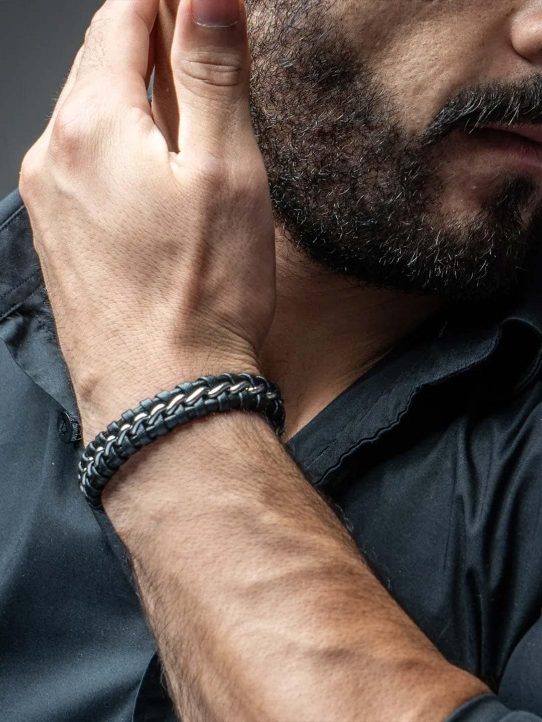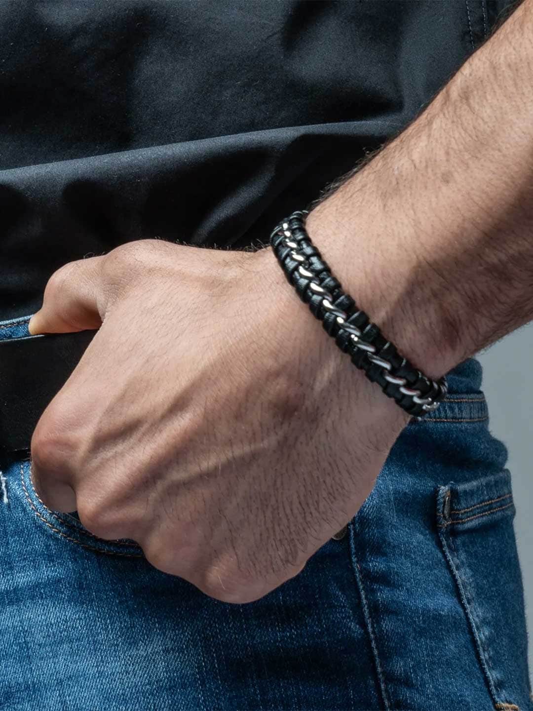 Tyylikäs ranneke, jossa on punottu yhdistelmä aitoa nahkaa ja ruostumatonta terästä. Kiillotettu magneettisolki tekee rannekkeen pukemisesta ja riisumisesta helppoa, samalla kun se pysyy turvallisesti paikallaan koko päivän. Mukana tuleva lisälenkki mahdollistaa pituuden säätämisen – täydellinen, jos haluat hieman lisää tilaa tai et ole varma koosta. Ajaton asuste, joka sopii kaikkiin asukokonaisuuksiin.