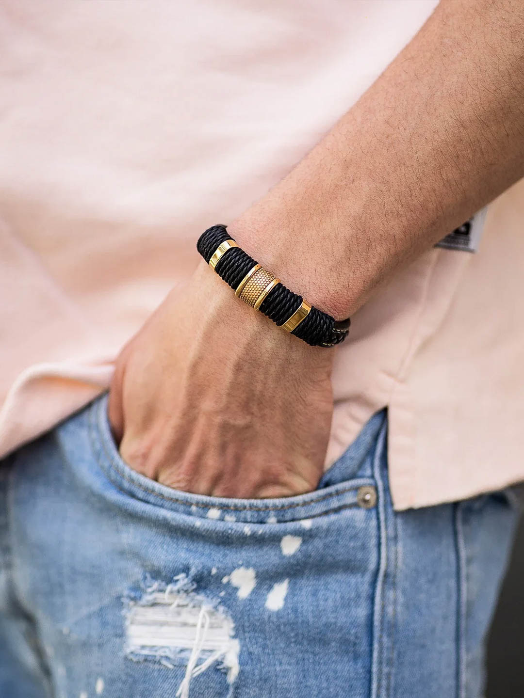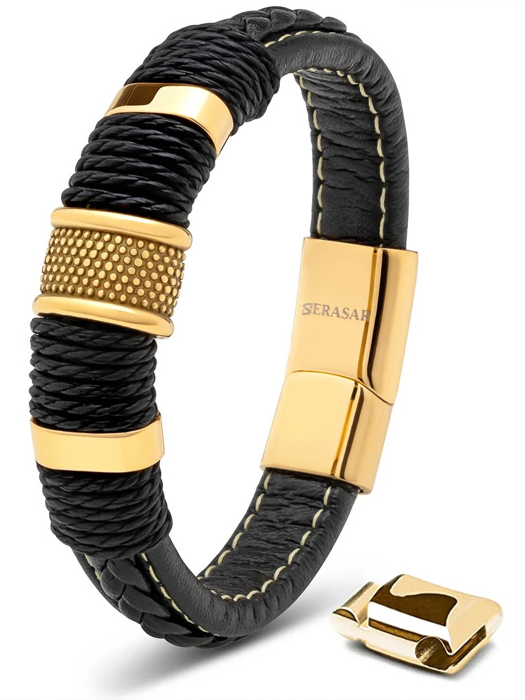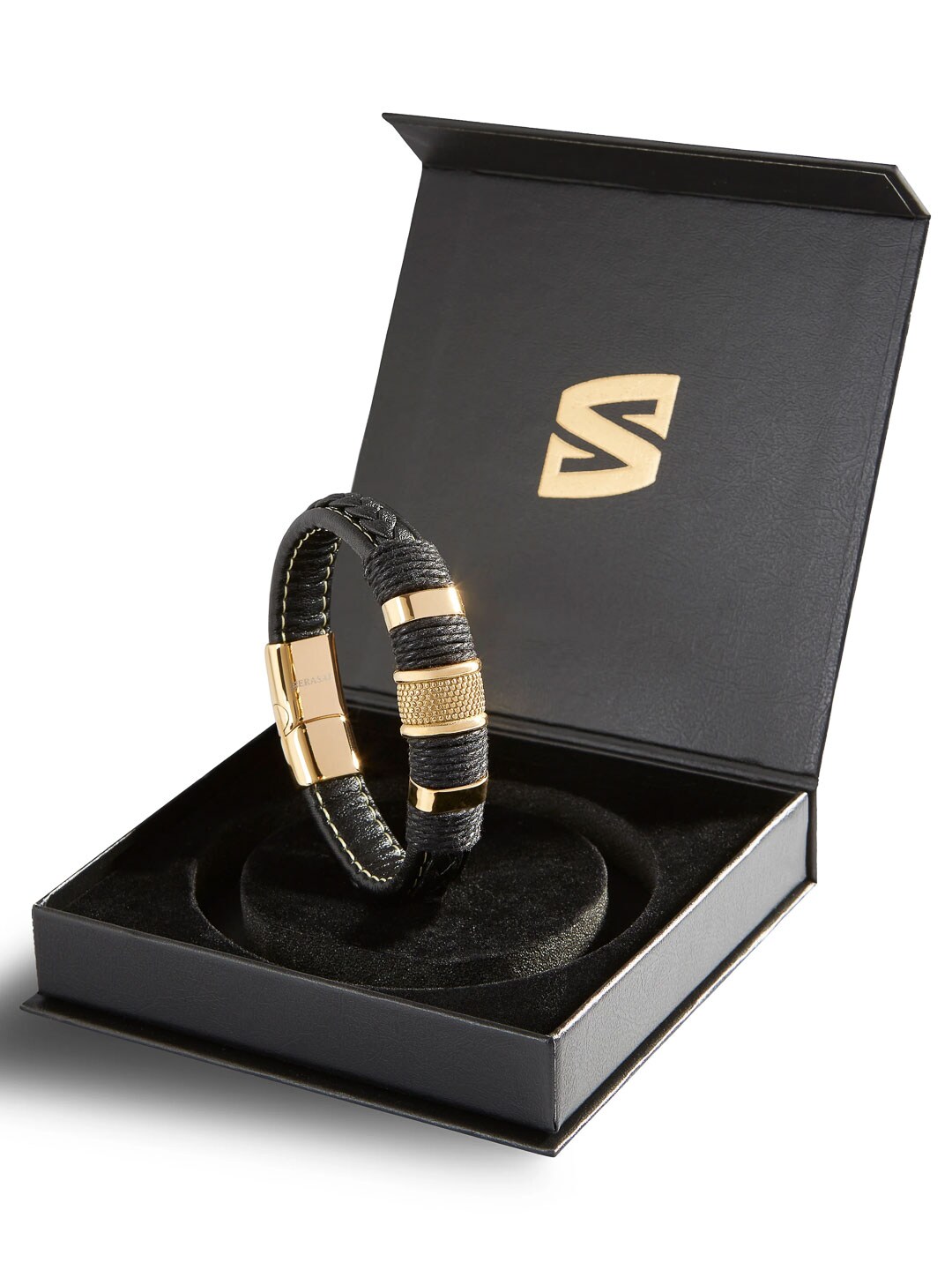 Voimakas ja moderni ranneke, jossa yhdistyvät punottu nahka ja ruostumattoman teräksen yksityiskohdat. Magneettisolki on helppo käsitellä yhdellä kädellä, ja mukana tulee lisäpala pituuden säätöä varten, jotta saat täydellisen istuvuuden. Tyylikäs asuste, joka kohottaa koko asukokonaisuuden.