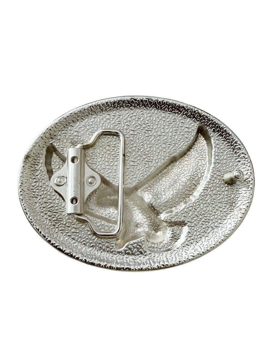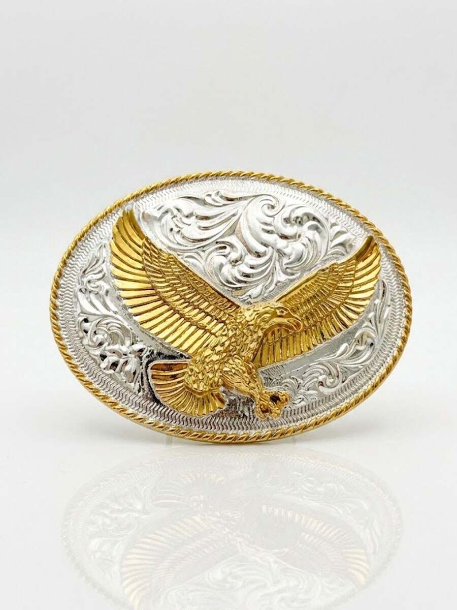 Tyylikäs vyönsolki, jossa on kotka-aihe ja kaiverrettu tausta. Soikea muoto ja koristeellinen reunus tuovat esiin selkeän western-tunnelman. Solki sopii vöihin, jotka ovat enintään 4 cm leveitä, joten sitä on helppo yhdistää useimpiin vaihdettavilla soljilla varustettuihin perusvöihin.