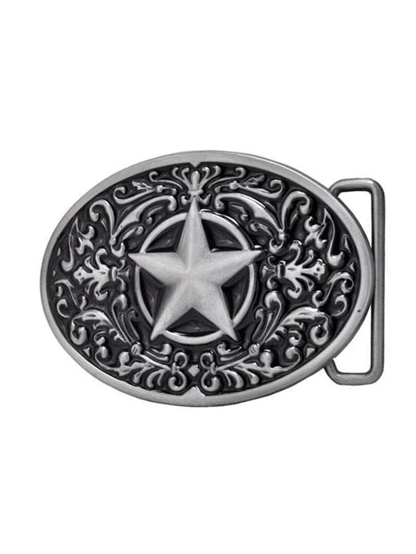 Soikea vyönsolki klassisessa western-tyylissä. Muotoilu on saanut inspiraationsa Texasista ja sitä koristavat tähdet luovat klassisen ja voimakkaan ilmeen. Solki sopii enintään 4 cm leveisiin vöihin, joten se on helppo yhdistää useimpiin vaihdettaviin vöihin.