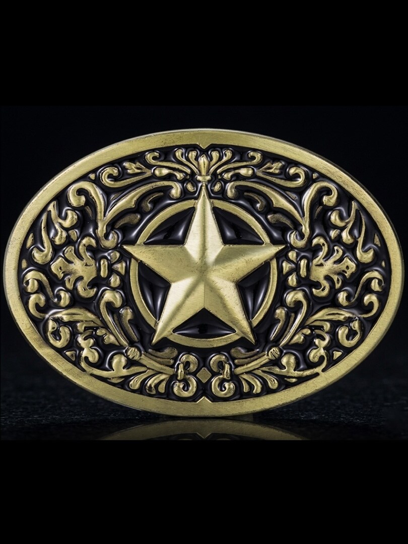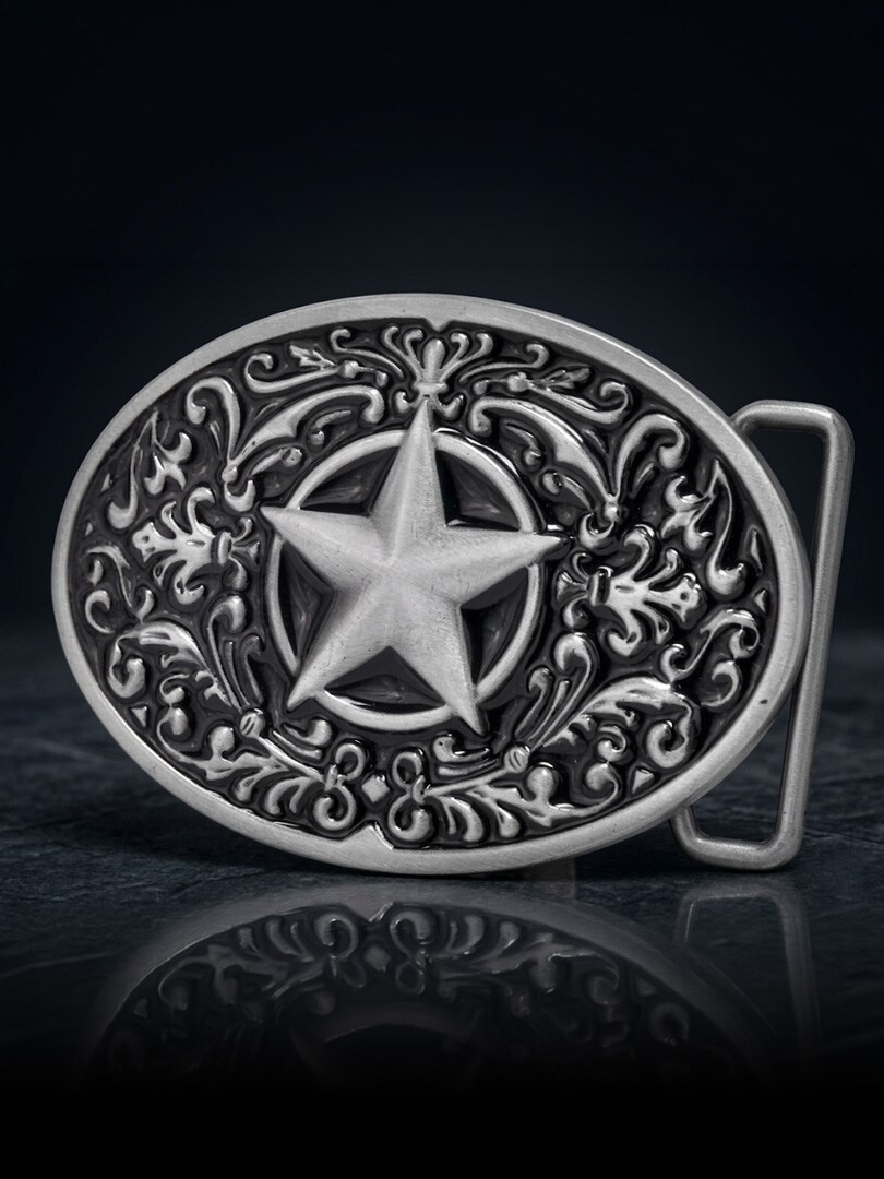 Soikea vyönsolki klassisessa western-tyylissä. Muotoilu on saanut inspiraationsa Texasista ja sitä koristavat tähdet luovat klassisen ja voimakkaan ilmeen. Solki sopii enintään 4 cm leveisiin vöihin, joten se on helppo yhdistää useimpiin vaihdettaviin vöihin.