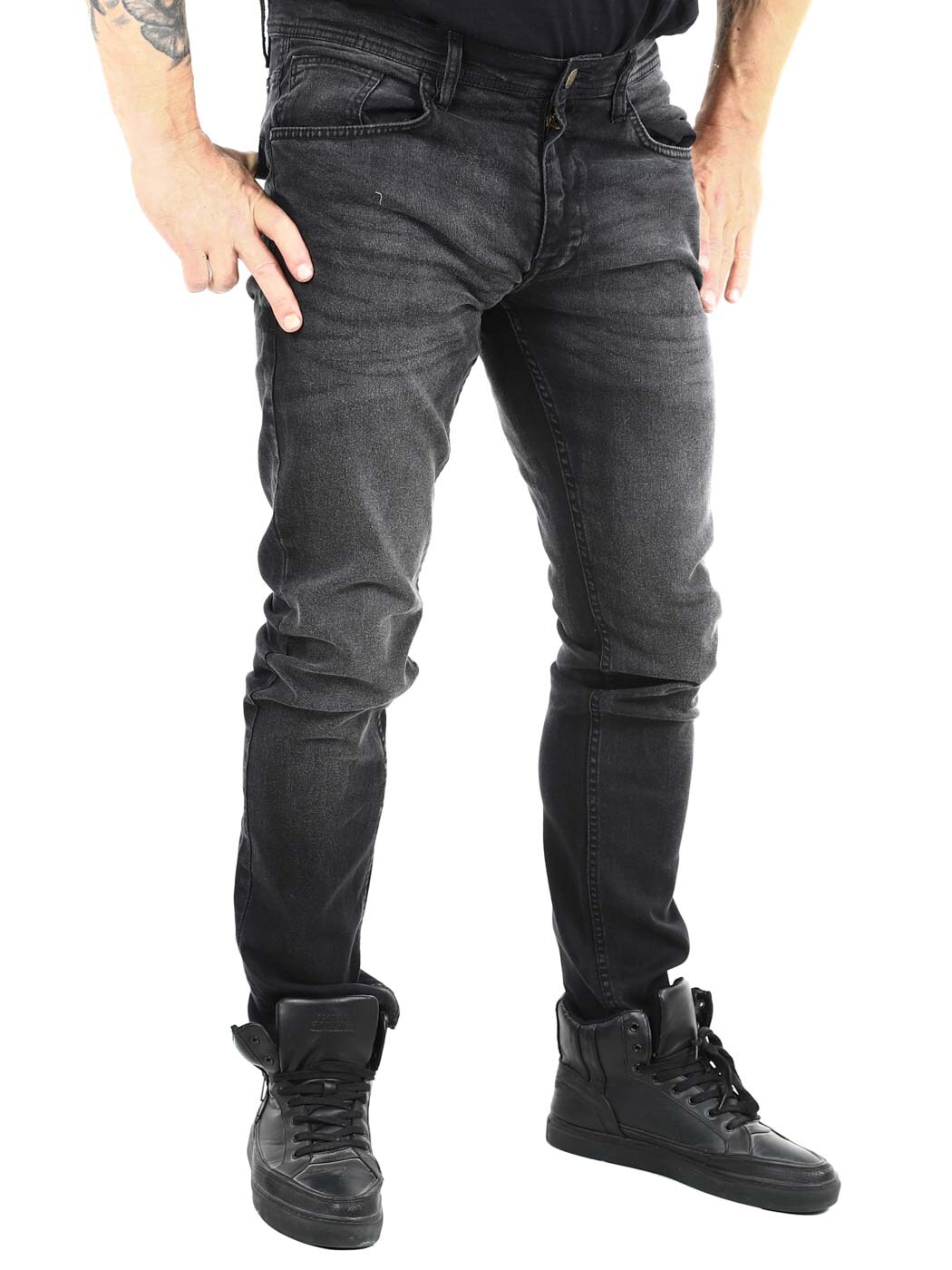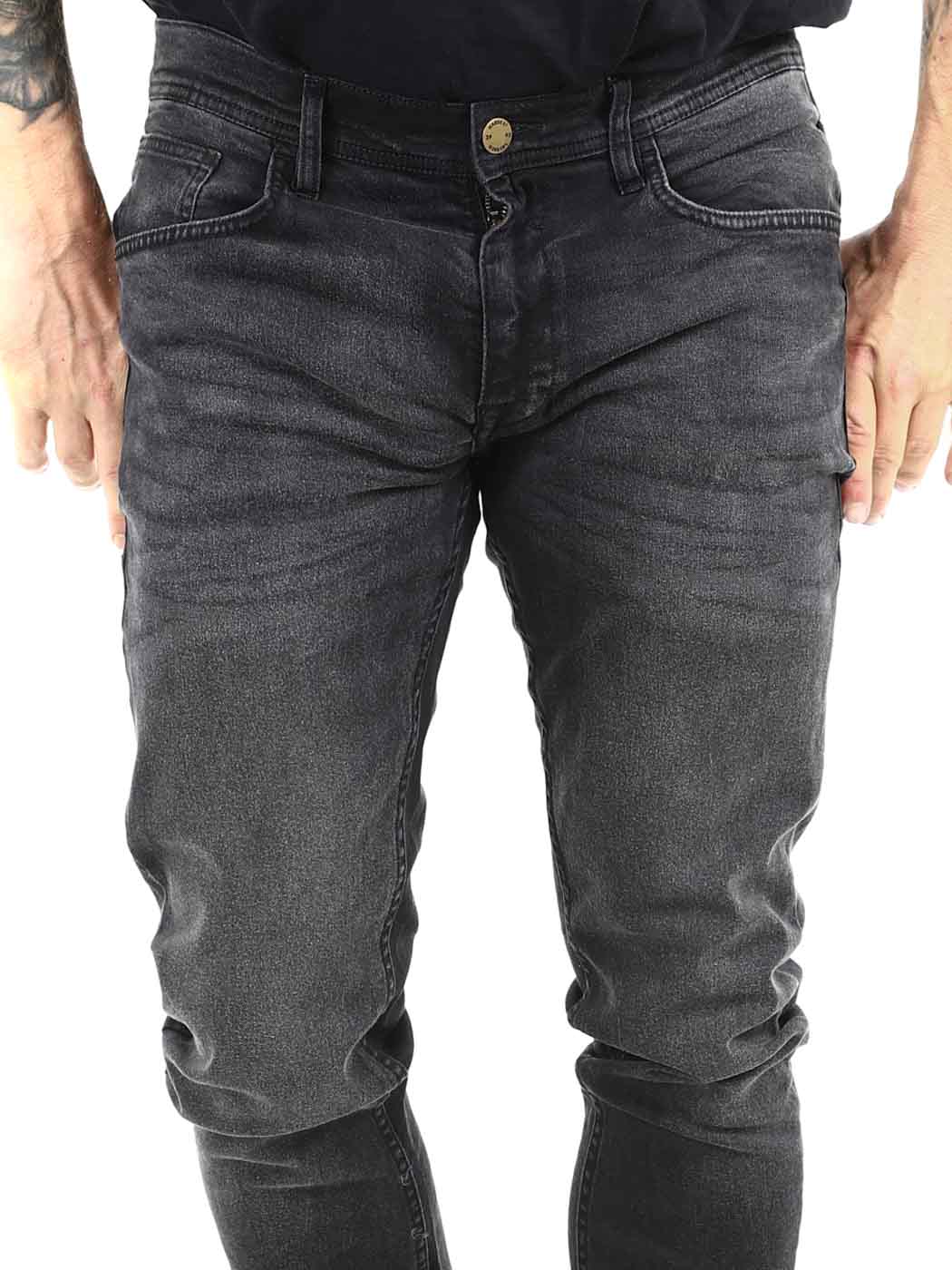 Tyylikkäät housut puuvillafarkusta, jossa on kevyttä joustoa hyvän istuvuuden takaamiseksi. 5-taskuinen malli, jossa on normaali vyötärö ja kapenevat lahkeet. Tyylikkäät mutta yksinkertaiset farkut ovat itsestäänselvä lisä perusvaatekaappiisi!