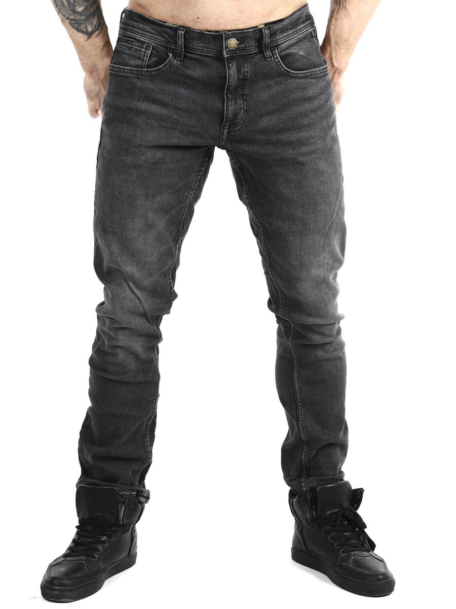 Farkut, joissa käytetty multiflex-tekniikka parantaa kestävyyttä ja mukavuutta. Normaali vyötärö ja kapeat lahkeet. Housuissa on kolme etutaskua, kaksi takataskua ja vyölenkit vyötäröllä.