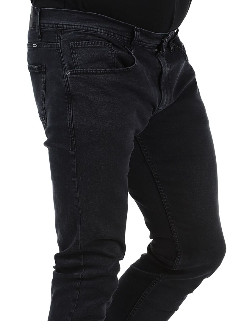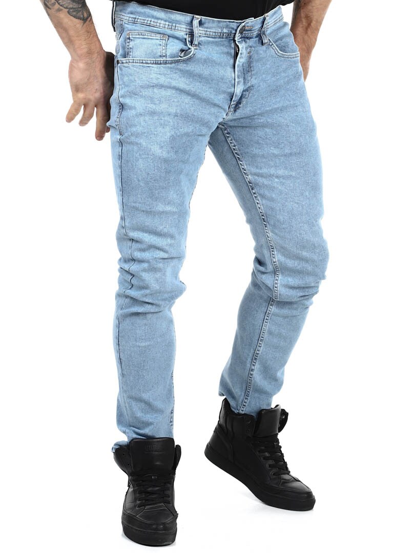 Joustavasta farkkukankaasta valmistetut yksinkertaiset housut. Viiden taskun malli normaalikorkuisella vyötäröllä ja kapeilla lahkeilla. Perusfarkut, jotka sopivat melkeinpä mihin tahansa!