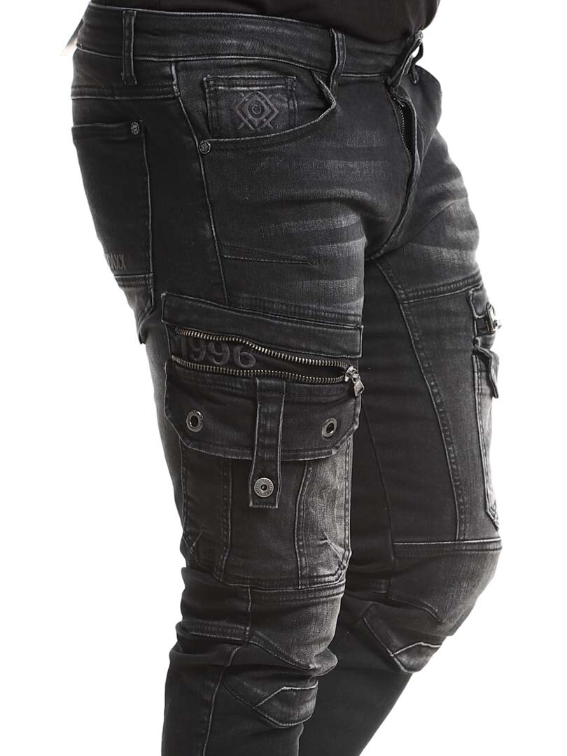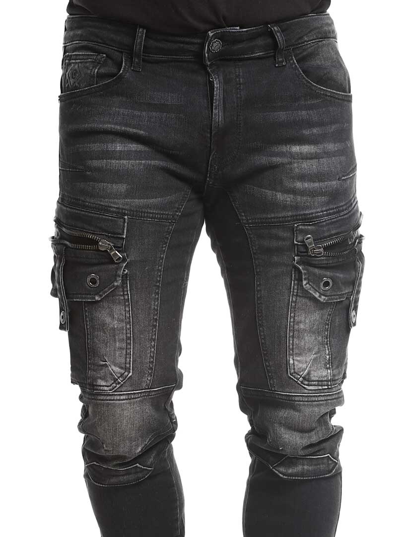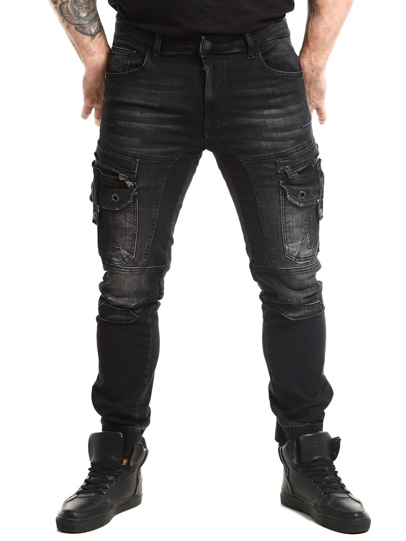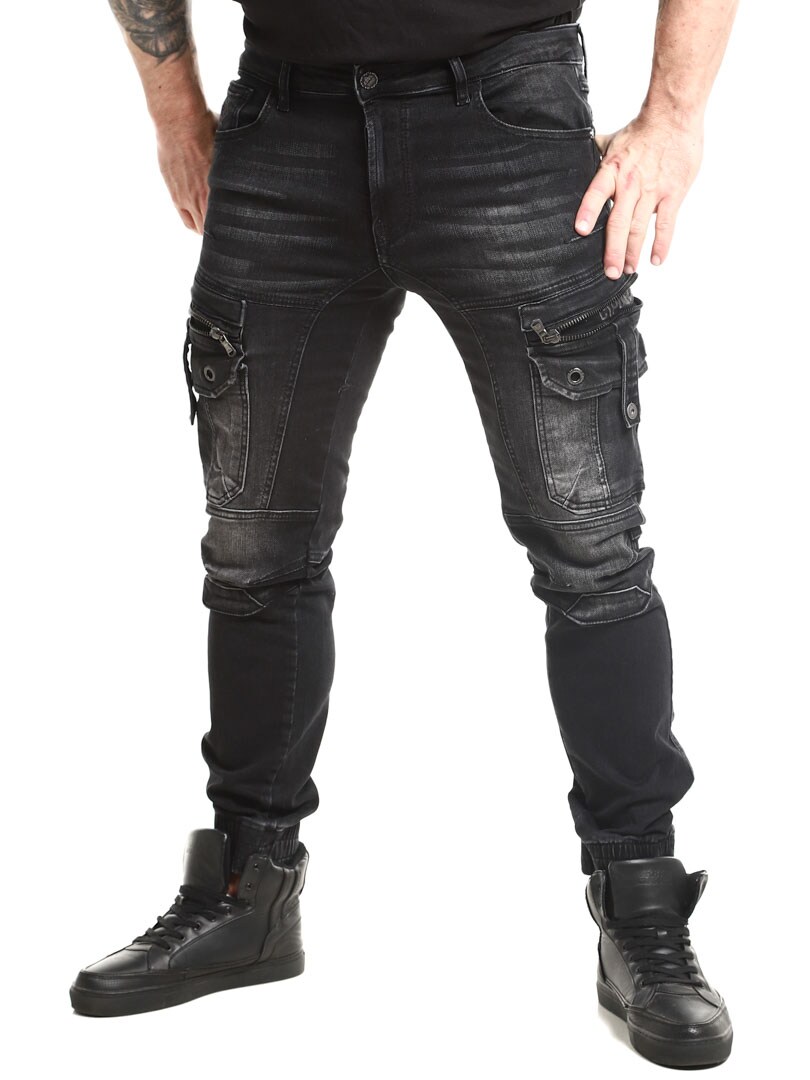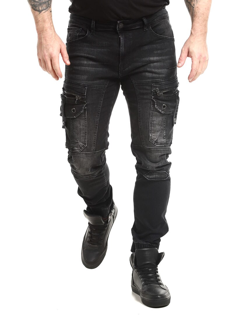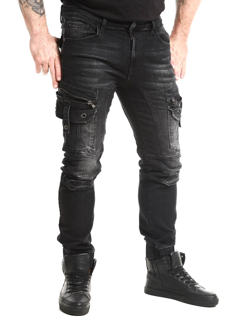 Kivipestyt housut farkkukankaasta. Housuissa yhdistyvät collegehousujen mukavuus ja farkkujen päheä ulkoasu. Niissä on useita taskuja ja resorit lahkeissa.