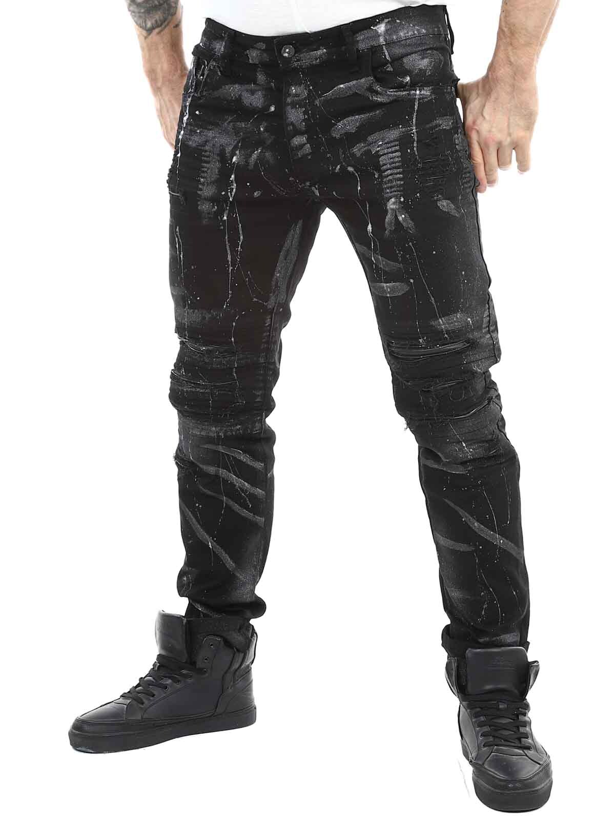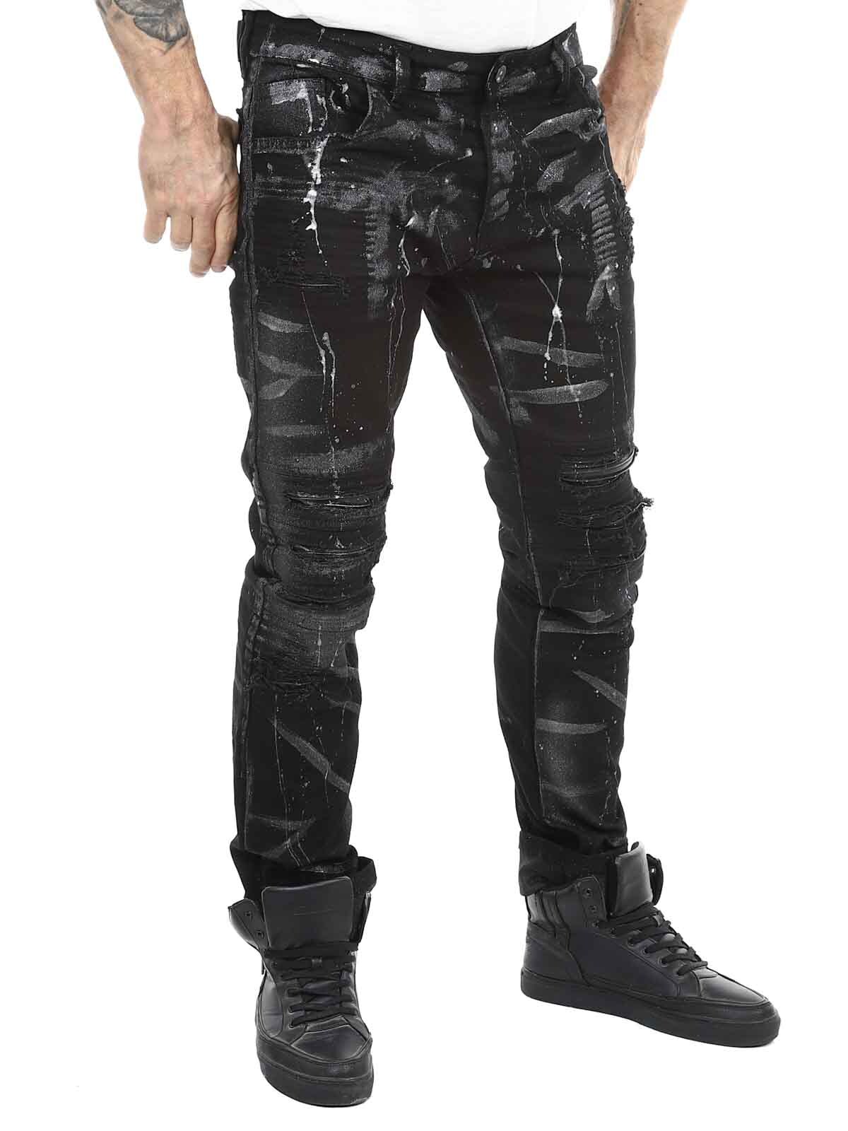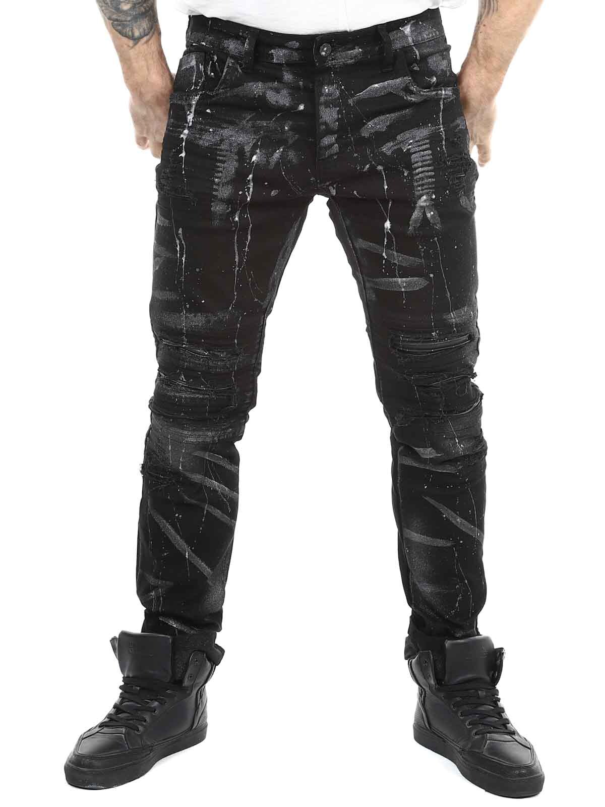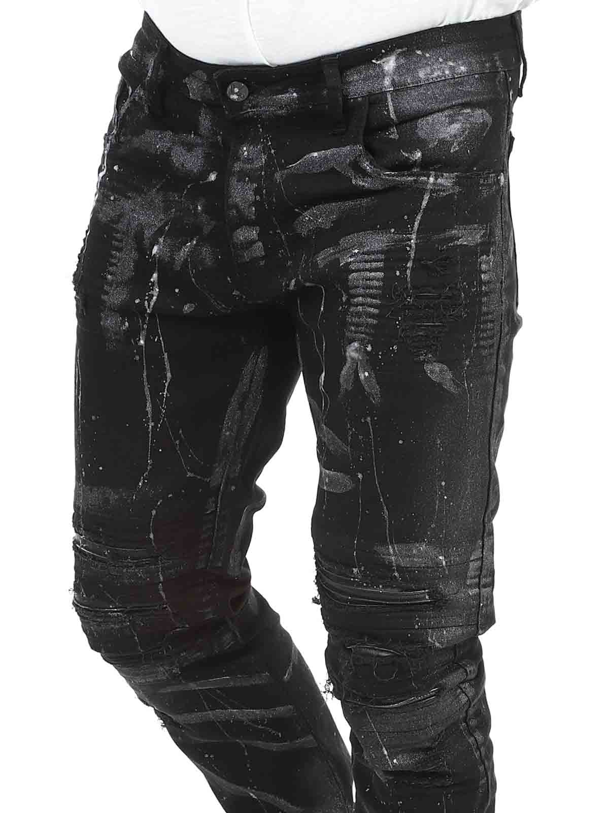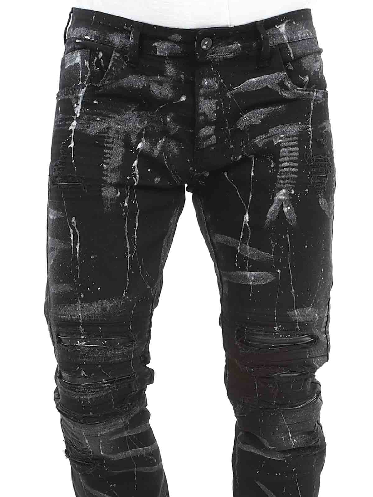 Farkut mukavasta ja joustavasta denimistä. Päheä tyyli, johon kuuluvat keinonahkaiset repeämät ja maalitehosteet. Viisitaskuinen malli vyölenkeillä sekä takapuolen merkkilapulla. Nämä farkut on kuin luotu antamaan sinulle rohkeaa ja ainutlaatuista särmää!