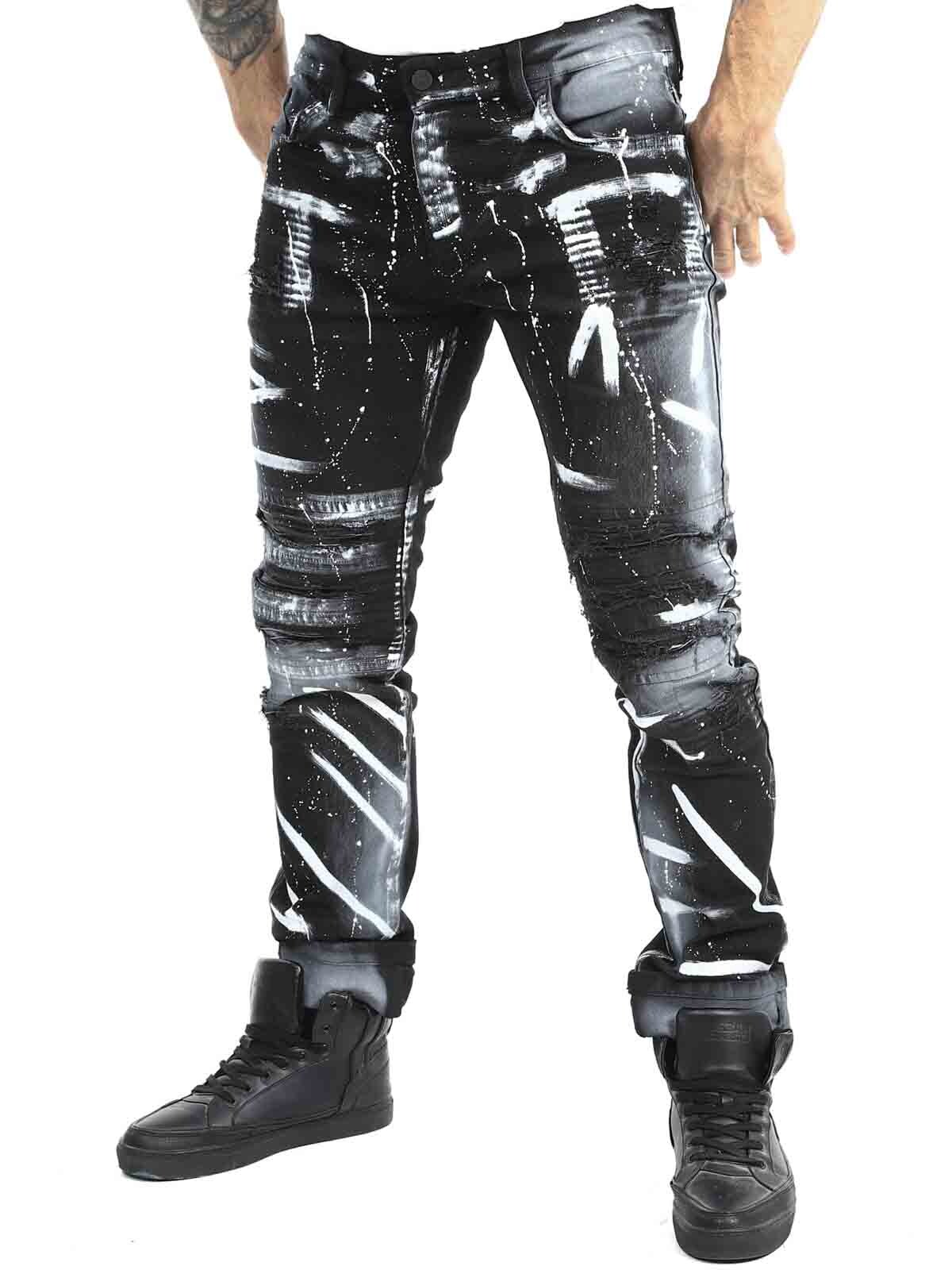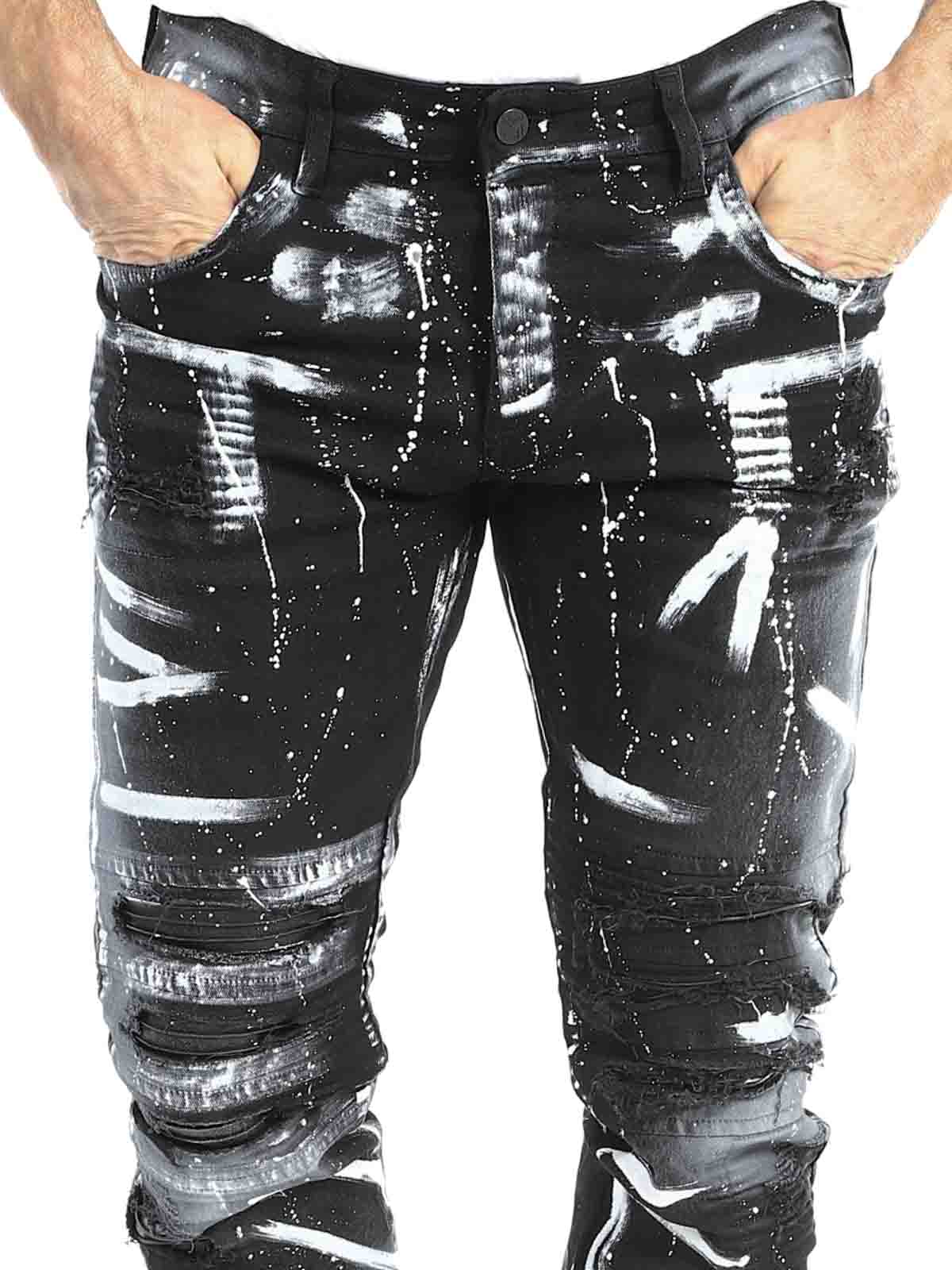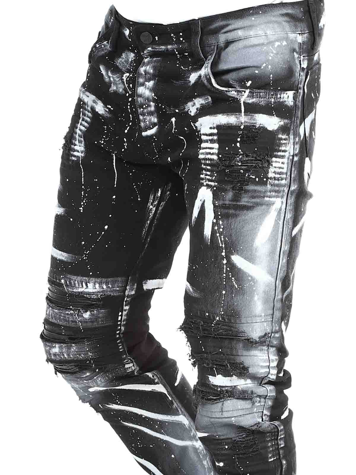 Farkut mukavasta ja joustavasta denimistä. Päheä tyyli, johon kuuluvat keinonahkaiset repeämät ja maalitehosteet. Viisitaskuinen malli vyölenkeillä sekä takapuolen merkkilapulla. Nämä farkut on kuin luotu antamaan sinulle rohkeaa ja ainutlaatuista särmää!