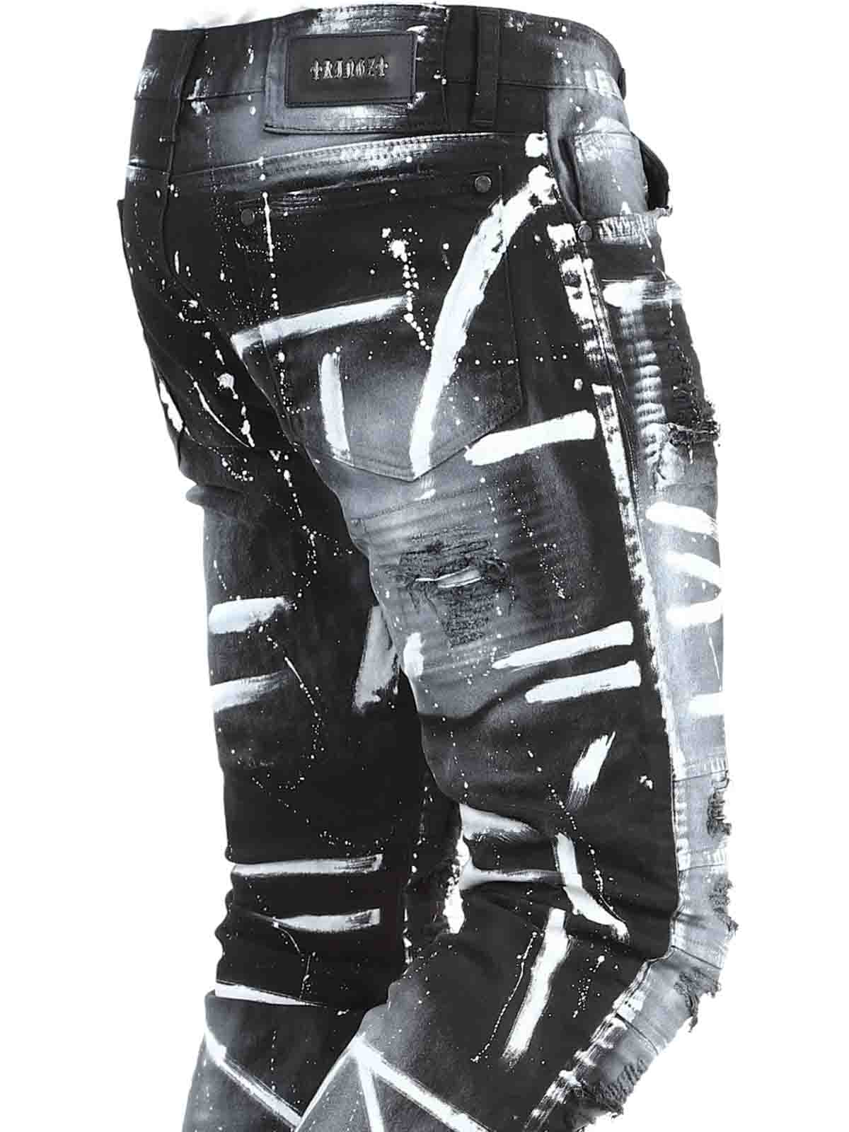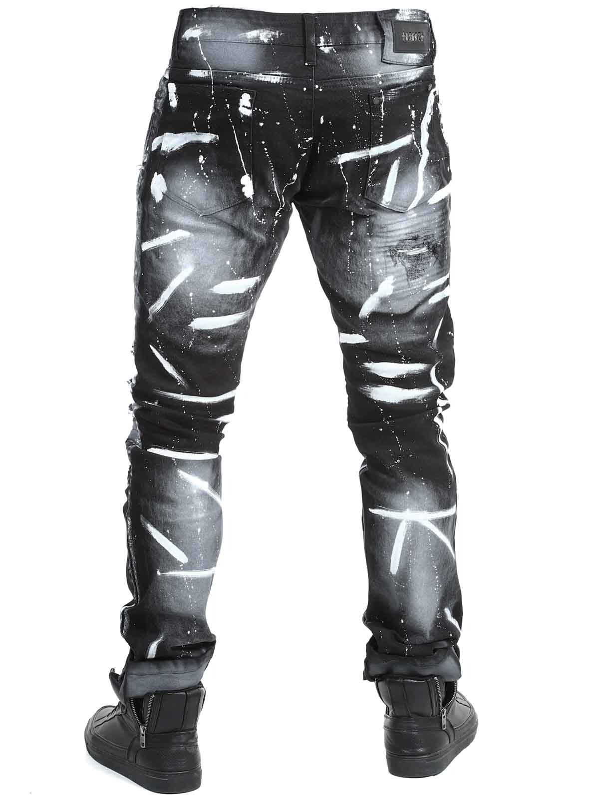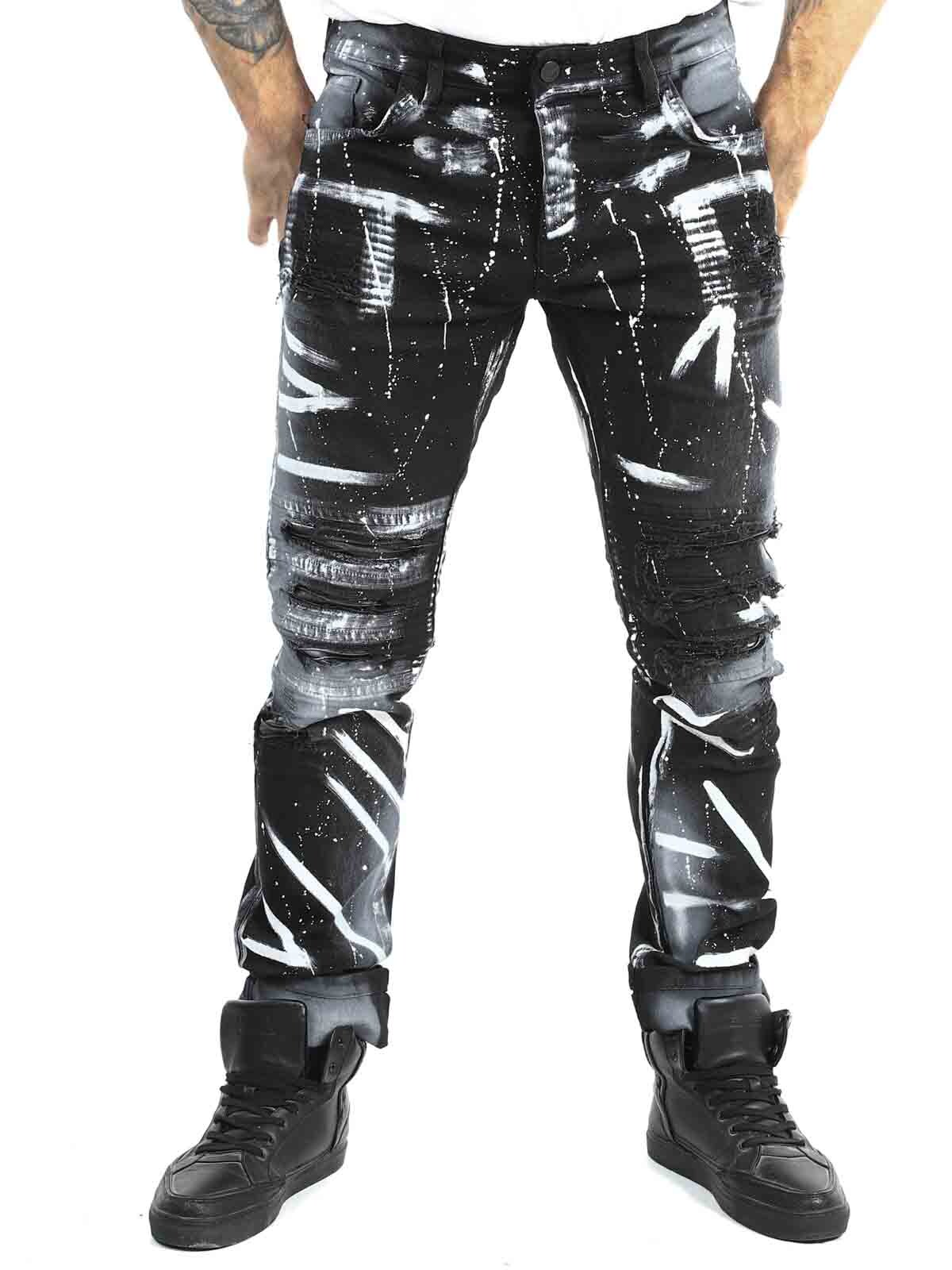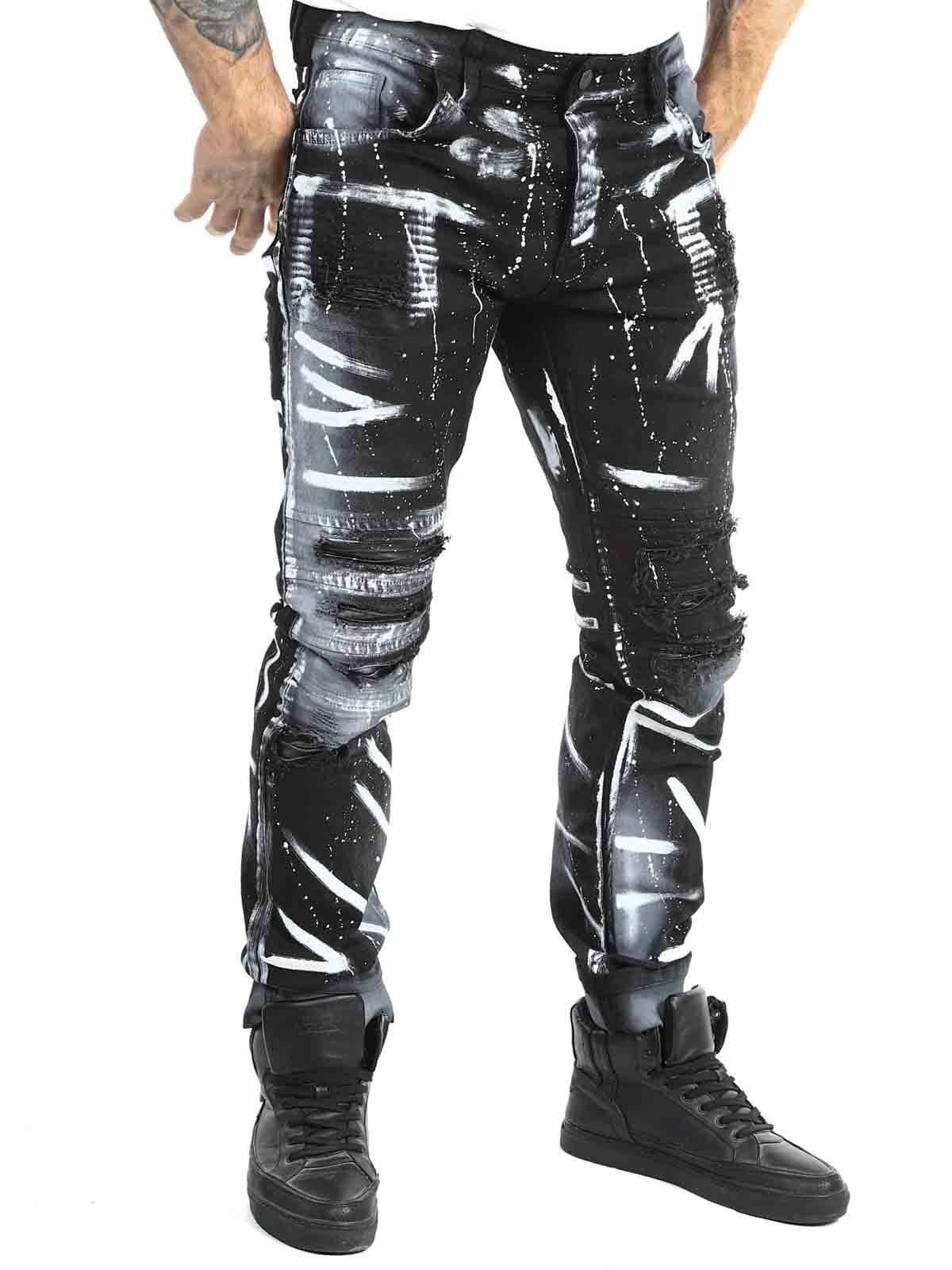 Farkut mukavasta ja joustavasta denimistä. Päheä tyyli, johon kuuluvat keinonahkaiset repeämät ja maalitehosteet. Viisitaskuinen malli vyölenkeillä sekä takapuolen merkkilapulla. Nämä farkut on kuin luotu antamaan sinulle rohkeaa ja ainutlaatuista särmää!