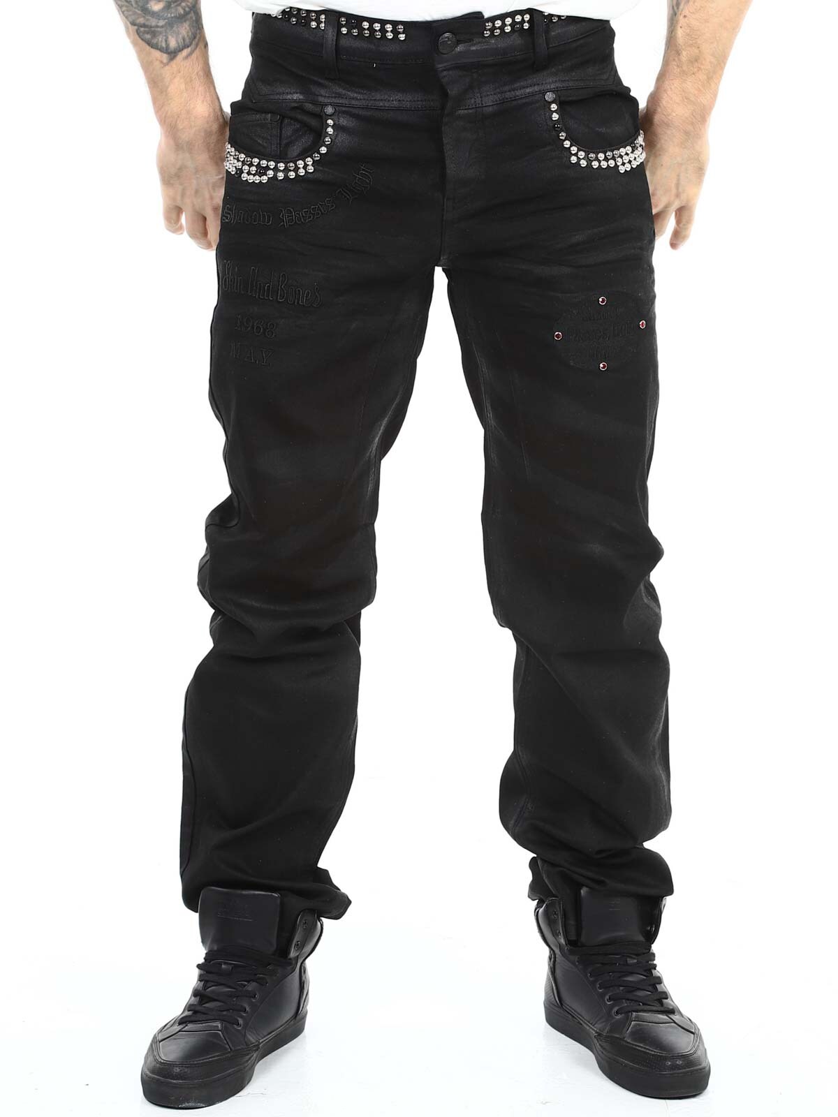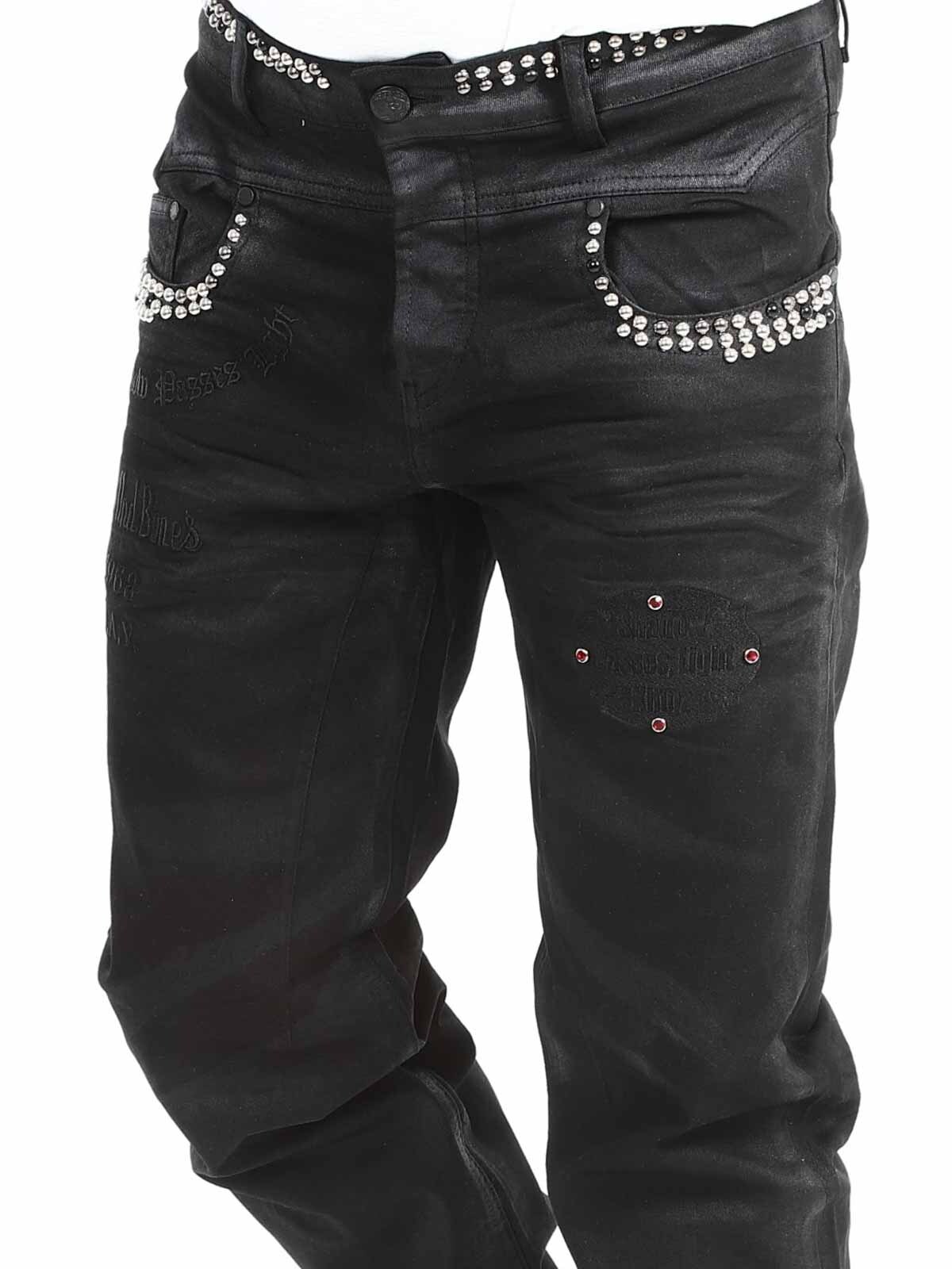 Joustavasta materiaalista valmistetut farkut, joiden tyyli herättää huomiota. Housuissa on vyölenkit, kolme etutaskua ja kolme takataskua. Ne on viimeistelty niiteillä ja räätälöidyillä printeillä. Jos haluat olla ainutlaatuinen ja erottua joukosta, nämä farkut ovat juuri sinua varten!