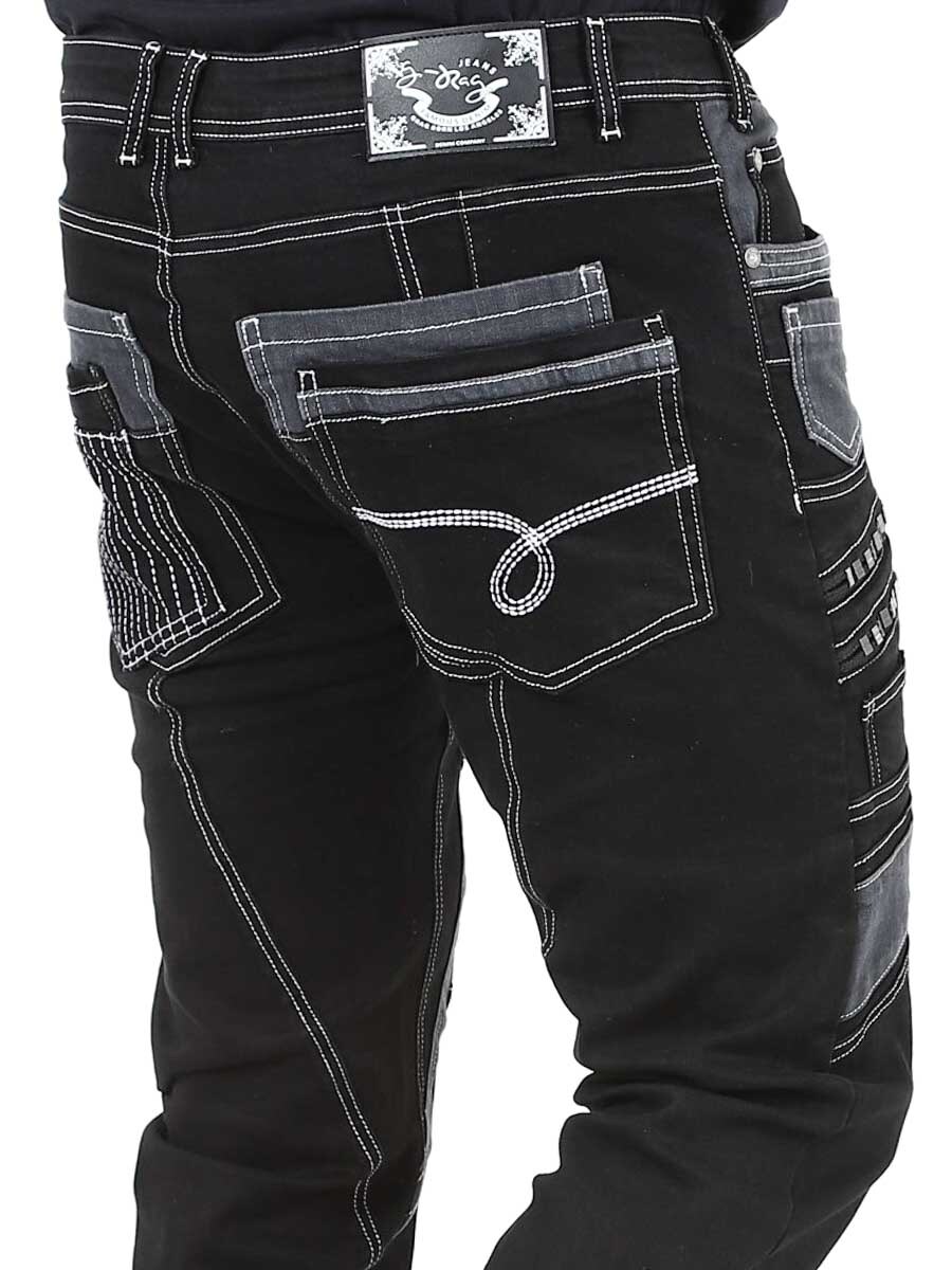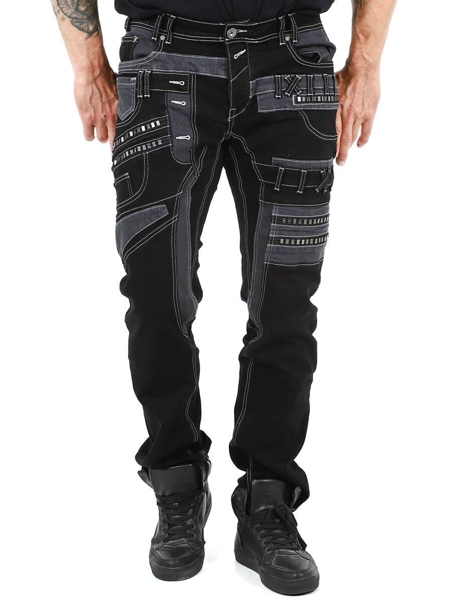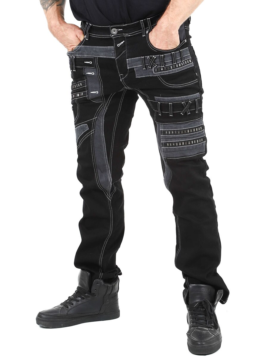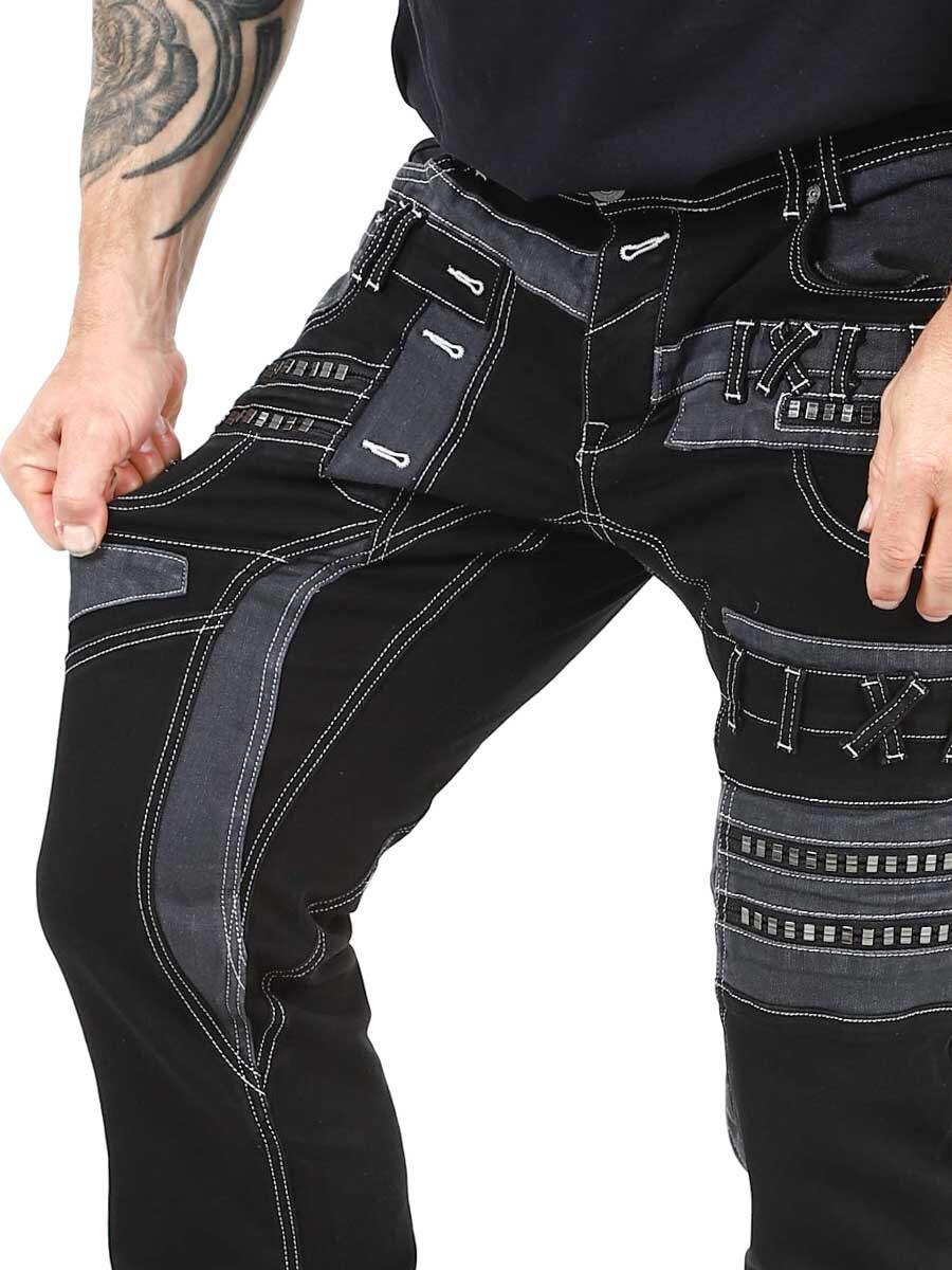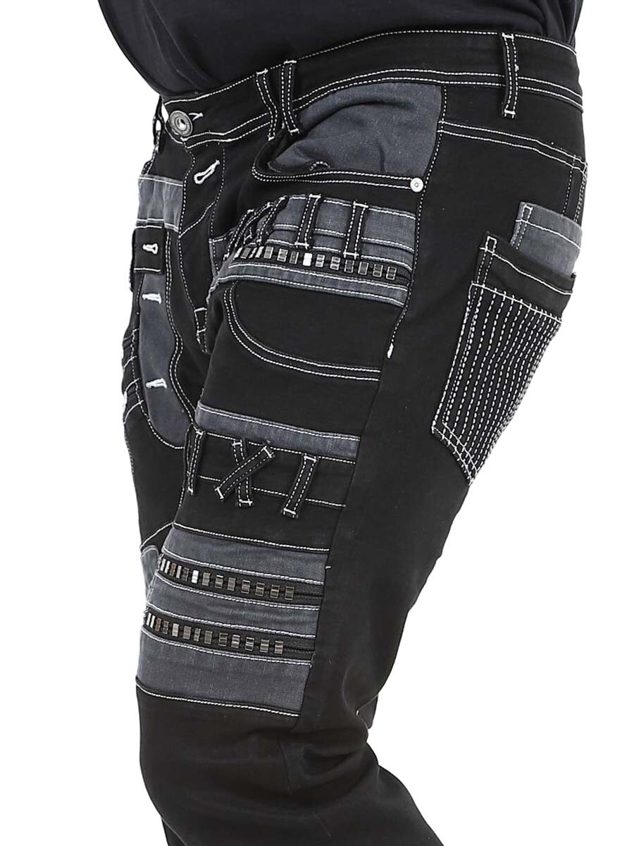 Lisää asuusi tummanpuhuvaa ilmettä näillä uniikeilla mustilla stretch-farkuilla. Vetoketjut, saumat ja paneelit antavat farkuille rohkean ilmeen. Täydelliset sinulle, joka haluat pukeutua tavallisuudesta poikkeavasti.