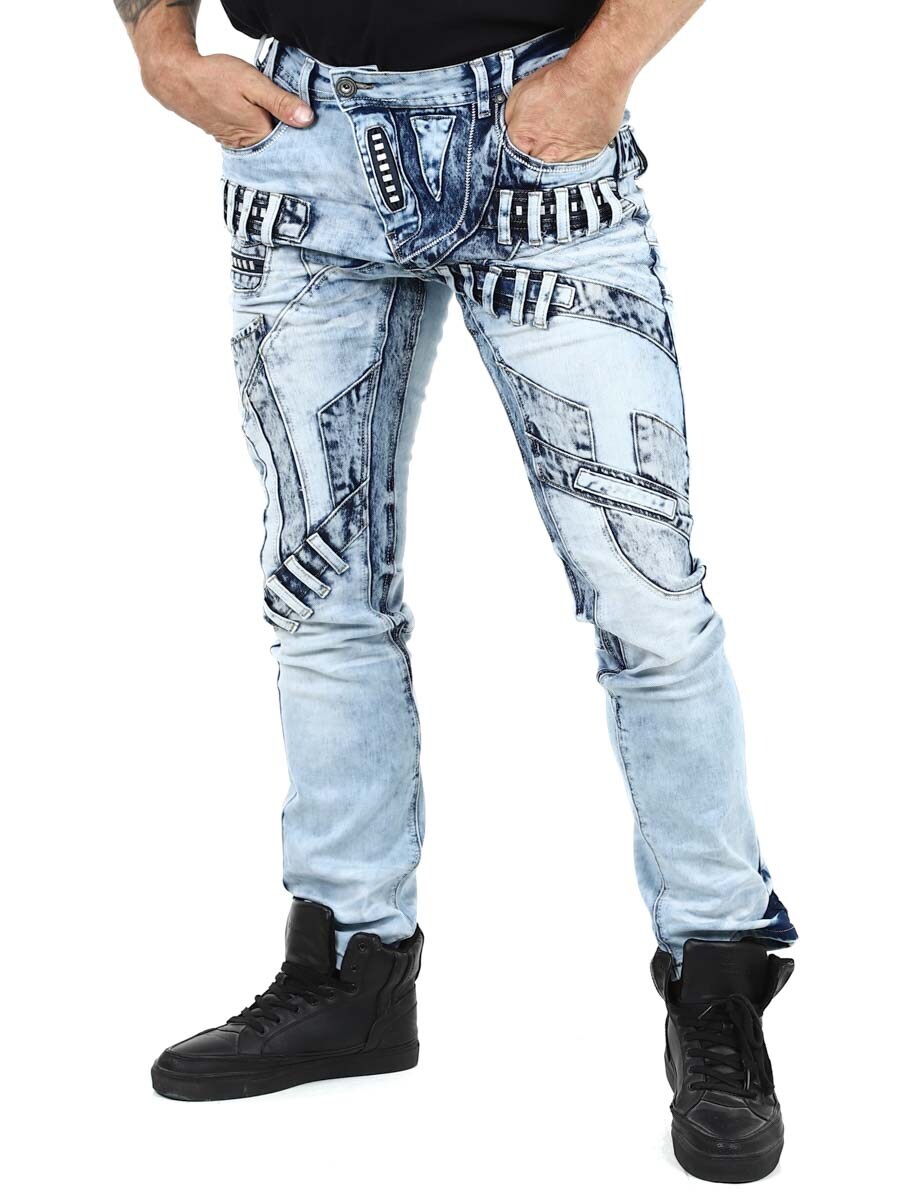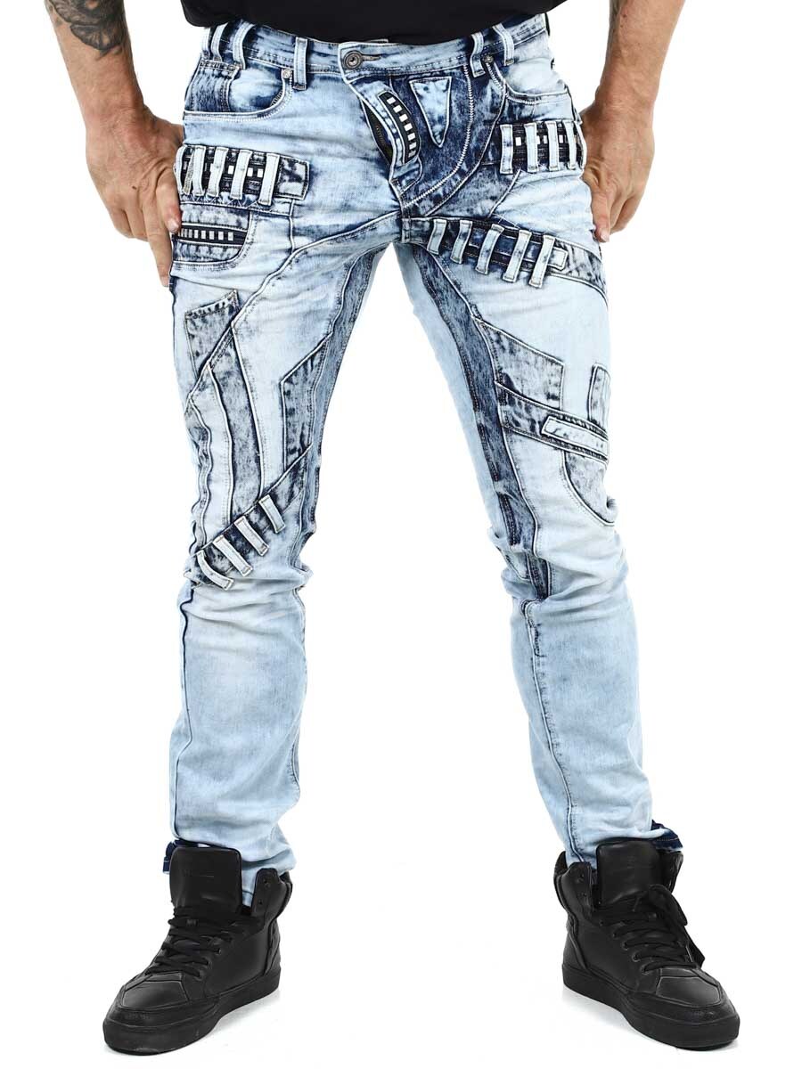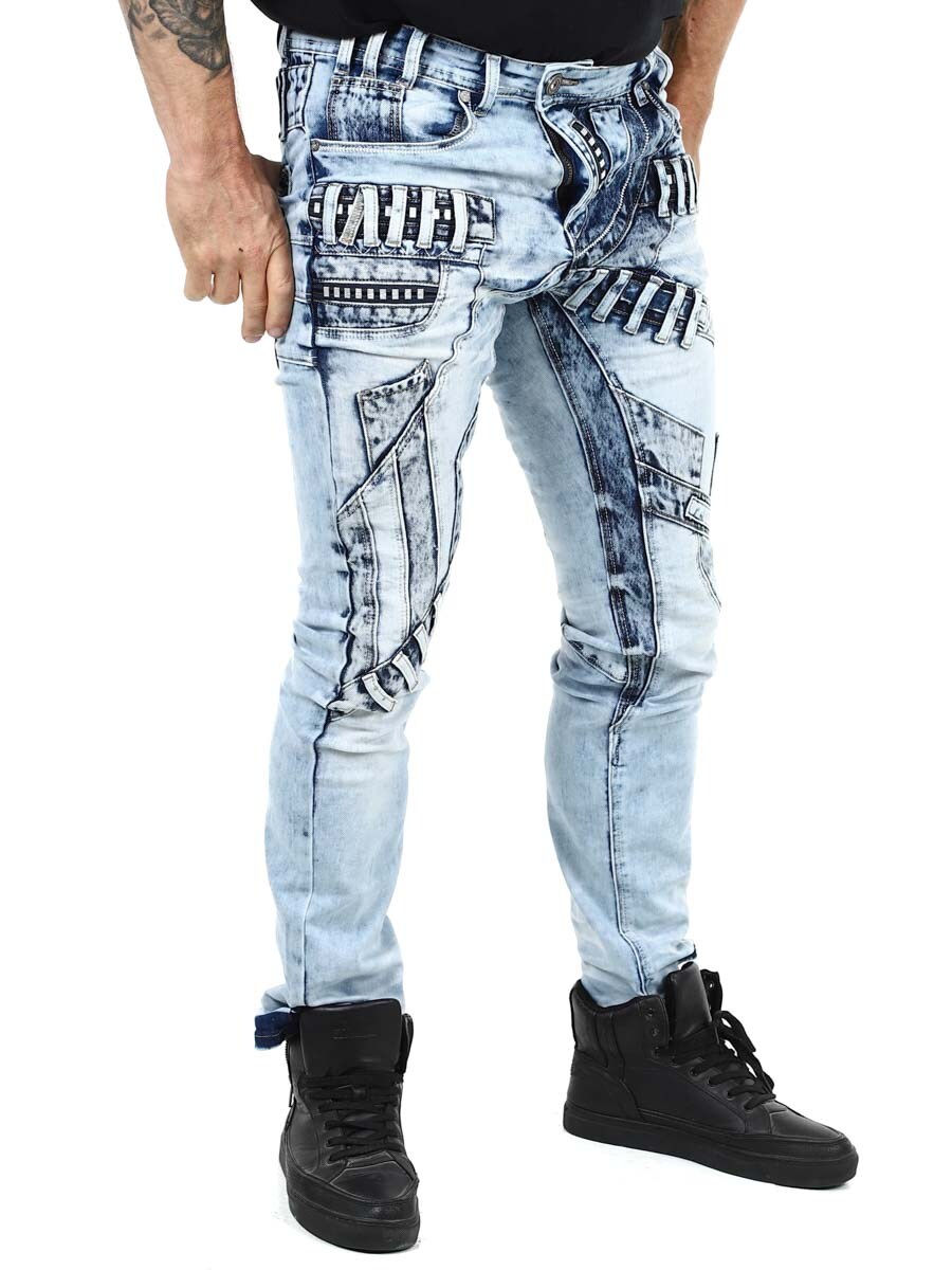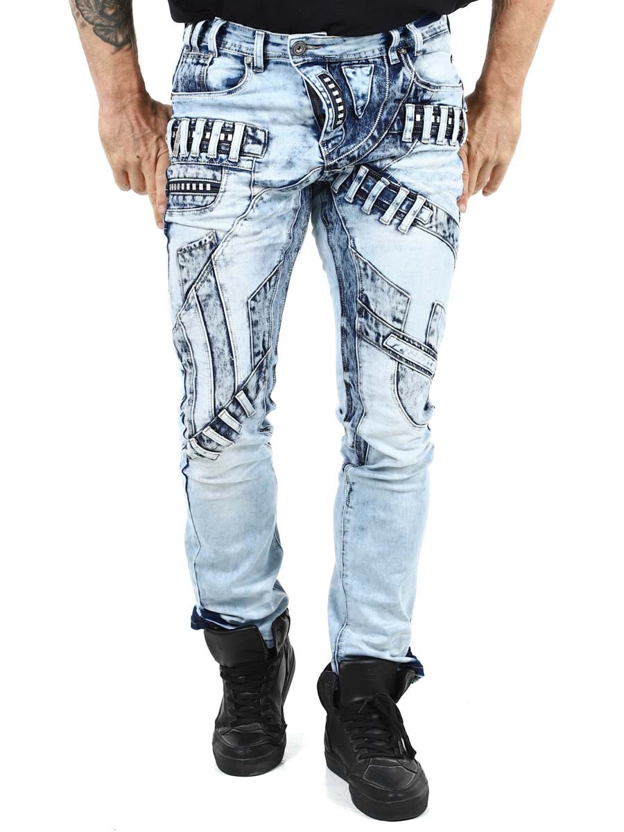 Ainutlaatuiset farkut, jotka on valmistettu pestystä vaaleasta farkusta ja joiden kulumat, vetoketjut ja paneelit luovat ilmeikkään mutta tyylikkään vaikutelman. Täydelliset sinulle, joka haluat erottua joukosta!