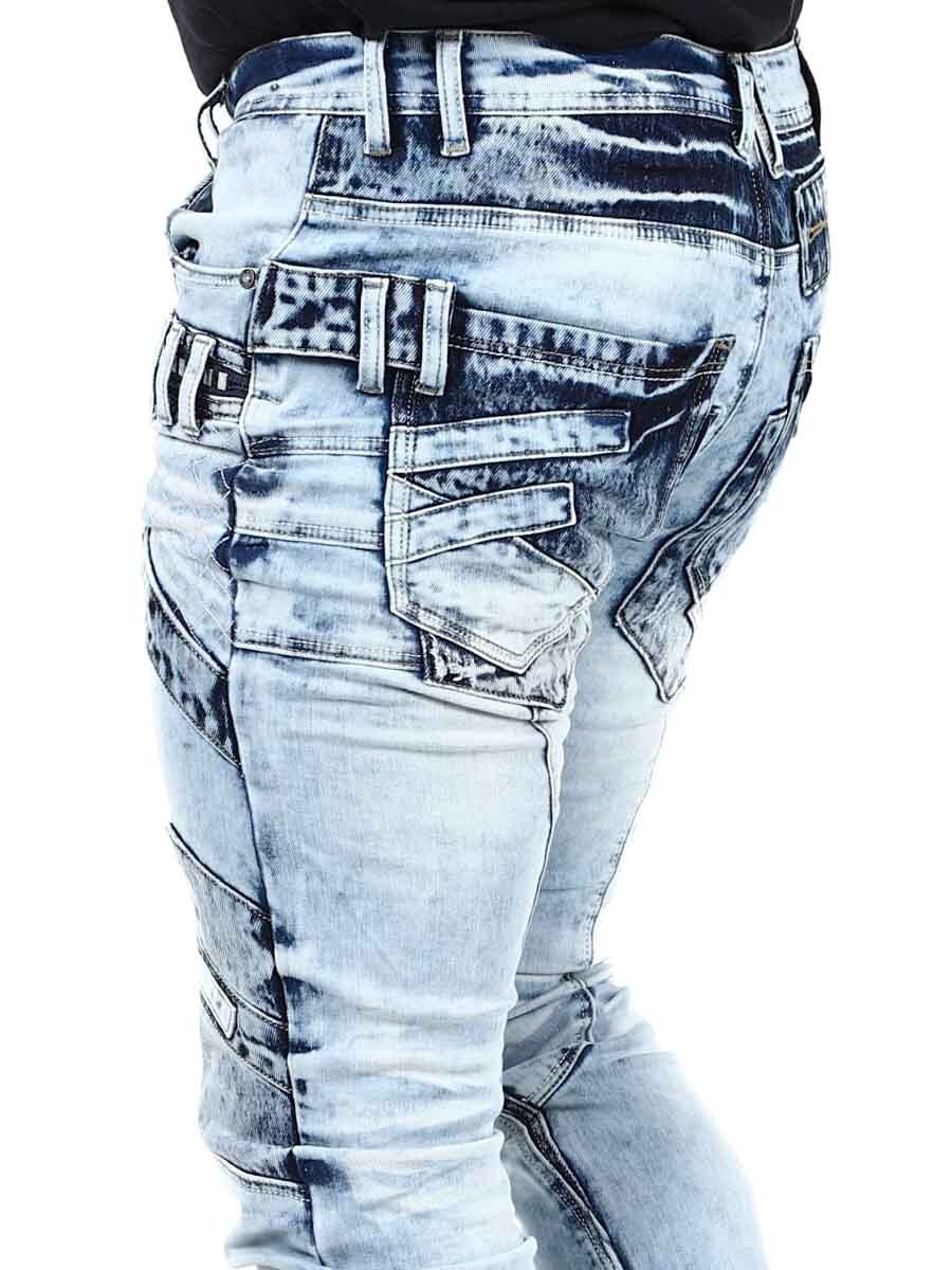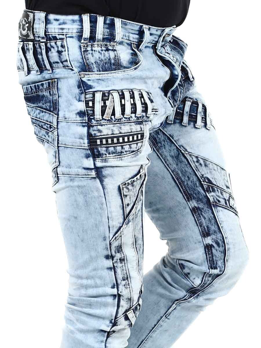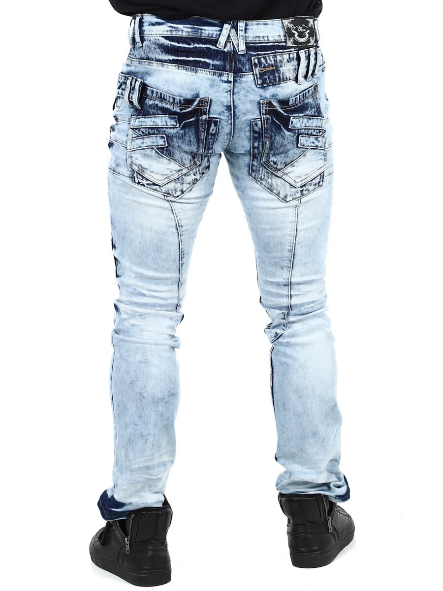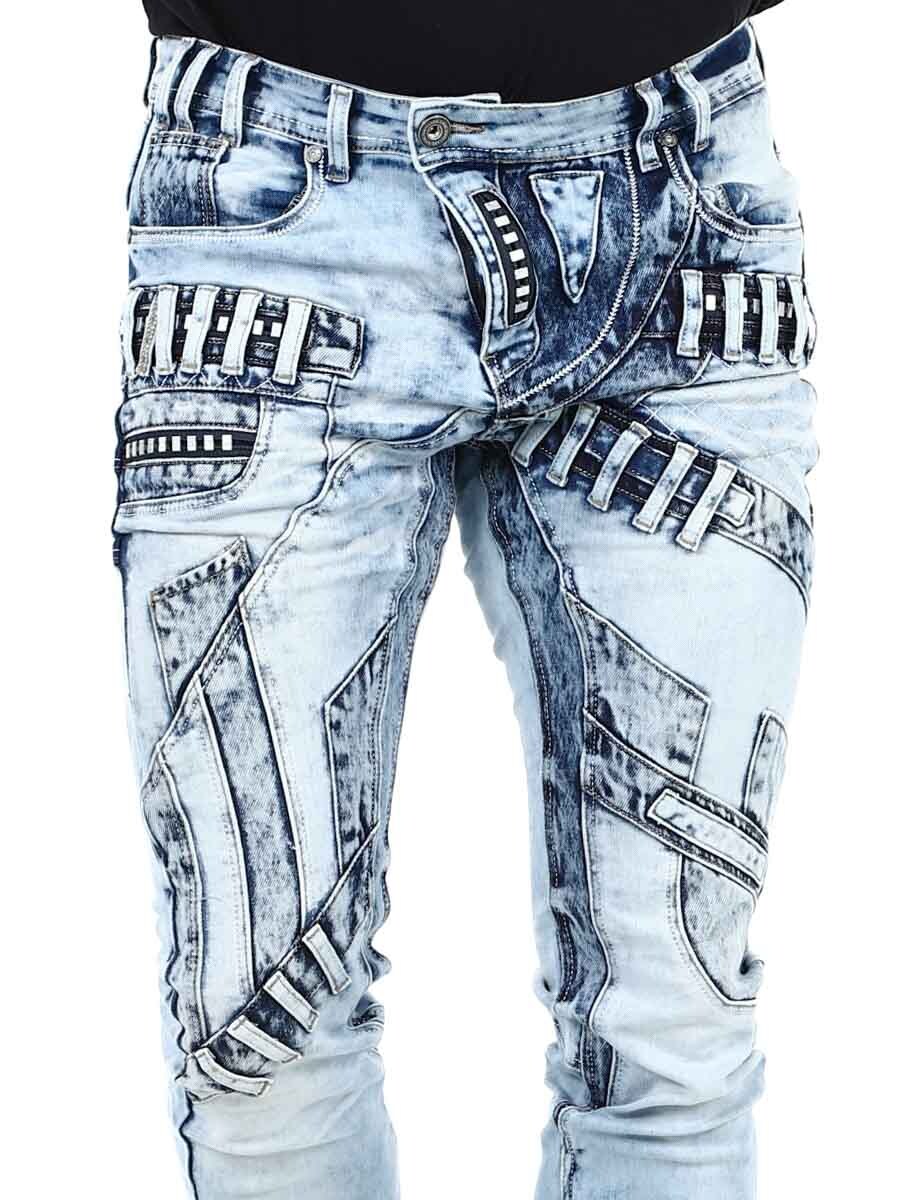 Ainutlaatuiset farkut, jotka on valmistettu pestystä vaaleasta farkusta ja joiden kulumat, vetoketjut ja paneelit luovat ilmeikkään mutta tyylikkään vaikutelman. Täydelliset sinulle, joka haluat erottua joukosta!