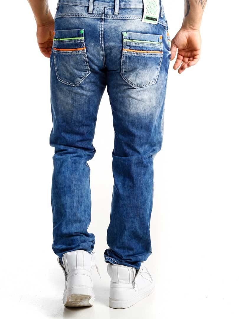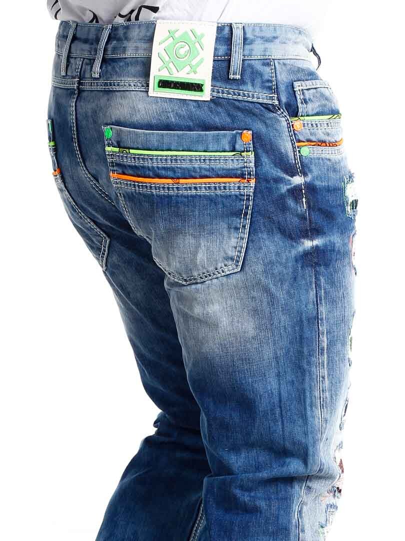 Farkut neonvärisillä yksityiskohdilla merkiltä Cipo & Baxx