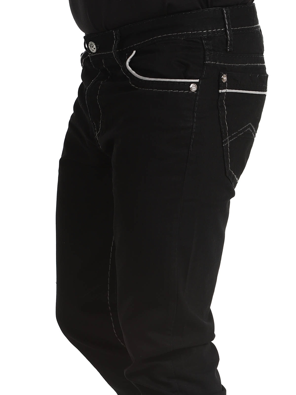 Klassisen malliset mustat farkut, joissa on rouheat saumat kontrastiväreissä. Neljä etutaskua ja kaksi takataskua. Tyylikkäät housut, jotka sopivat useimmille!