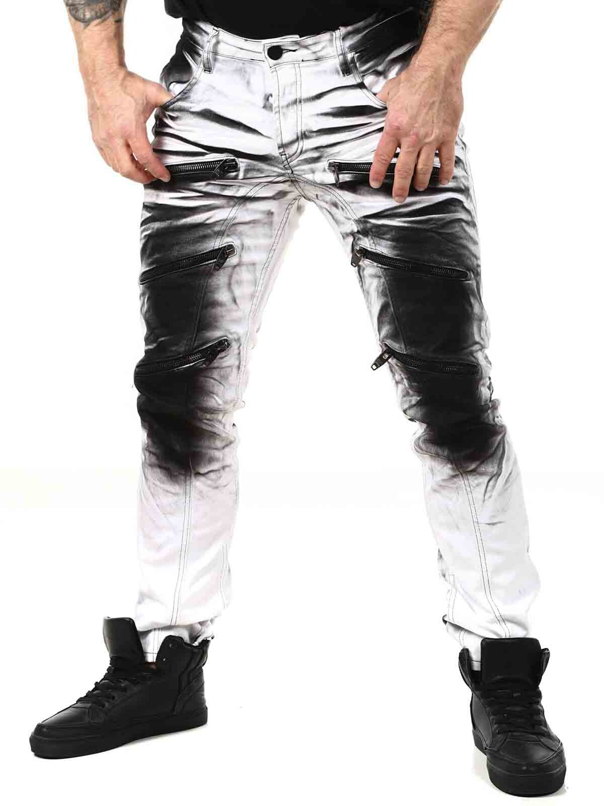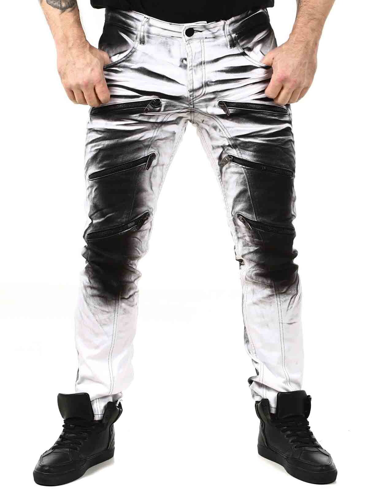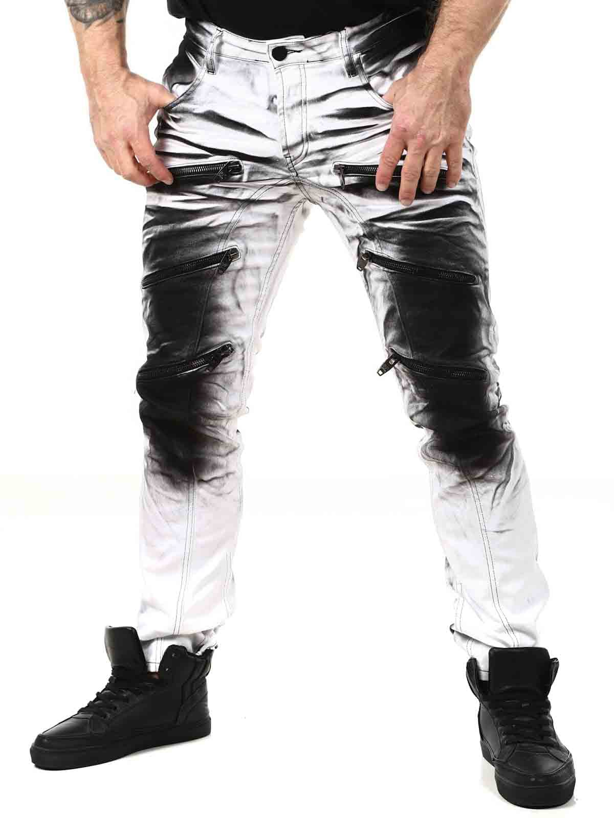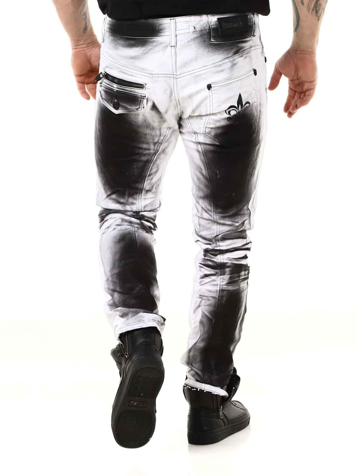 Päheät farkut, joiden lahkeensuissa on painatus. Farkuissa on kolme etutaskua, kaksi takataskua ja vyötäröllä vyölenkit. Niissä on rouheina yksityiskohtina vetoketjuja, printtejä ja kontrastiompeleita.