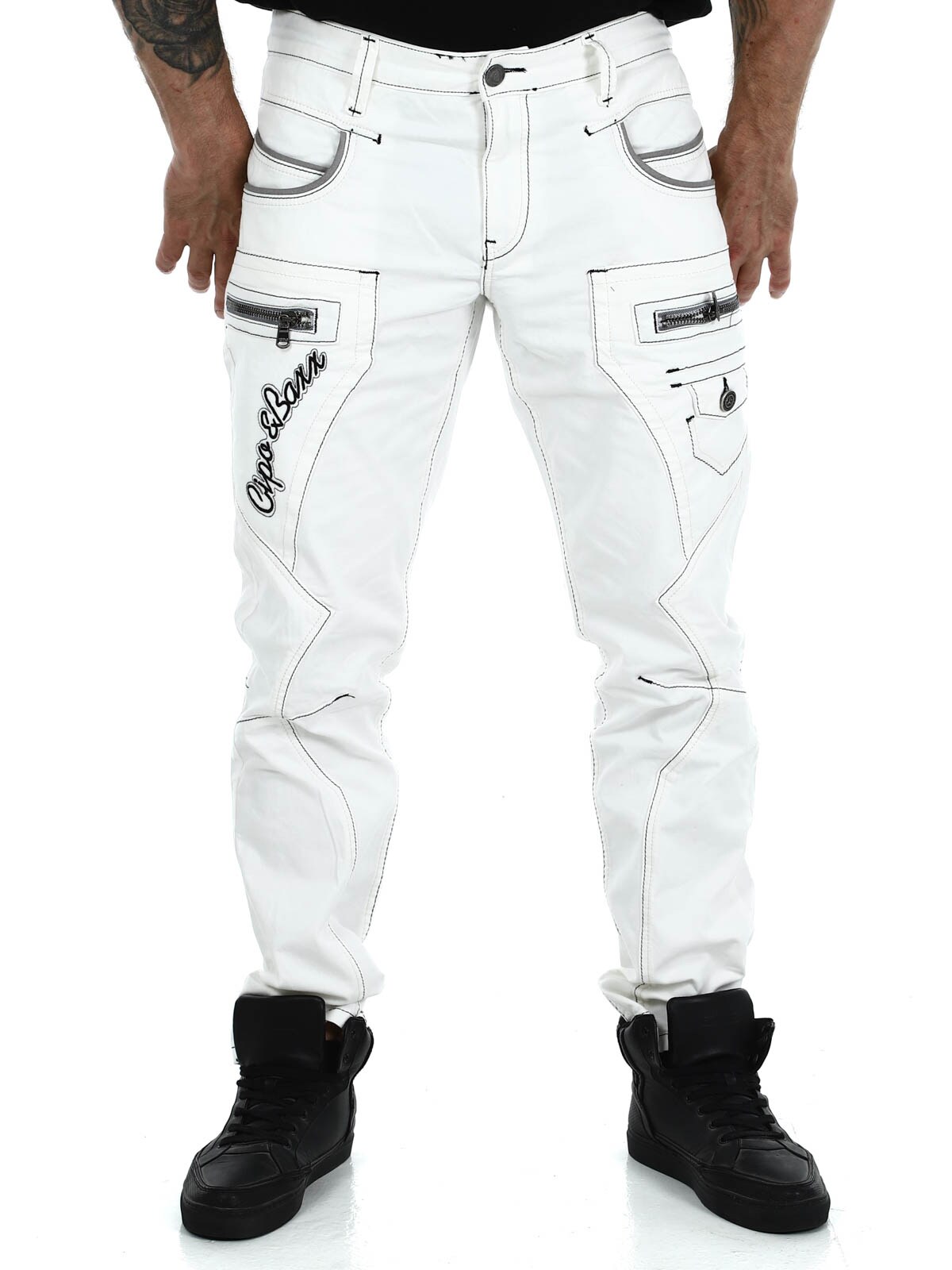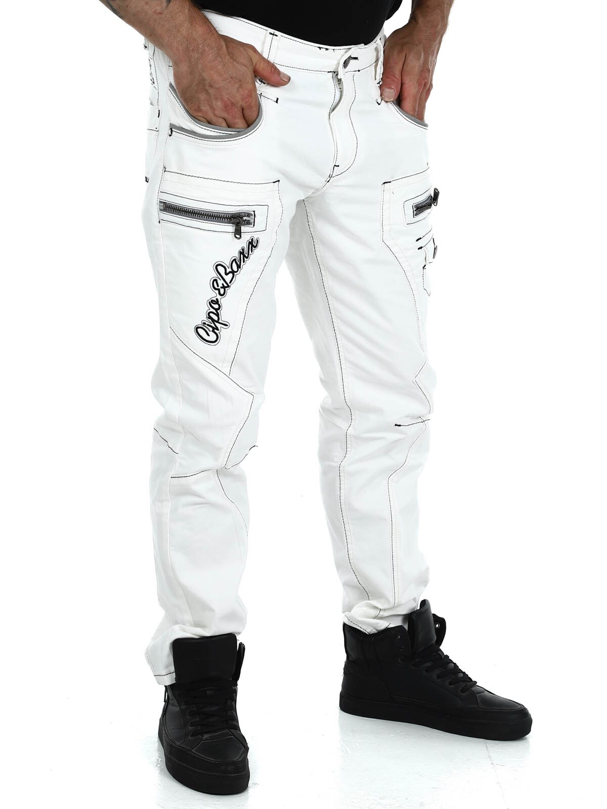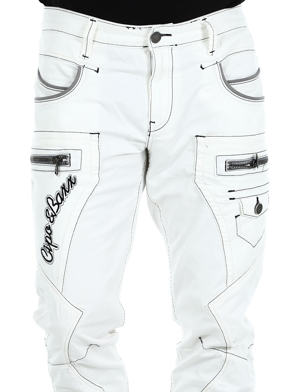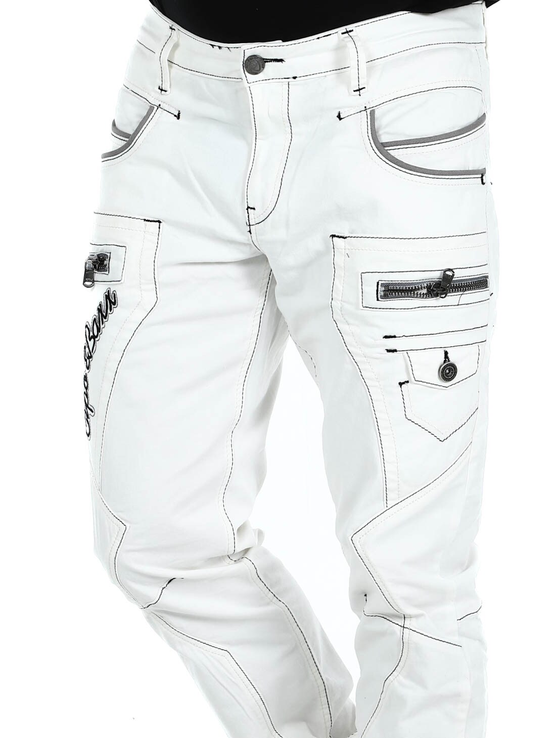Valkoiset farkut harmailla saumoilla merkiltä Cipo & Baxx