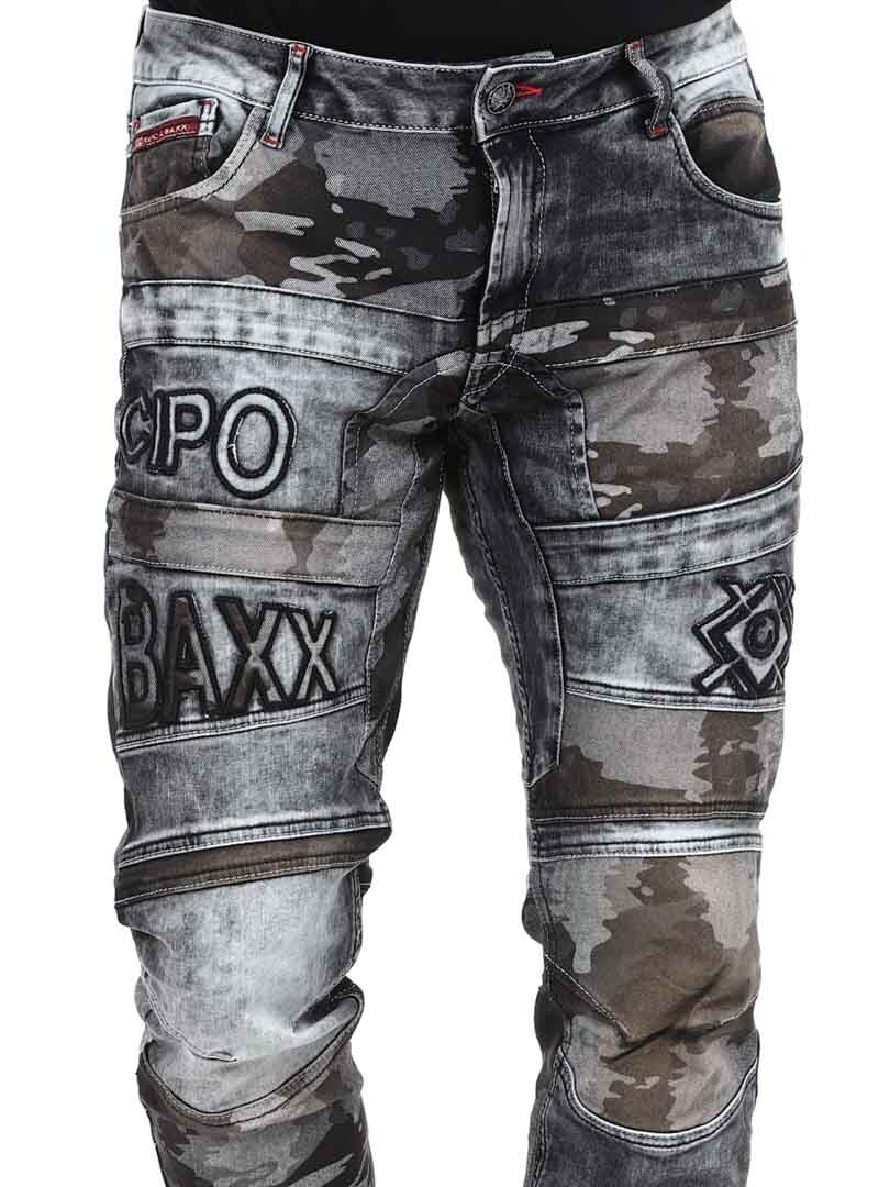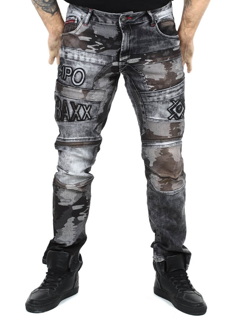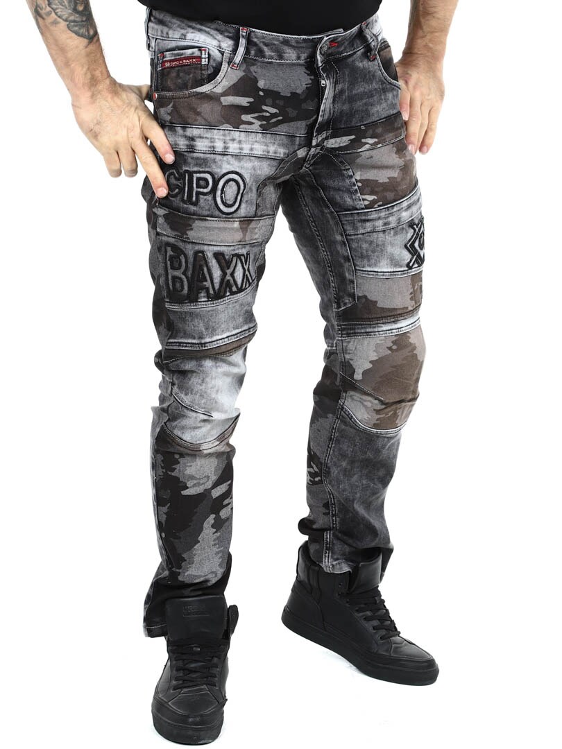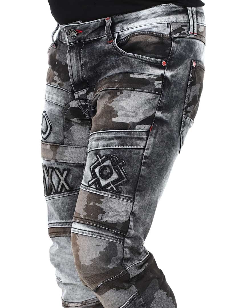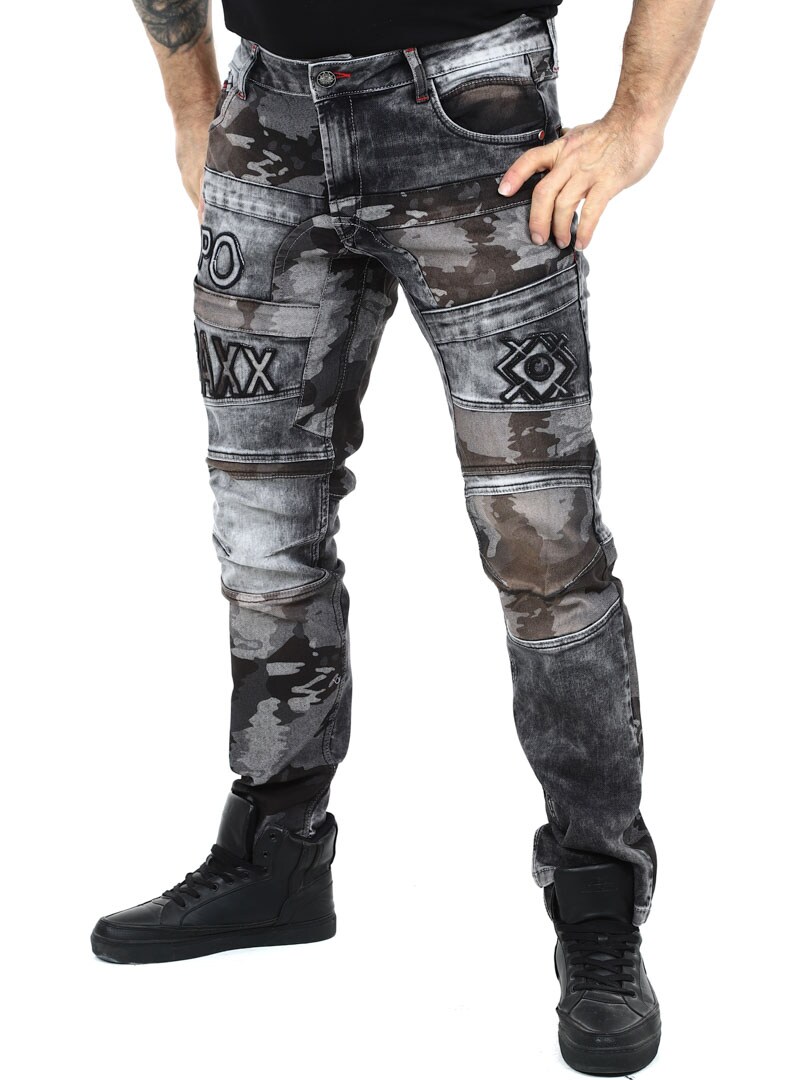 Kivipestyt housut, joissa on maastokuvioisia osioita. 5-taskuinen joustava malli ja klassinen istuvuus. Räätälöity logo edessä ja takana.