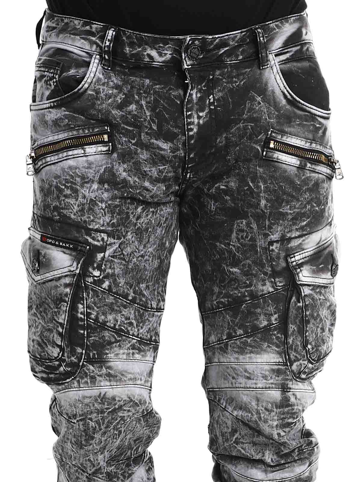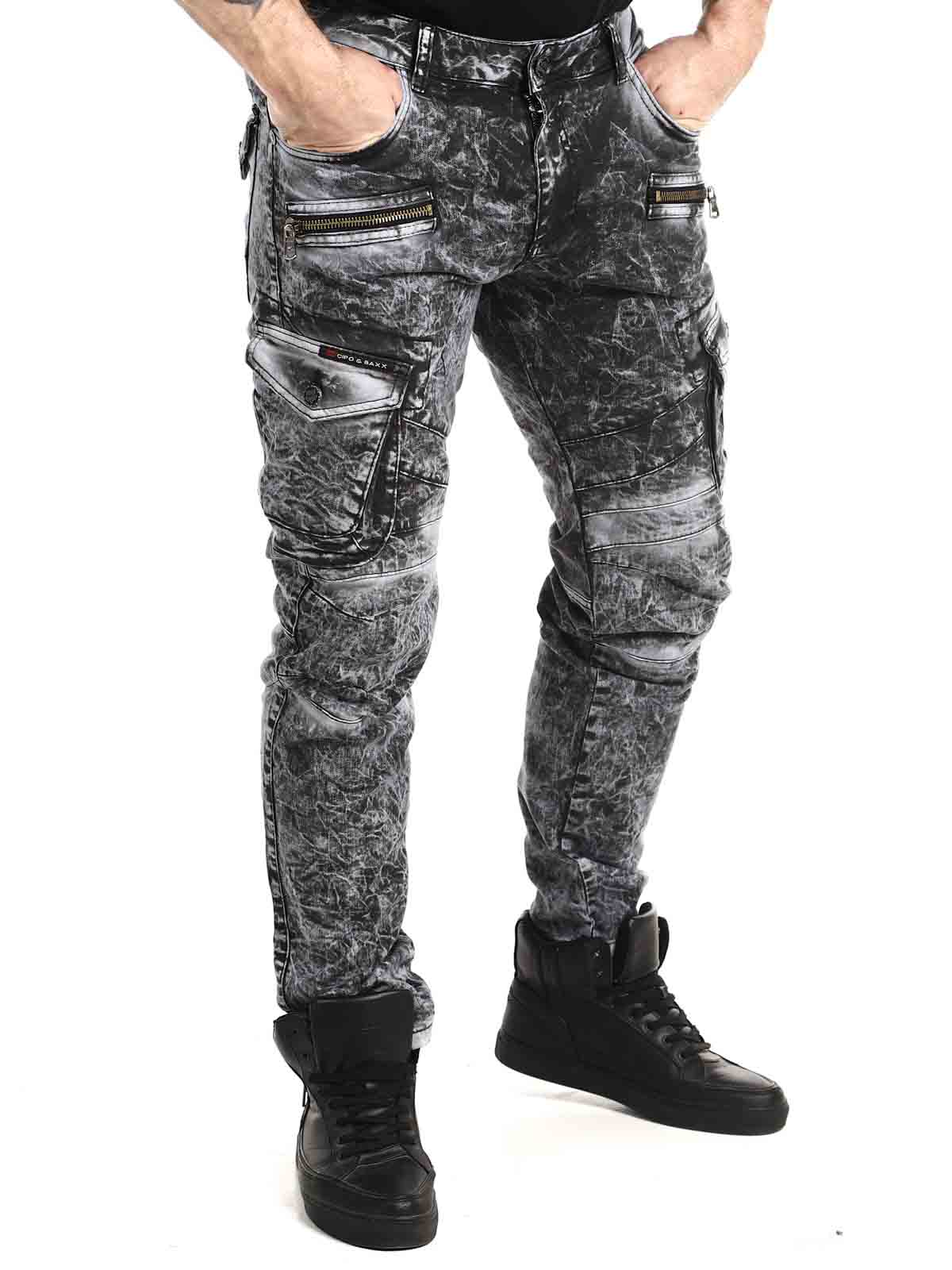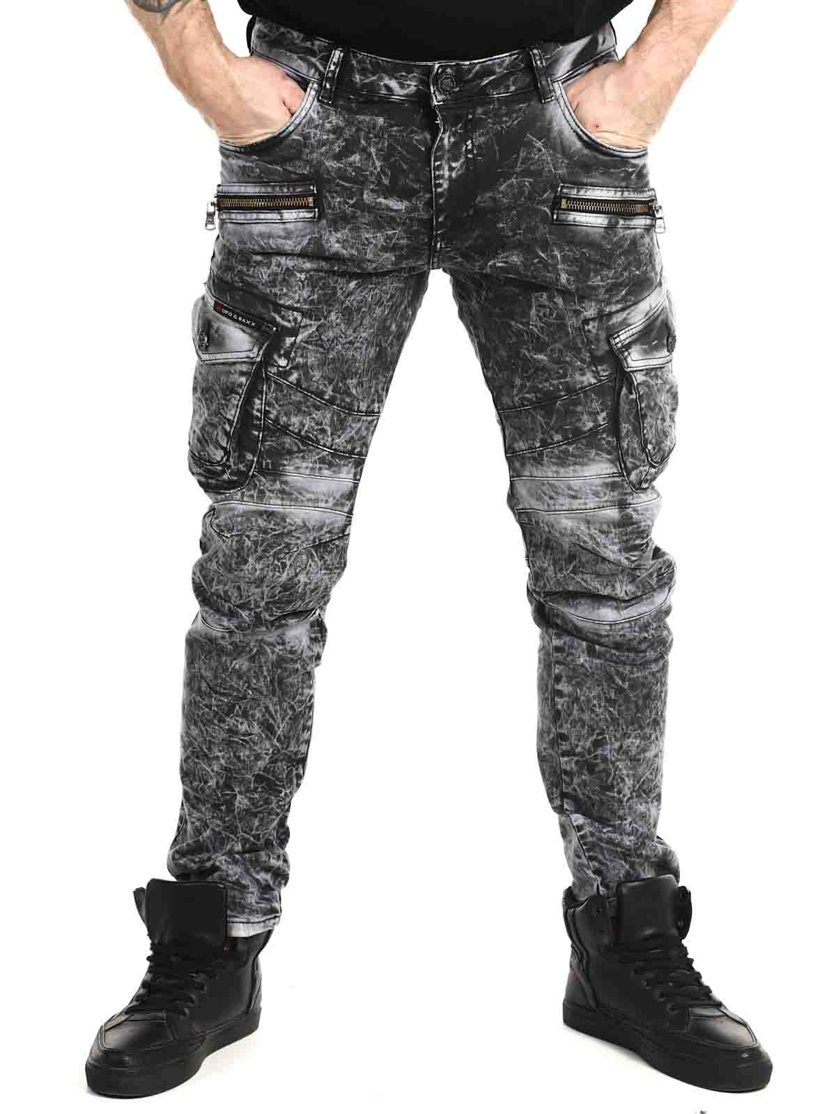 Tyylikkäät, malliltaan klassiset farkut reisitaskuilla. Yksityiskohtiin kuuluvat vetoketjut, logot ja ompeleet. Vyölenkit vyötäröllä ja vetoketjullinen sepalus.