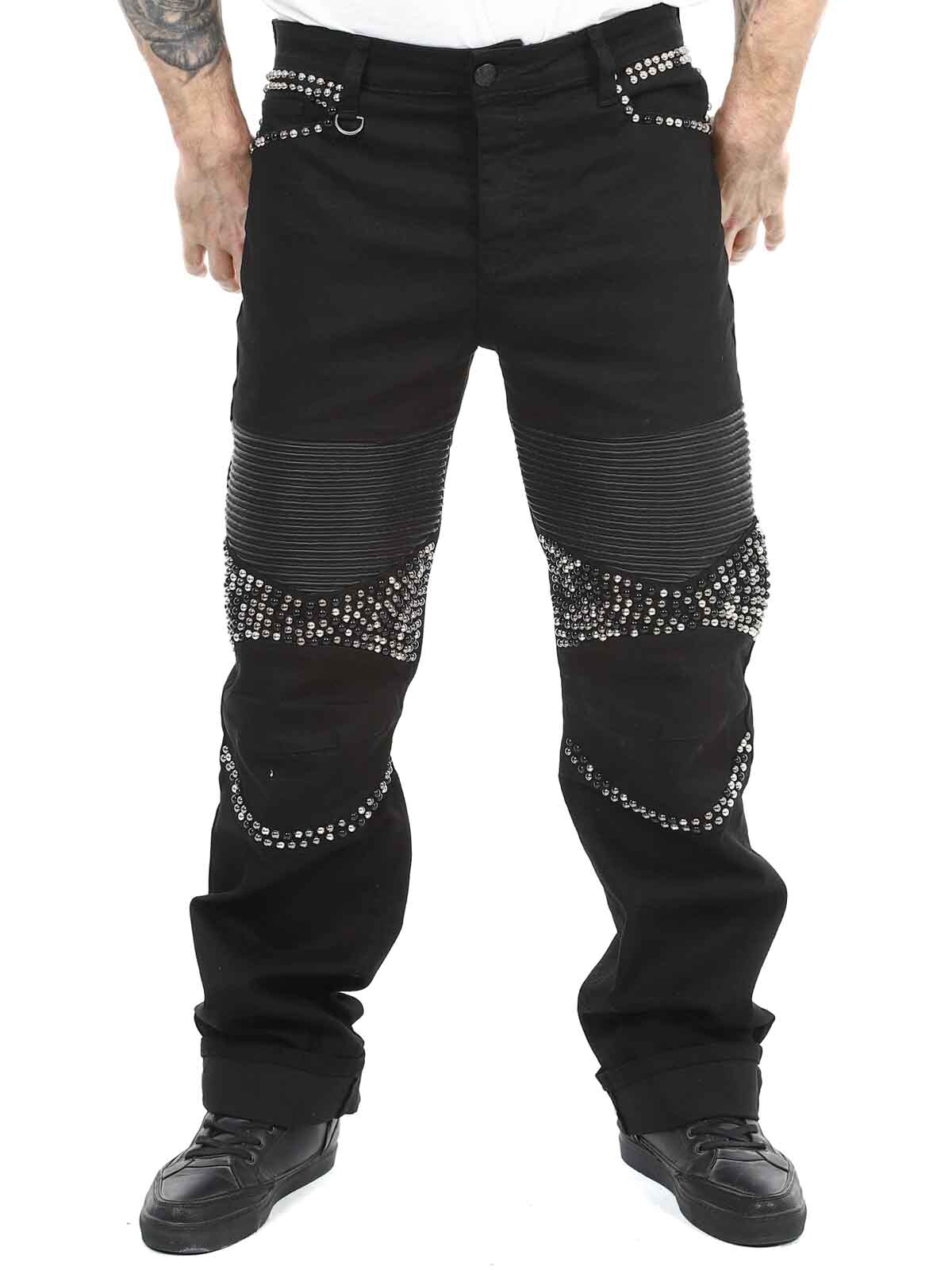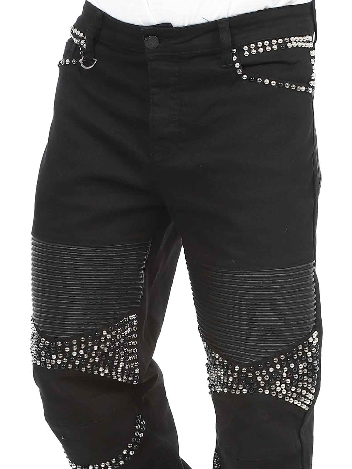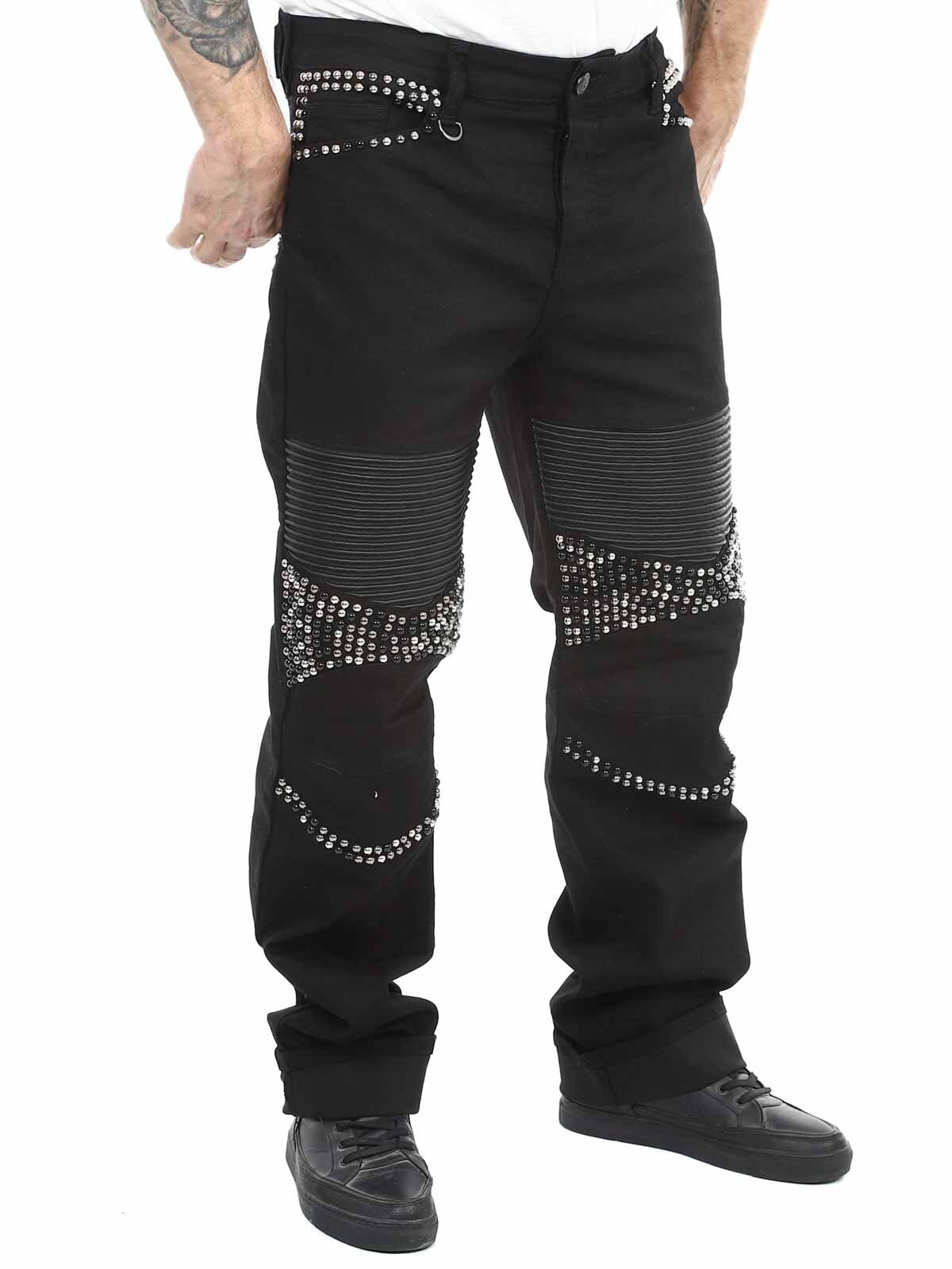 Mukavat farkut, joissa on niittejä, keinonahkaa reisissä sekä takatasku. Farkuissa on viisi taskua, vyölenkit vyötäröllä ja ne sulkeutuvat napitettavasta sepaluksesta.