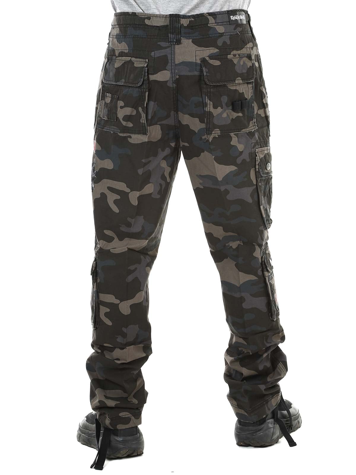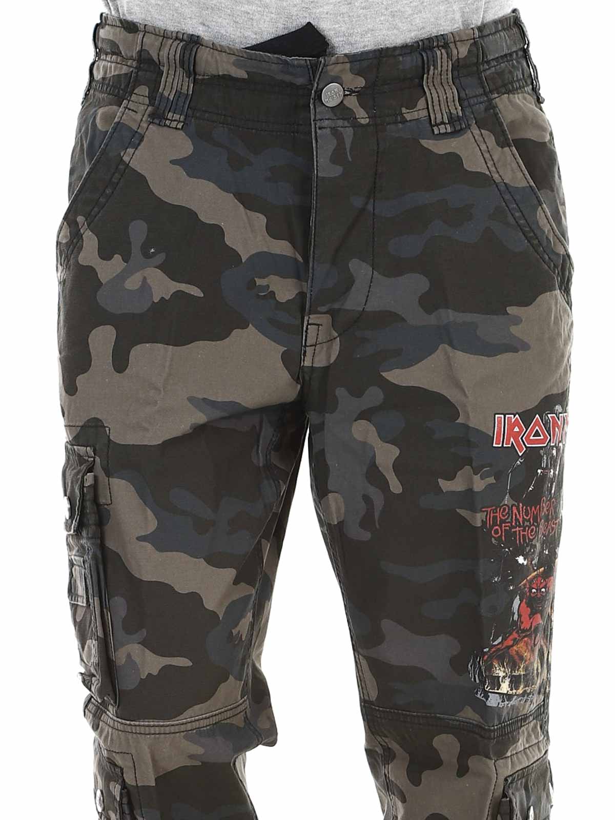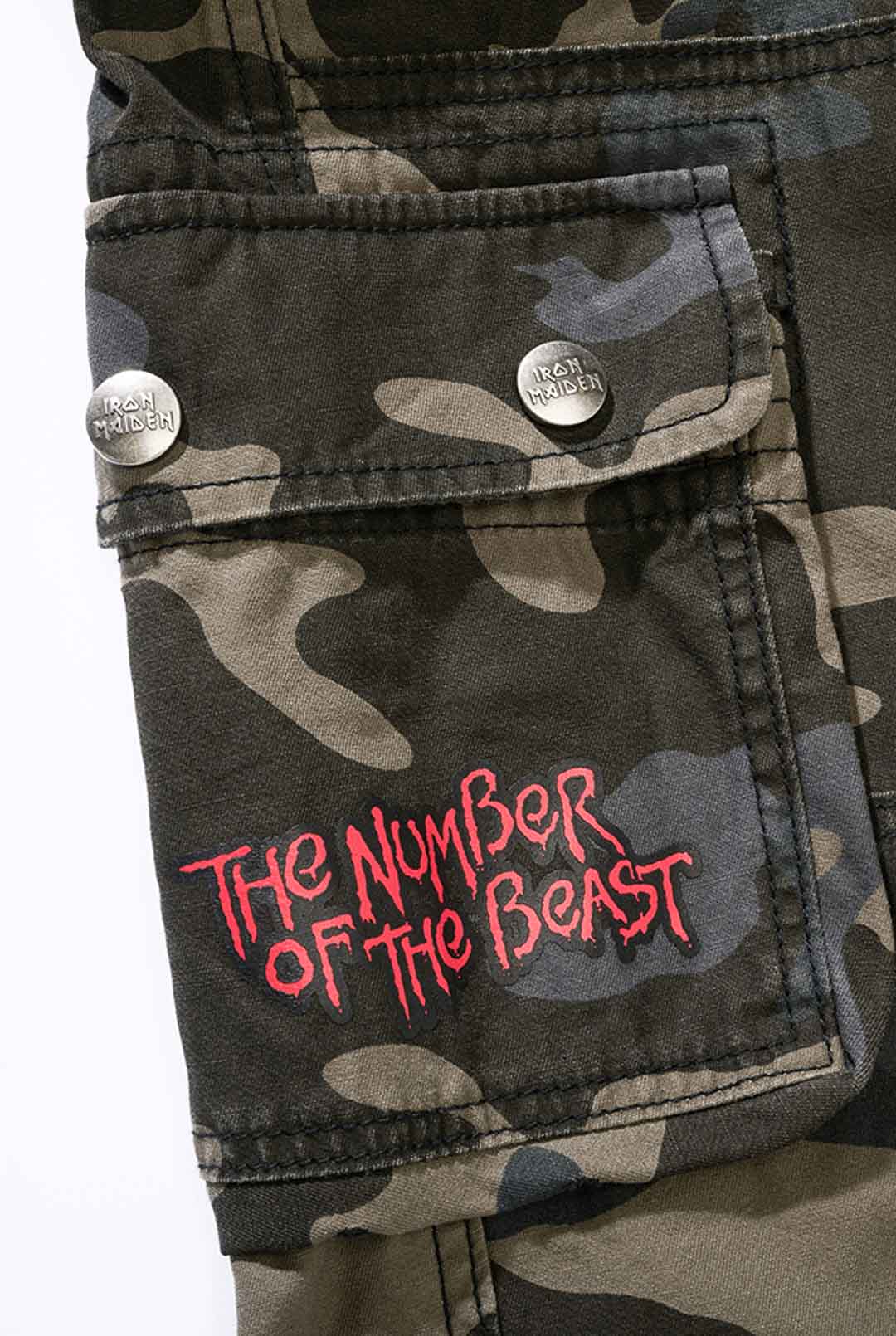 Tummat housut slim fit -istuvuudella ja kestävästä, ihoa miellyttävästä puuvillamateriaalista, joka tarjoaa sekä mukavuutta että kulutuskestävyyttä. Säädettävät kangasremmit vyötäröllä ja lahkeensuissa tekevät passauksen muokkaamisesta helppoa. Housuissa on suuri Iron Maiden -printti vasemmassa lahkeessa ja ”Number of the Beast” -printti oikeassa reisitaskussa. Selkeä kunnianosoitus ikonilliselle heavy metal -bändille Iron Maidenille.