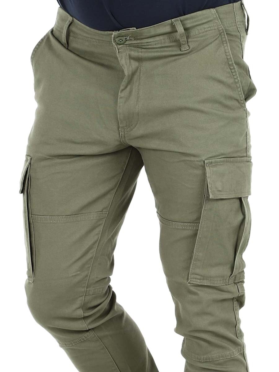Alun perin Britannian armeijalle suunnitelluissa cargohousuissa on lahkeissa useita taskuja lisäämässä käytännöllisyyttä. Ne sopivat täydellisesti sekä rentoon että tyylikkääseen asuun riippuen siitä, miten niitä yhdistelet. Kudottu kangas on vahvaa ja kestävää materiaalia.