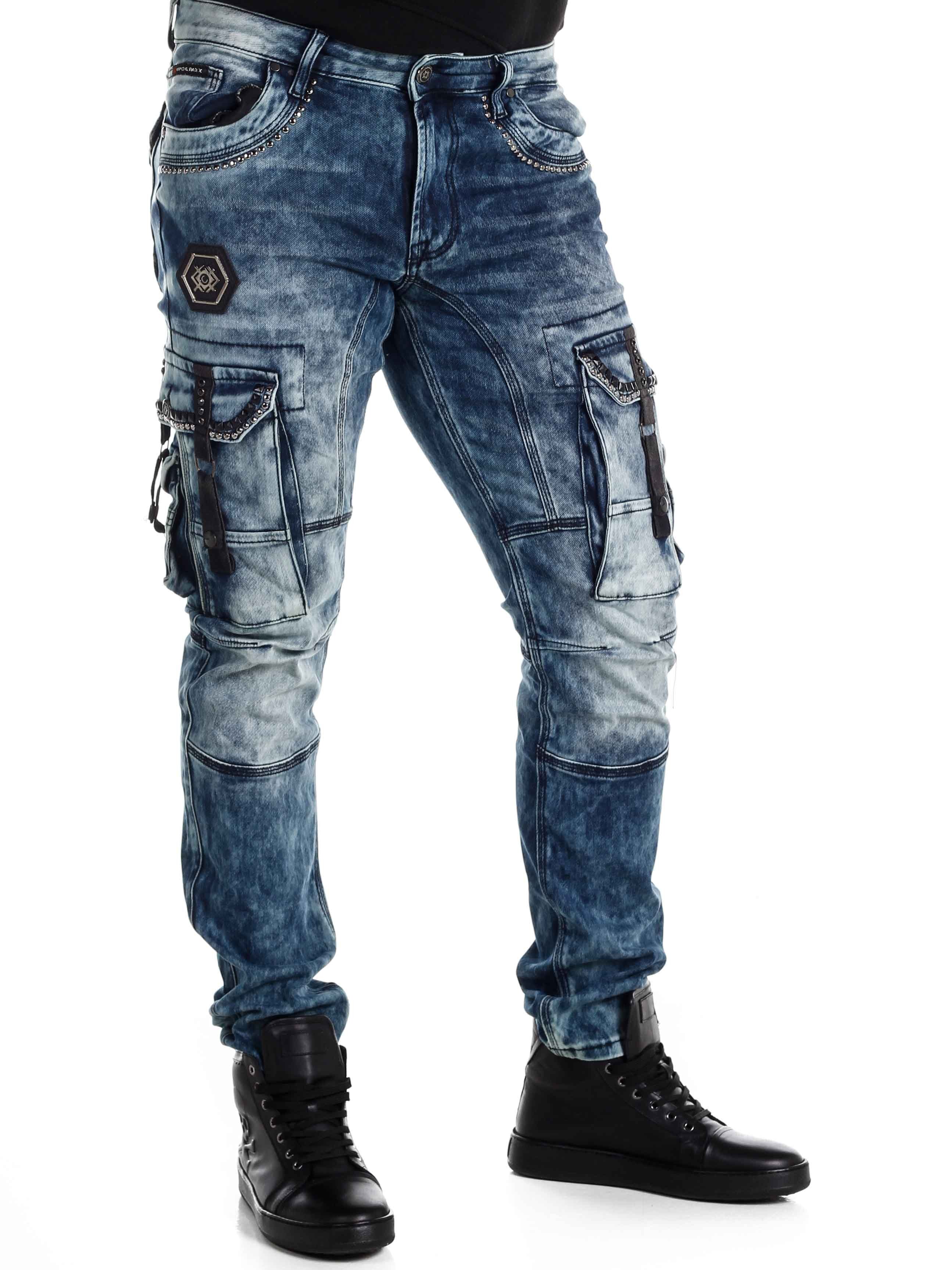 Kestävät ja käytännölliset cargohousut miehille. Cargohousut ovat välttämättömät miehille, jotka arvostavat sekä tyyliä että käytännöllisyyttä. Useiden kätevien taskujen ja kestävien materiaalien ansiosta nämä housut tarjoavat rennon ja miehekkään ilmeen. Täydelliset arkeen ja seikkailuihin, olitpa sitten kaupungilla tai luonnossa. Tutustu valikoimaamme ja löydä suosikkisi RockDenimiltä!