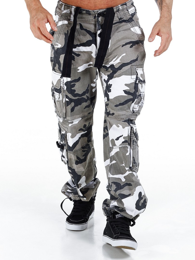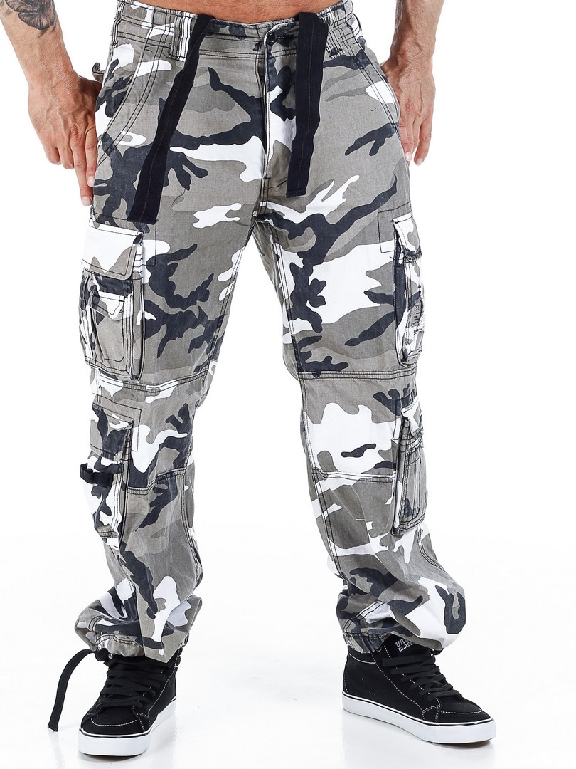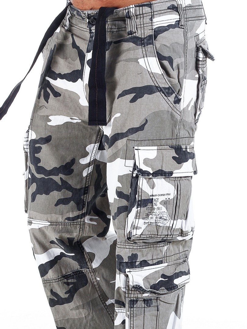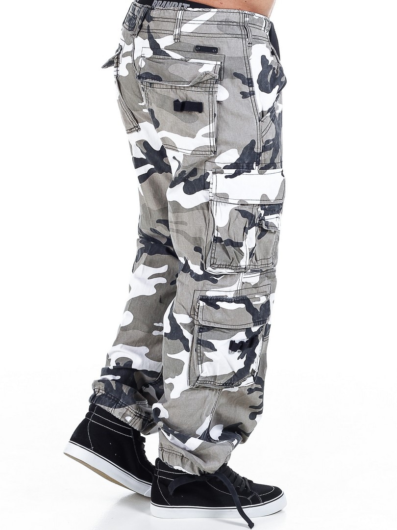 Valkoiset reisitaskuhousut merkiltä Brandit maastokuvion kera