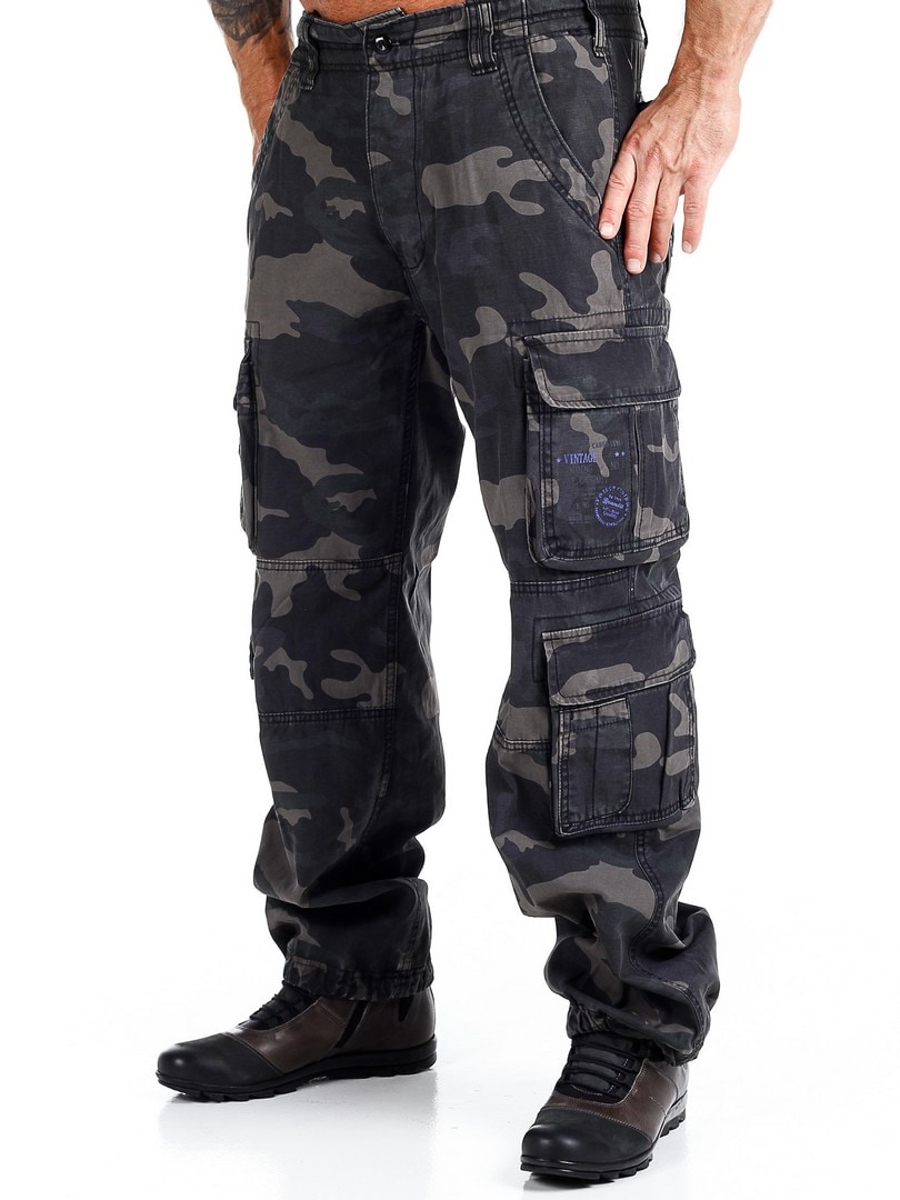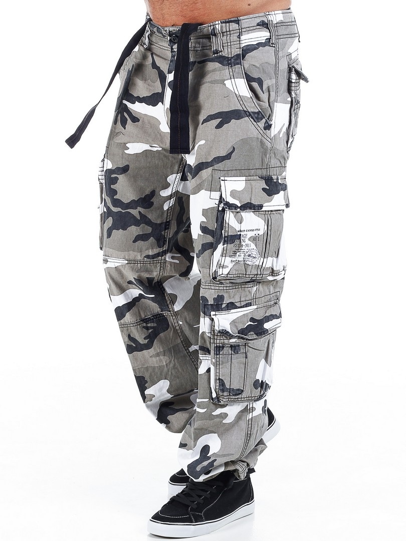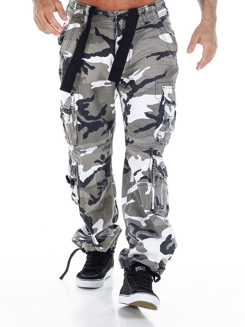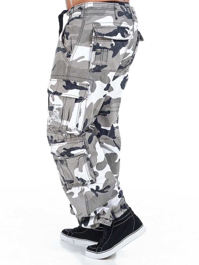 Valkoiset reisitaskuhousut merkiltä Brandit maastokuvion kera