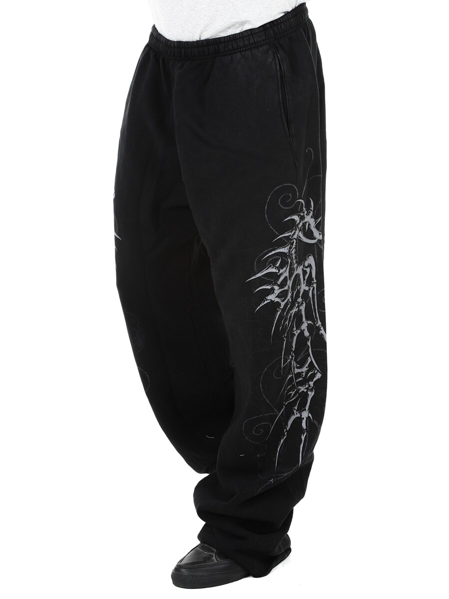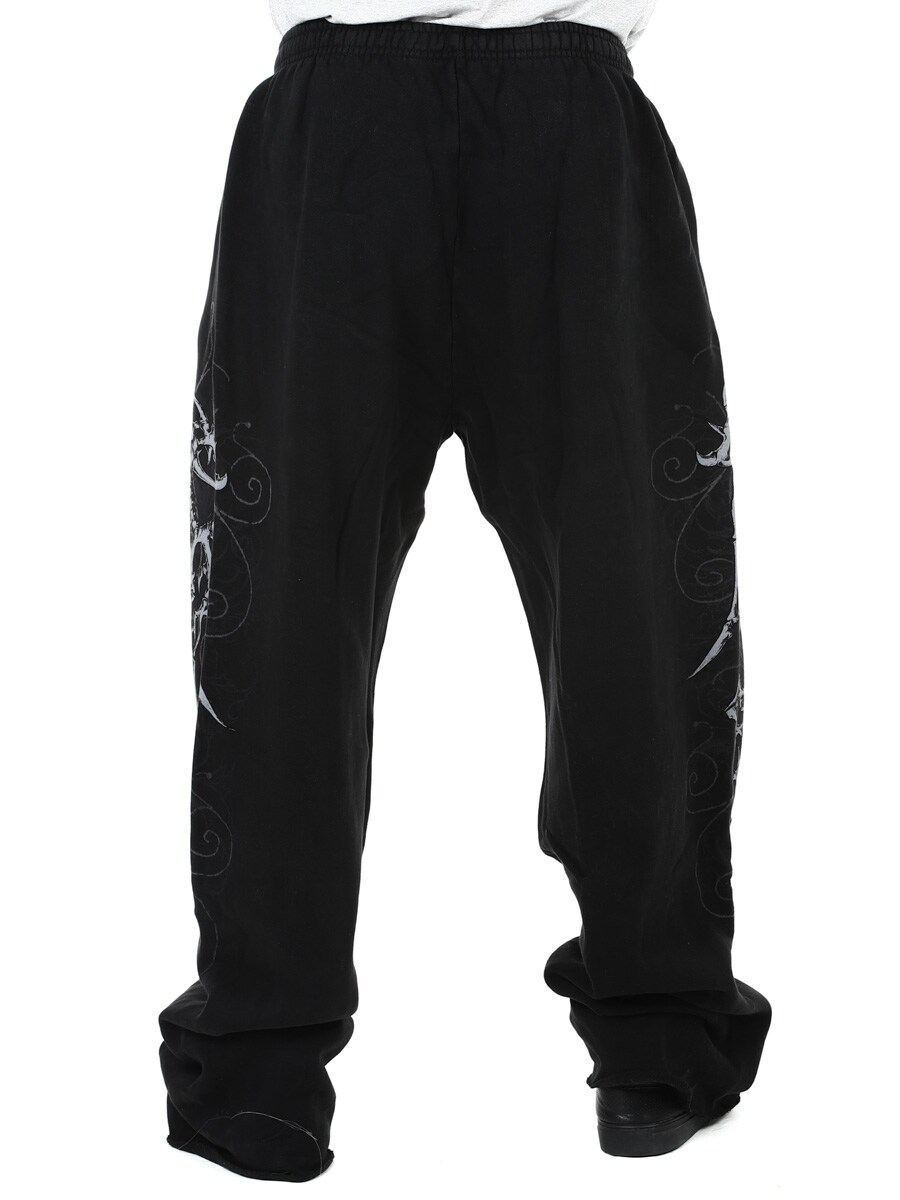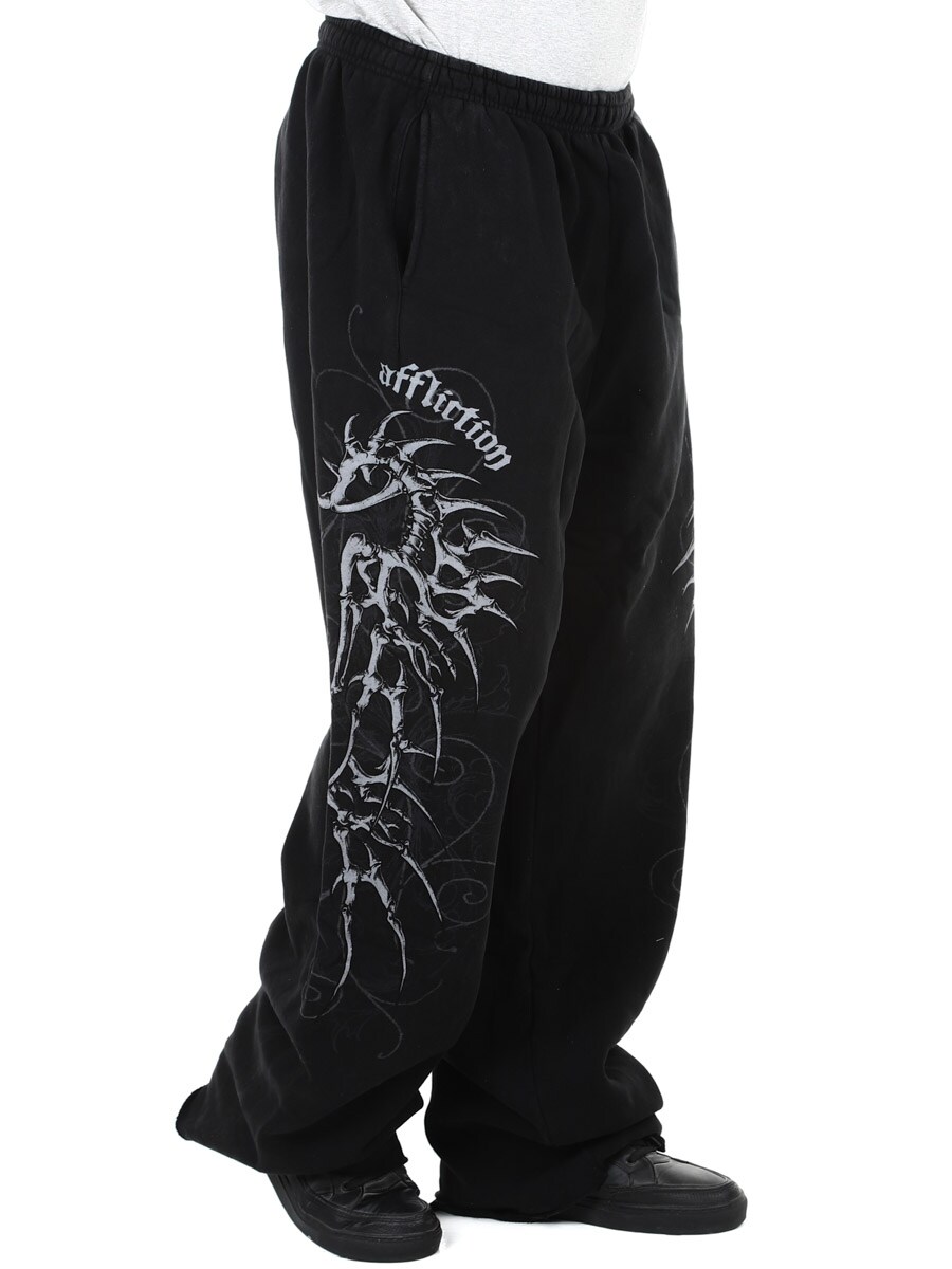 Pehmeät ja mukavat collegehousut, joissa on kunnolla asennetta. Musta, pesty pohja yhdistyy suuriin graafisiin painatuksiin lahkeissa, mikä antaa housuille uniikin ilmeen. Joustava vyötärö, jota koristaa Affliction-logo, sisältää kiristysnyörin säädettävää istuvuutta varten. Leveät lahkeet luovat rennon siluetin – täydelliset arkeen rock-henkisellä tyylillä.
