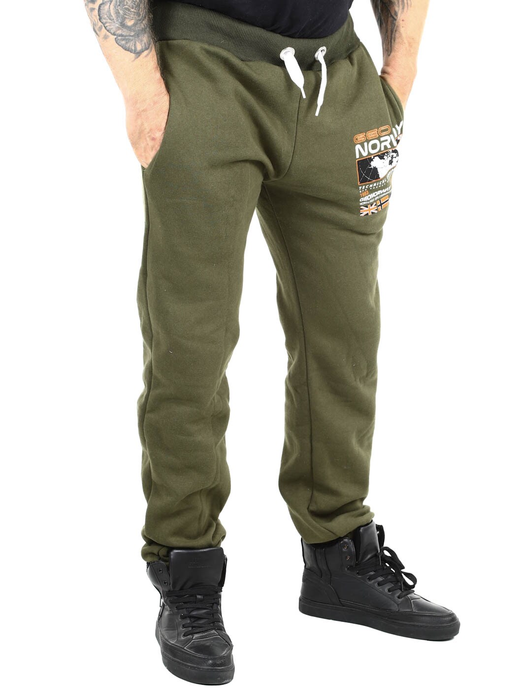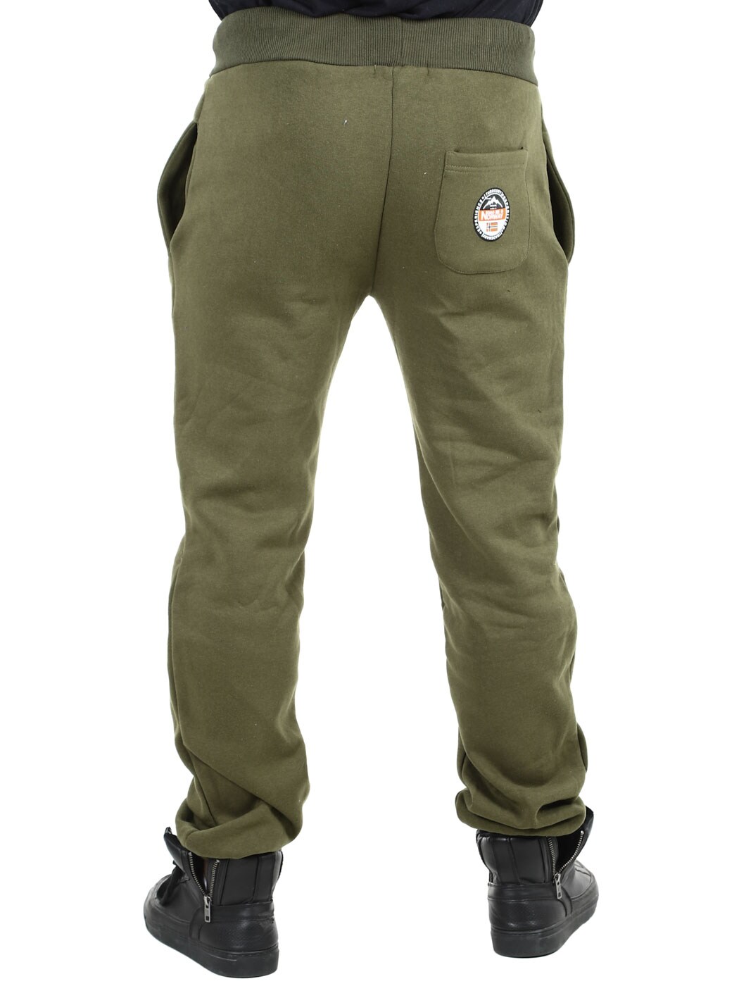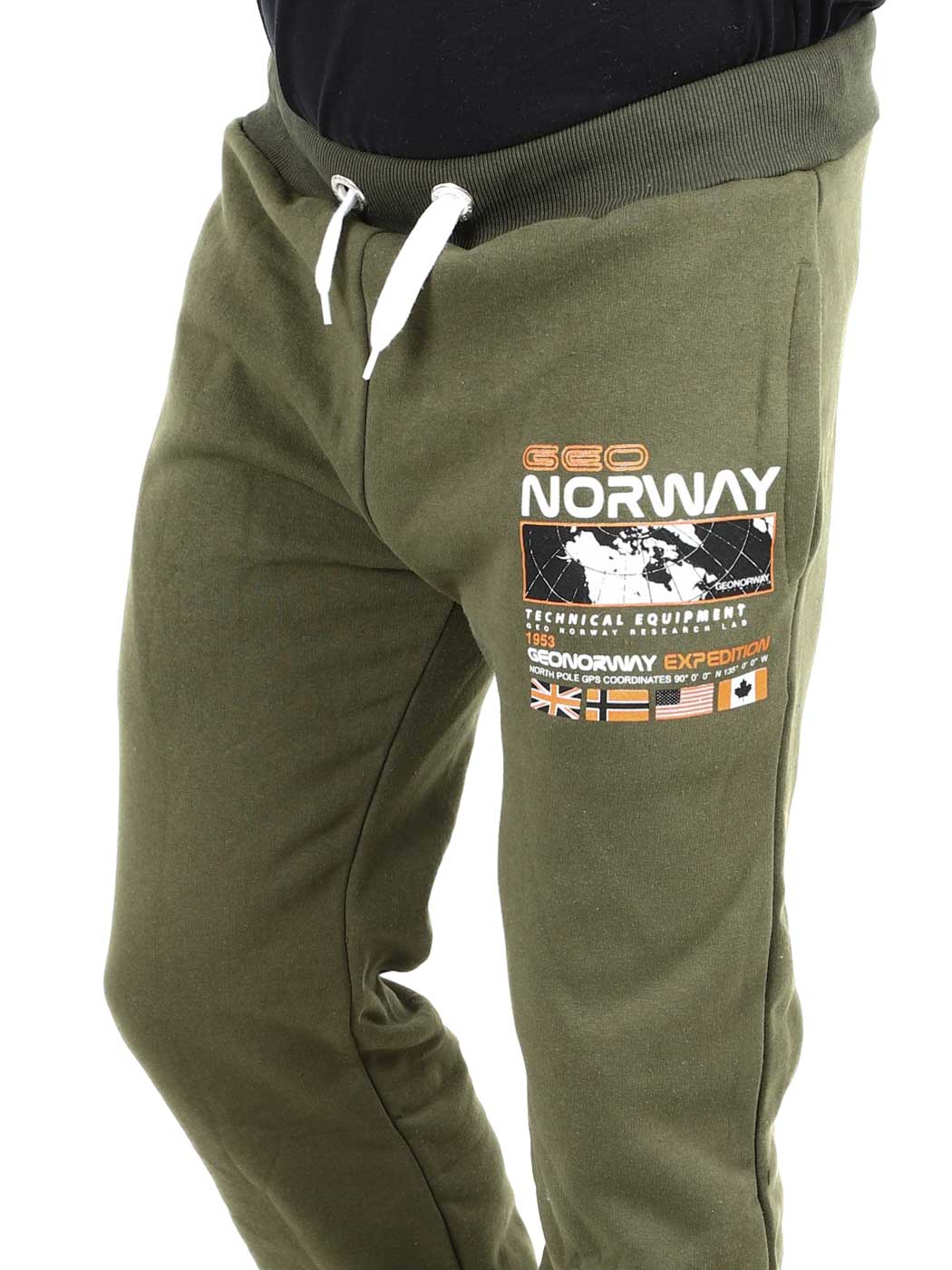 Vihreät housut, joissa on kontrastivärinen painatus lahkeissa ja takataskussa. Housuissa on kolme avotaskua, harjattu sisäpuoli ja kiristysnauhat vyötäröllä. Ribattu vyötärö, resorit lahkeensuissa.