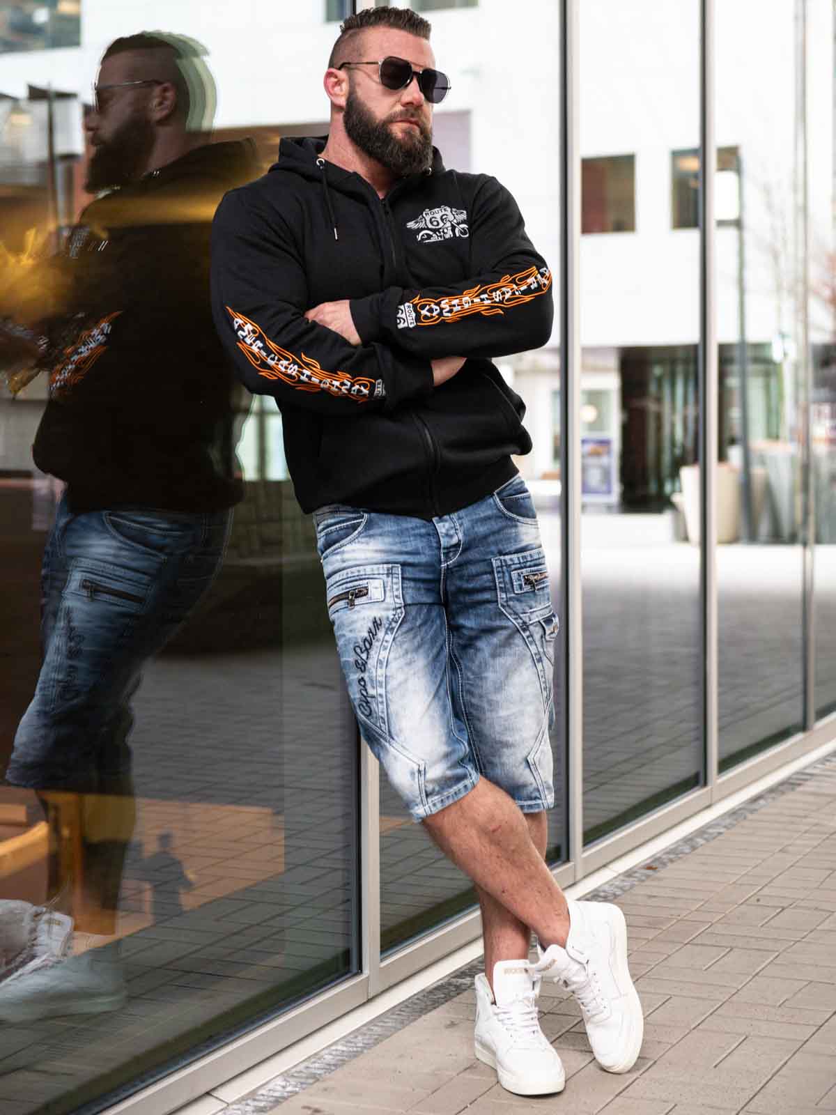 Uniikit shortsit on valmistettu mukavantuntuisesta farkkukankaasta ja ne ovat malliltaan klassiset. Vetoketjut, karkeat saumat ja toiseen lahkeeseen brodeerattu teksti tuovat näihin shortseihin persoonallisuutta ja saavat sinut erottumaan joukosta! Runsaasti tilavia taskuja ja suuri, erottuva logo takapuolella.