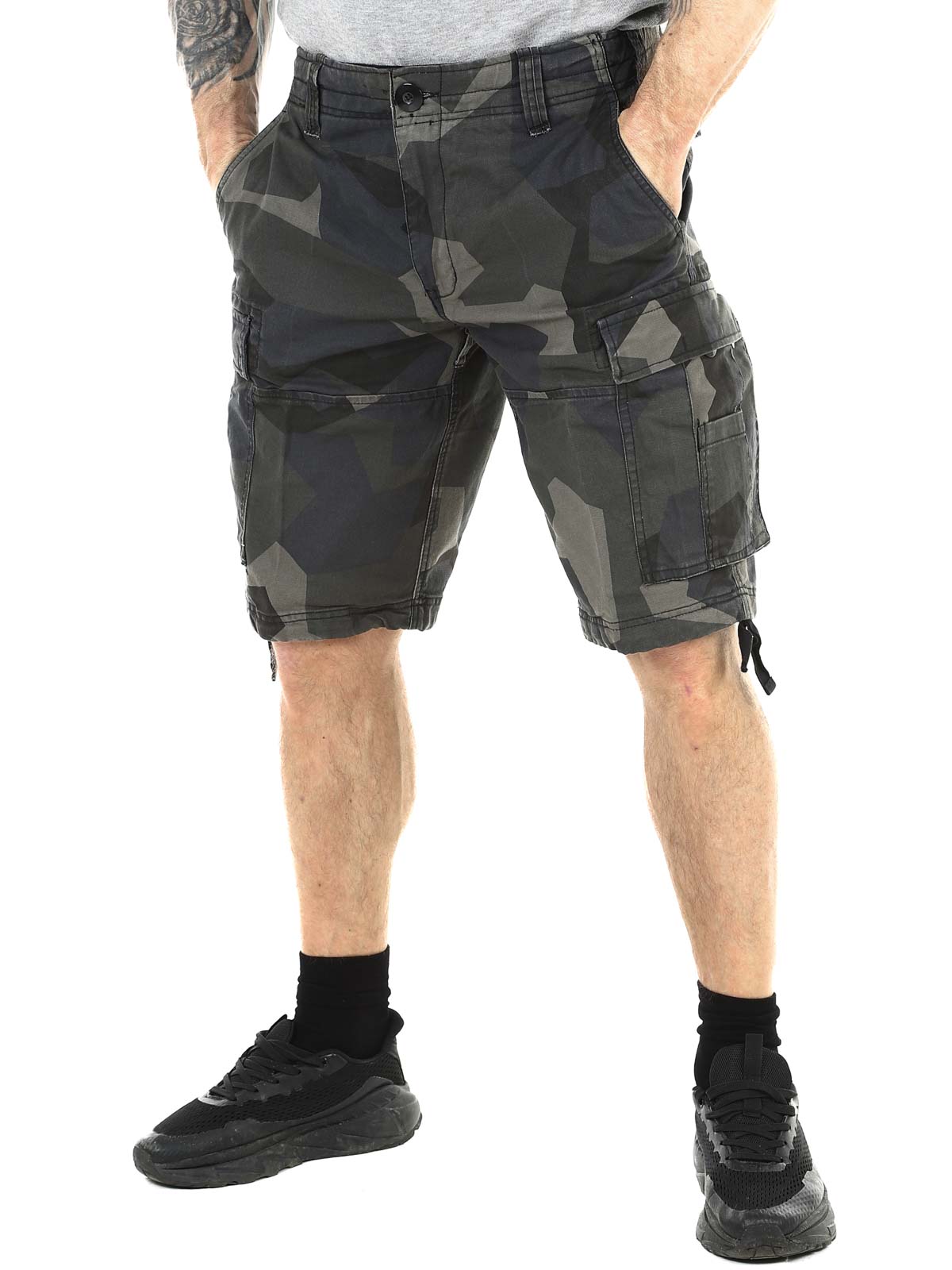 Vankat shortsit paksusta puuvillasta klassisella cargo-istuvuudella ja rennolla tuntumalla. Pestyn kankaan ja camo-kuvion yhdistelmä luo rouhean ja käytetyn ilmeen, joka sopii täydellisesti arkeen. Shortseissa on vinot sivutaskut, useita käytännöllisiä cargotaskuja sekä kiristysnyöri vyötäröllä mukavaa ja säädettävää istuvuutta varten.