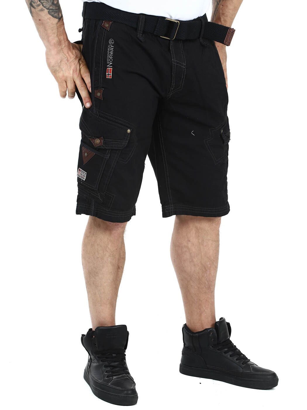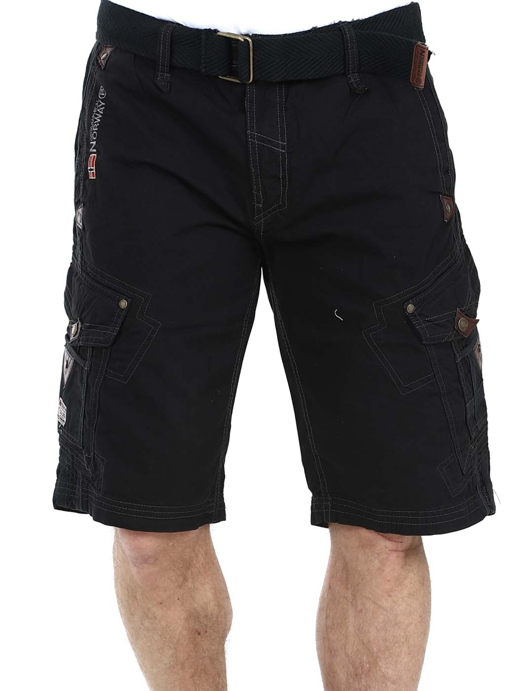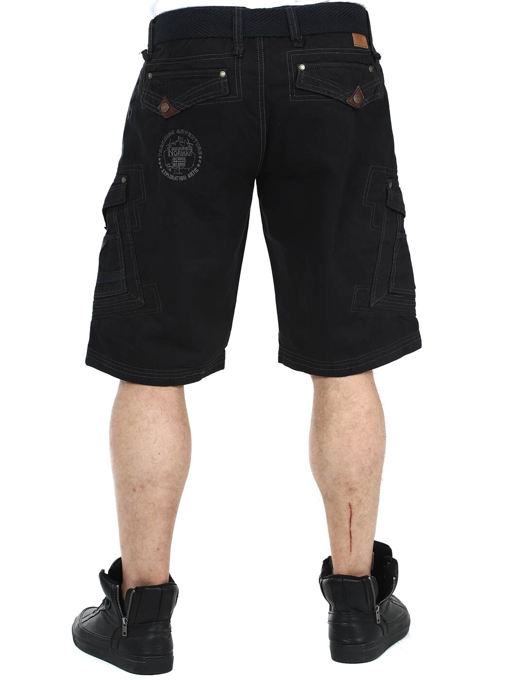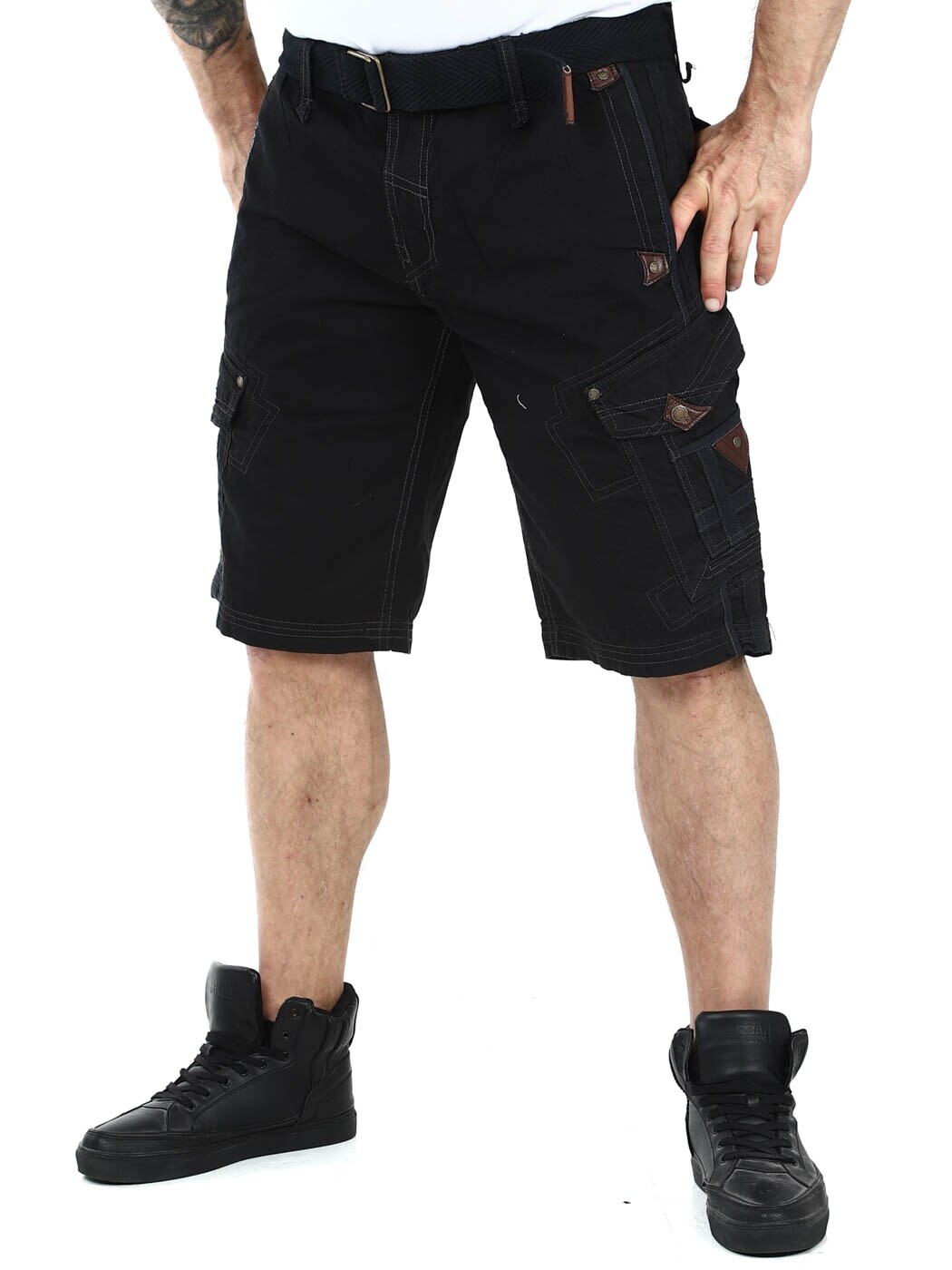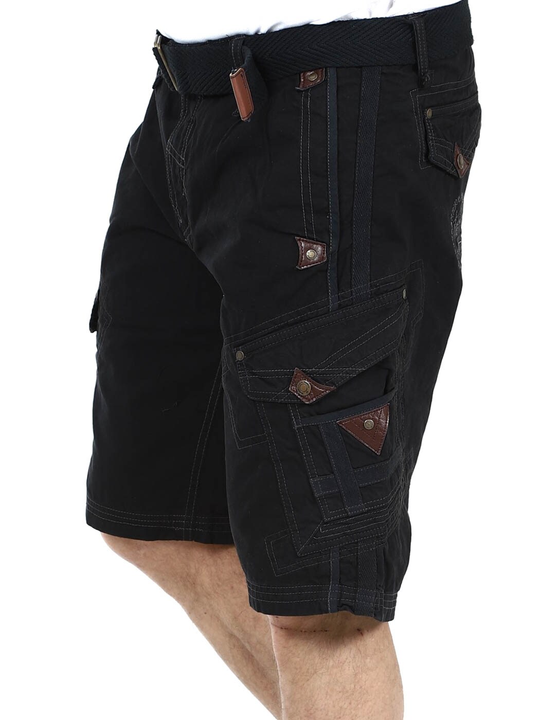Puuvillashortsit erottuvilla saumoilla. Ommeltu logo ja keinonahkaiset yksityiskohdat. Useita taskuja, vetoketjullinen sepalus ja mukana tuleva vyö.