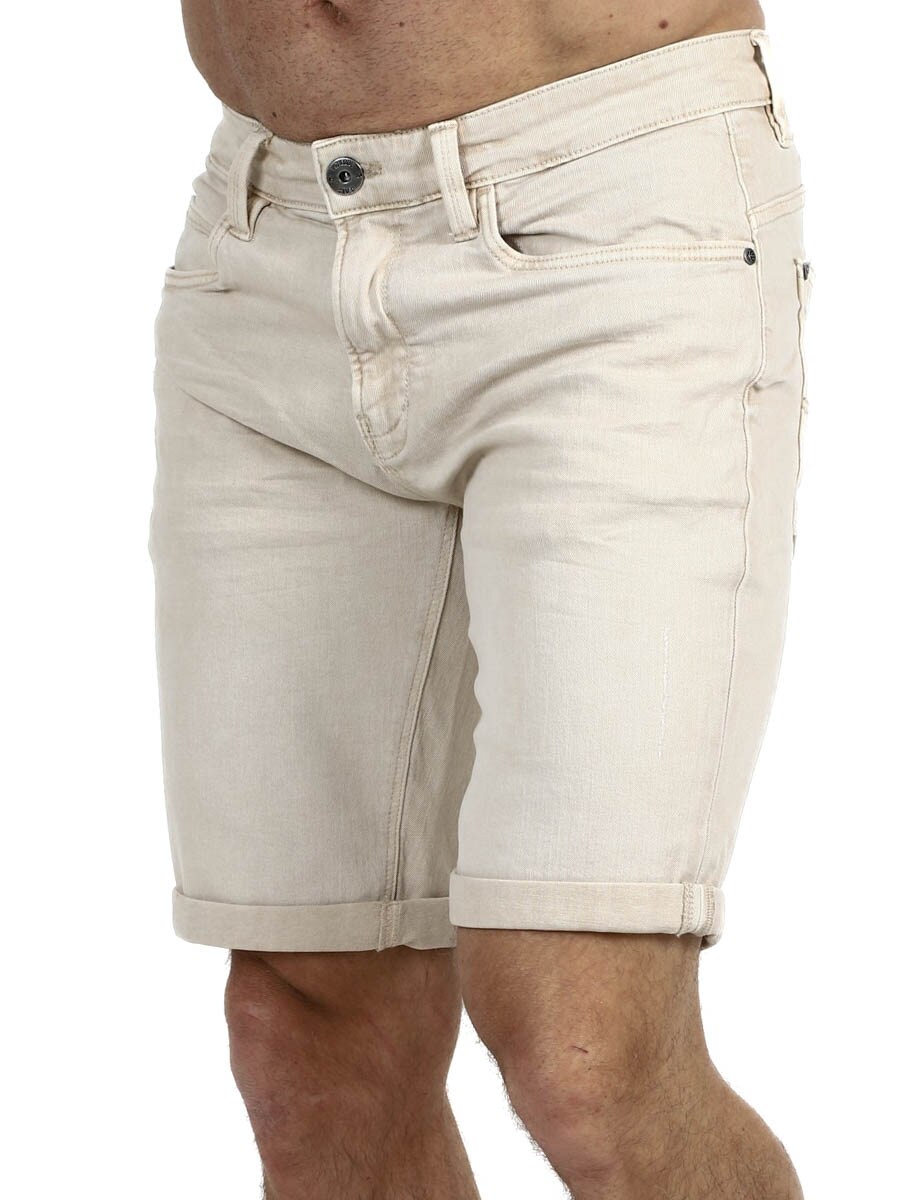 Klassiset farkkushortsit, joissa on runsaasti joustavuutta. Kolme etutaskua ja kaksi takataskua. Hienot shortsit, jotka soveltuvat lähes kaikkiin tilanteisiin!